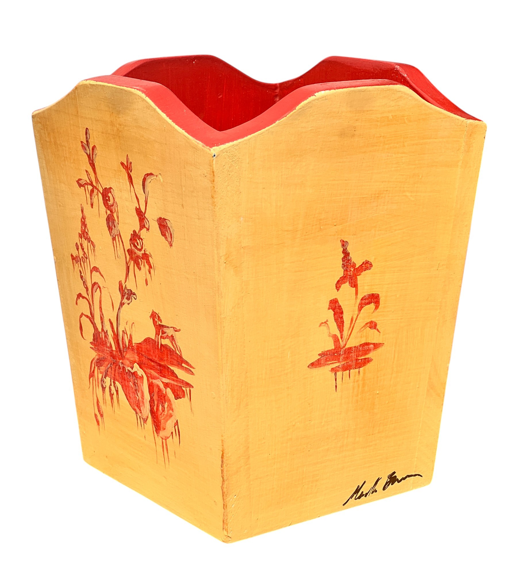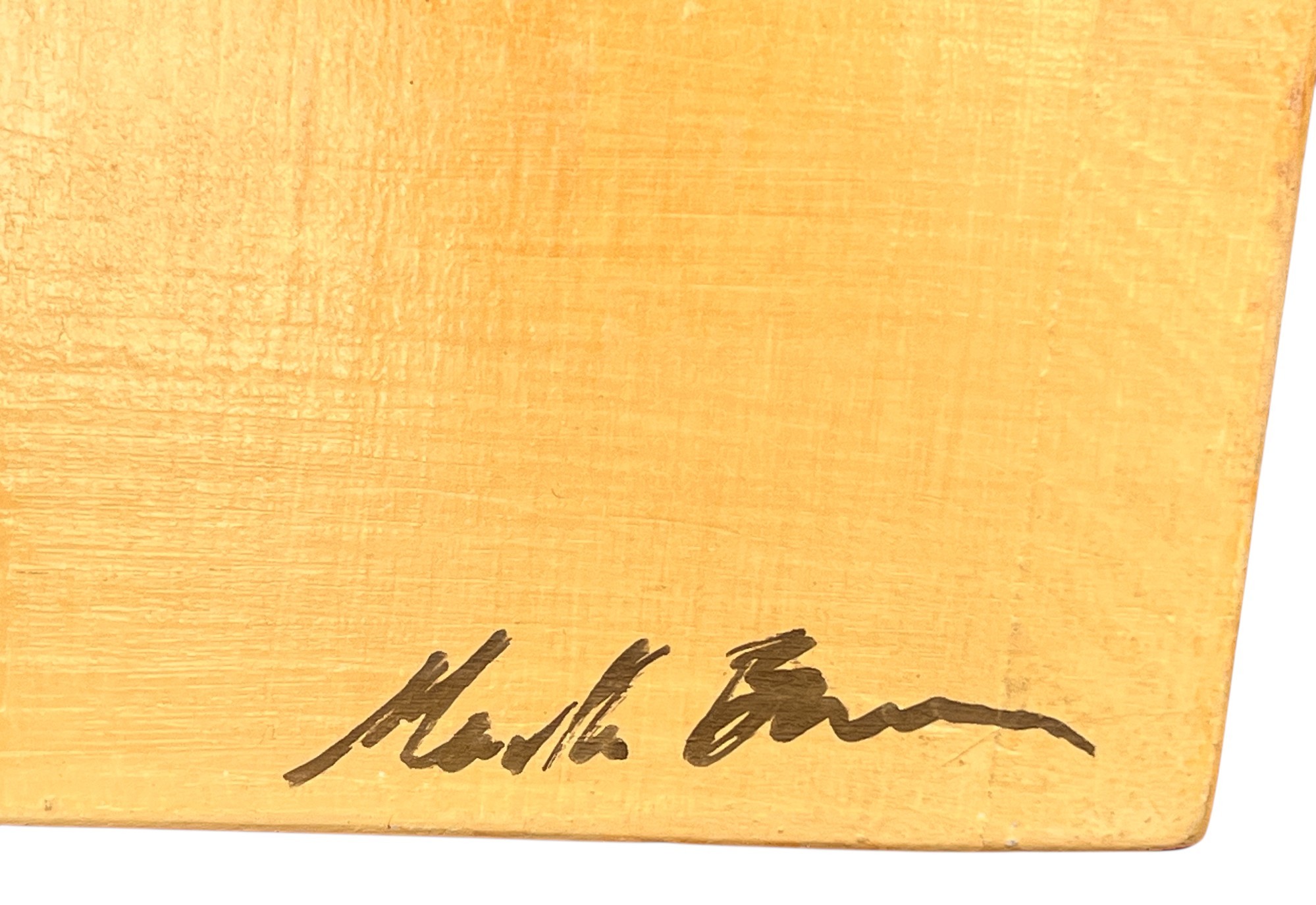 Hand painted wood. Signed Martha Barron? 11 x 8.75 x 8.75 inches