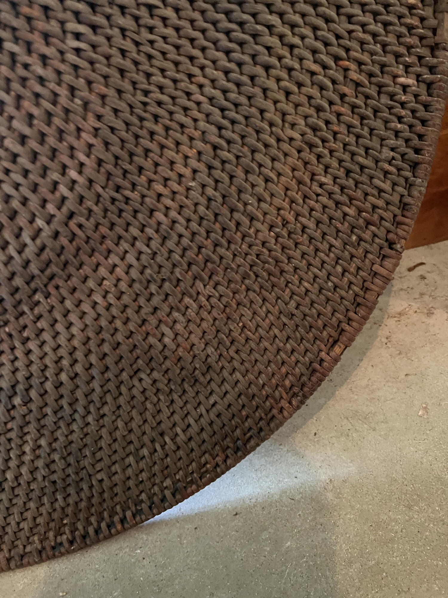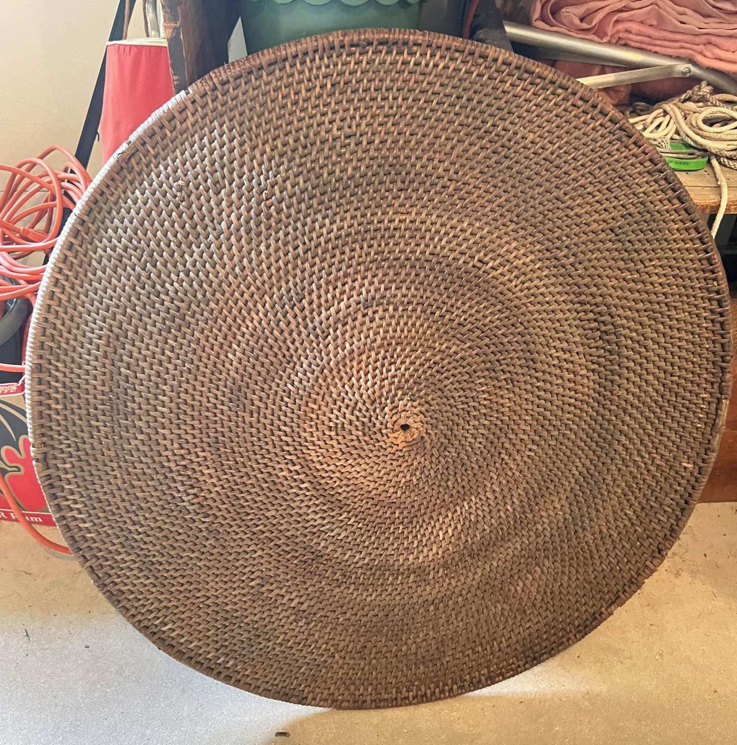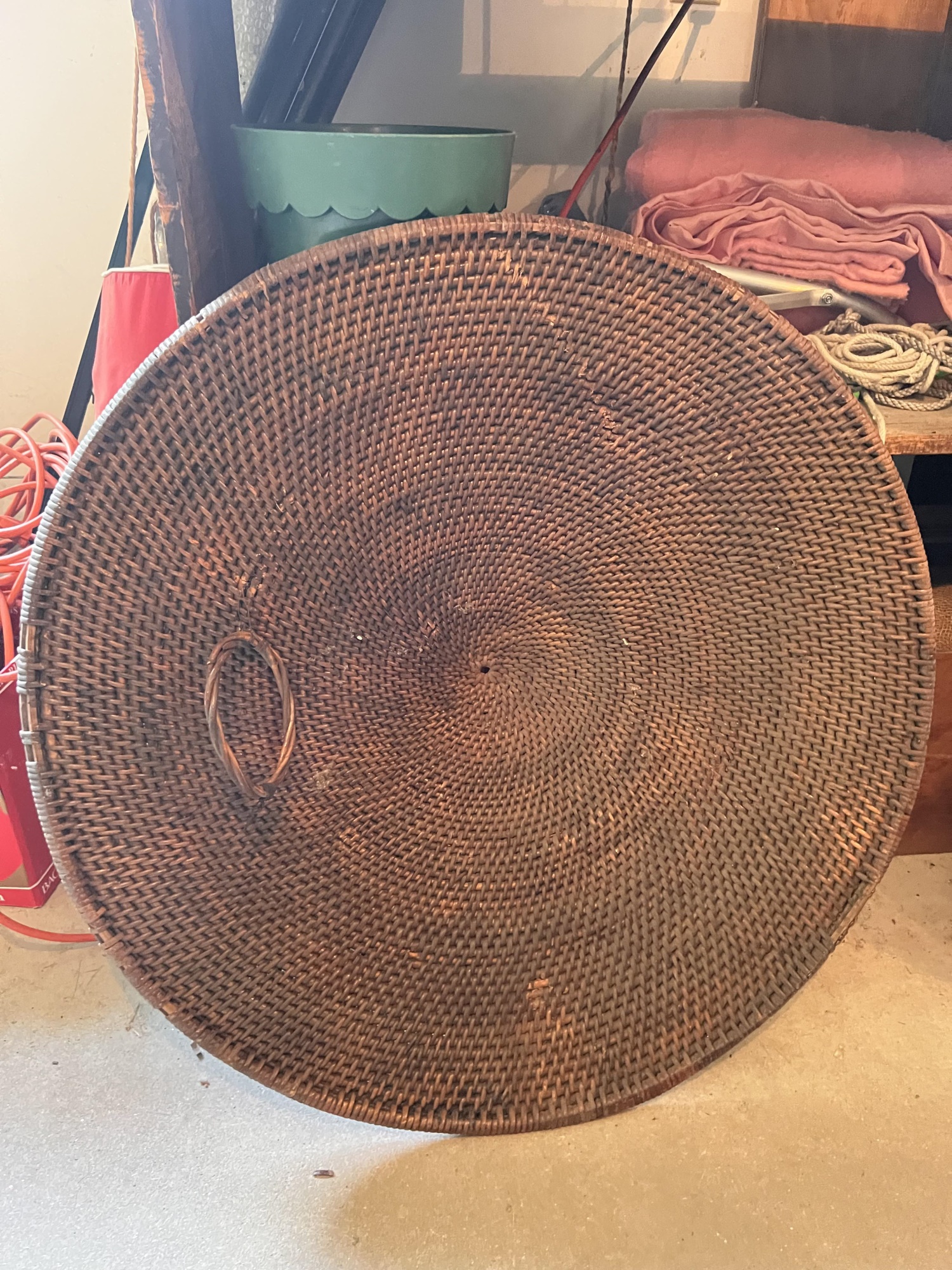 Very decorative / had been used as a wall hanging. 34 inches (diameter) Condition: Good