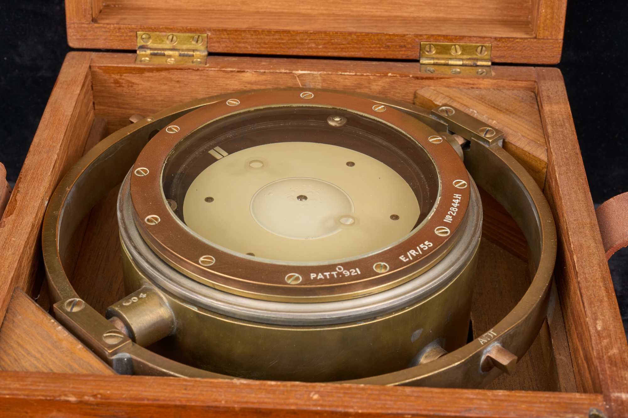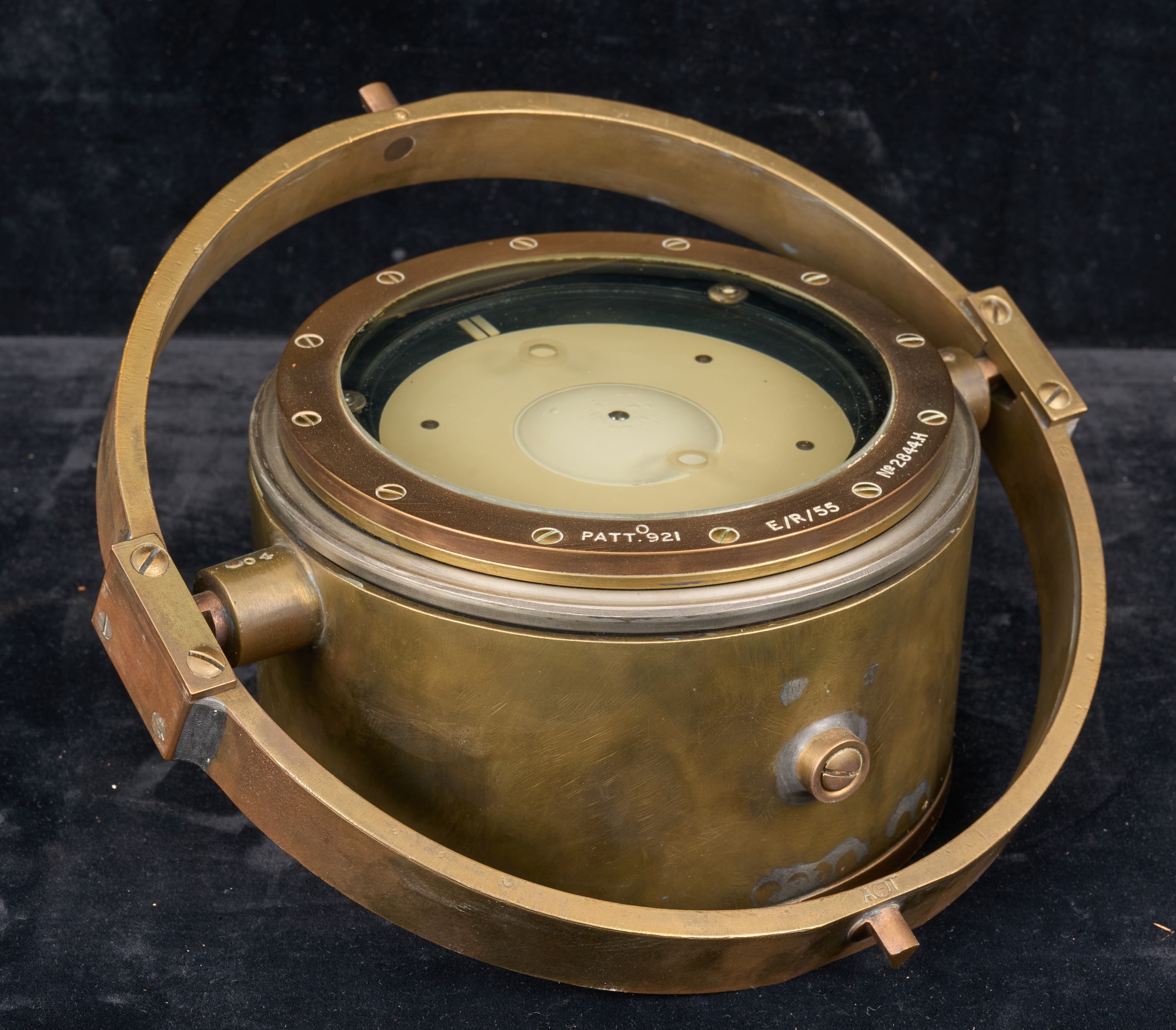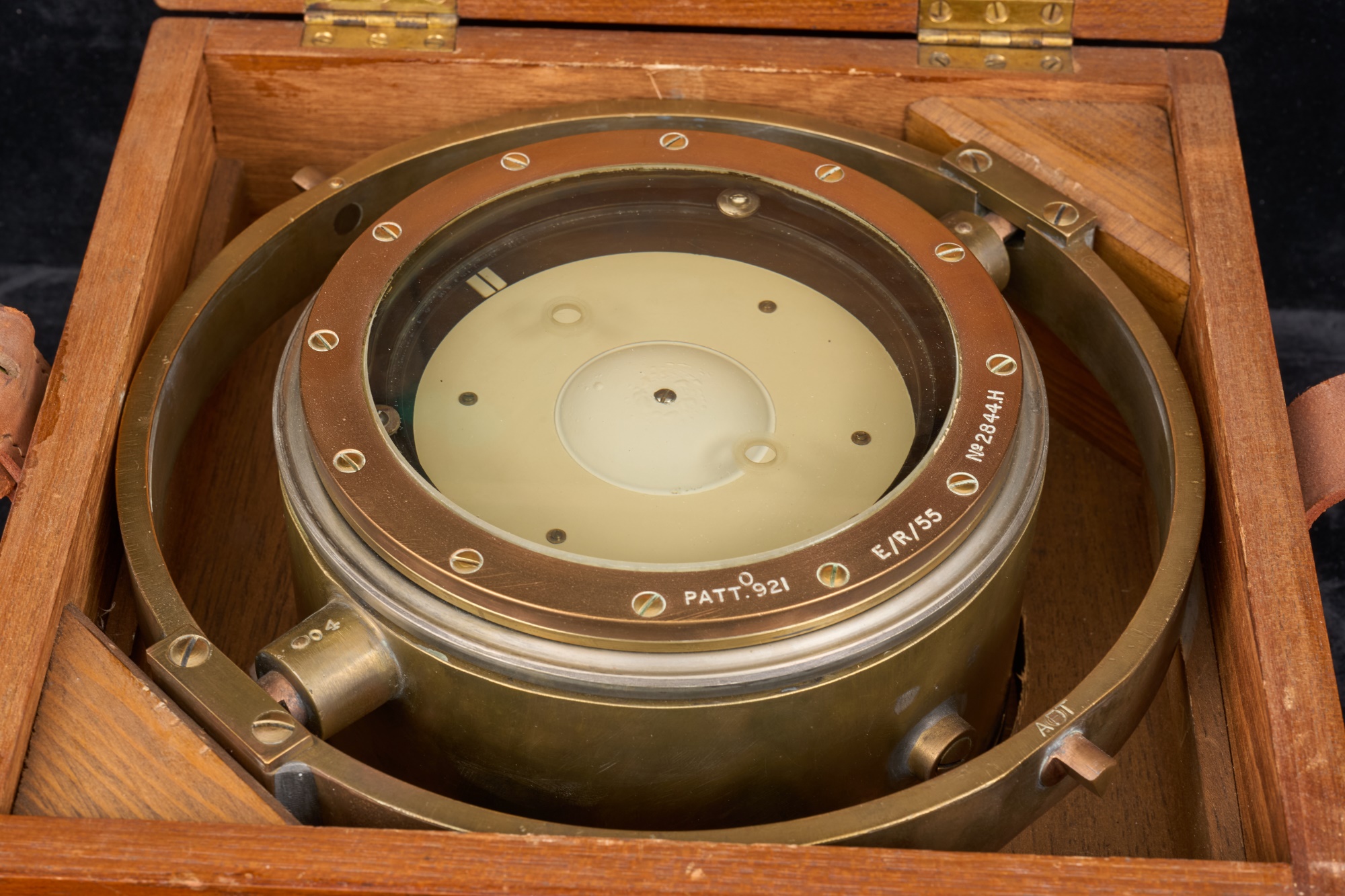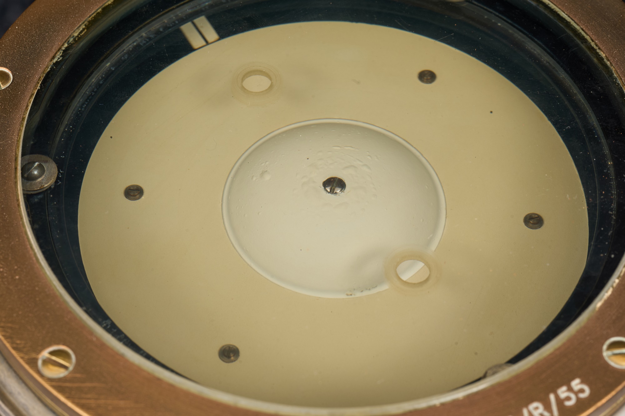 Configured to be viewed from below. 5 inch dial. E/R/55. No. 2844 H. 9.75 inches. Original case 6 x 10.5 x 10 inches Condition: Good