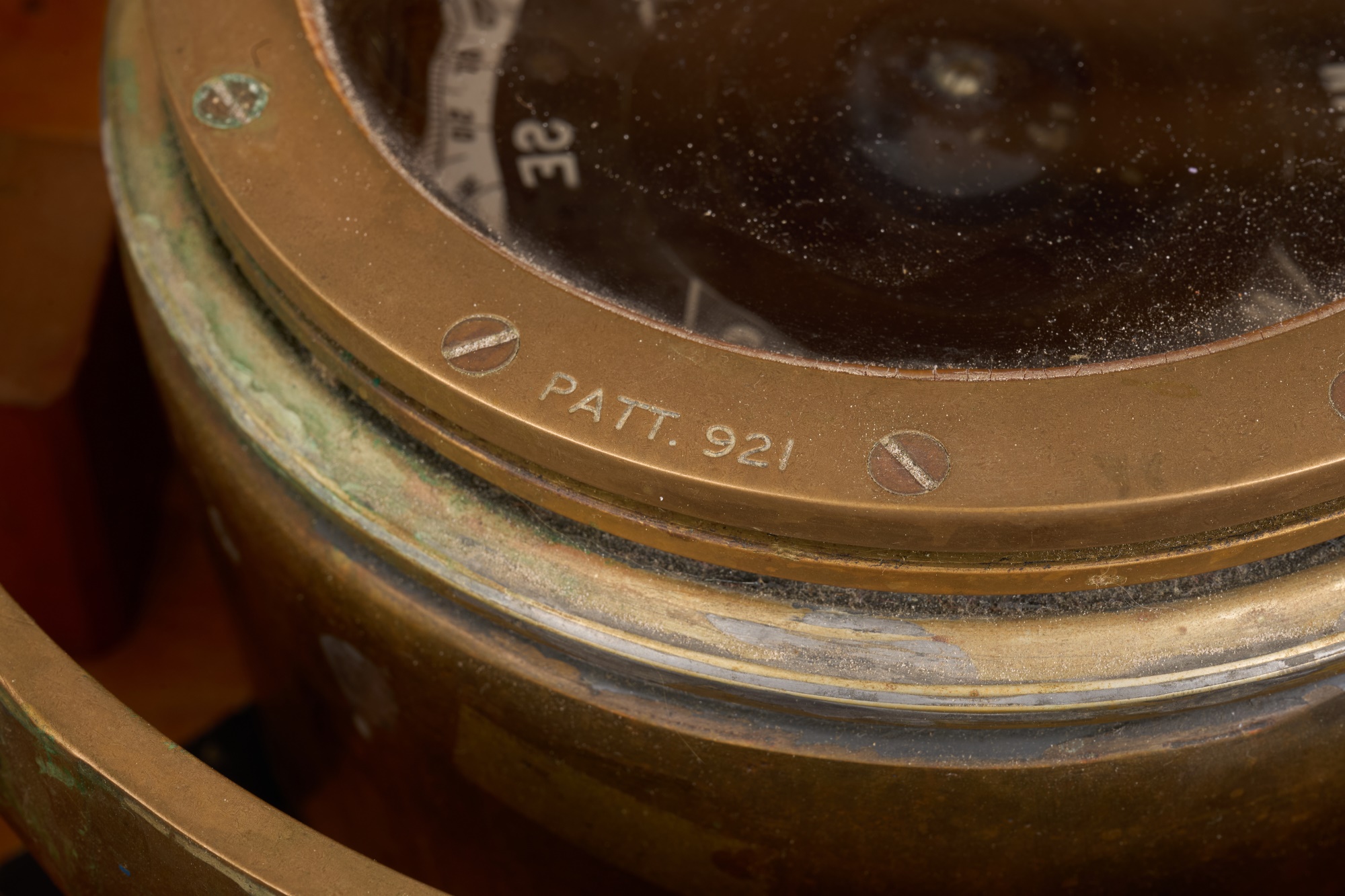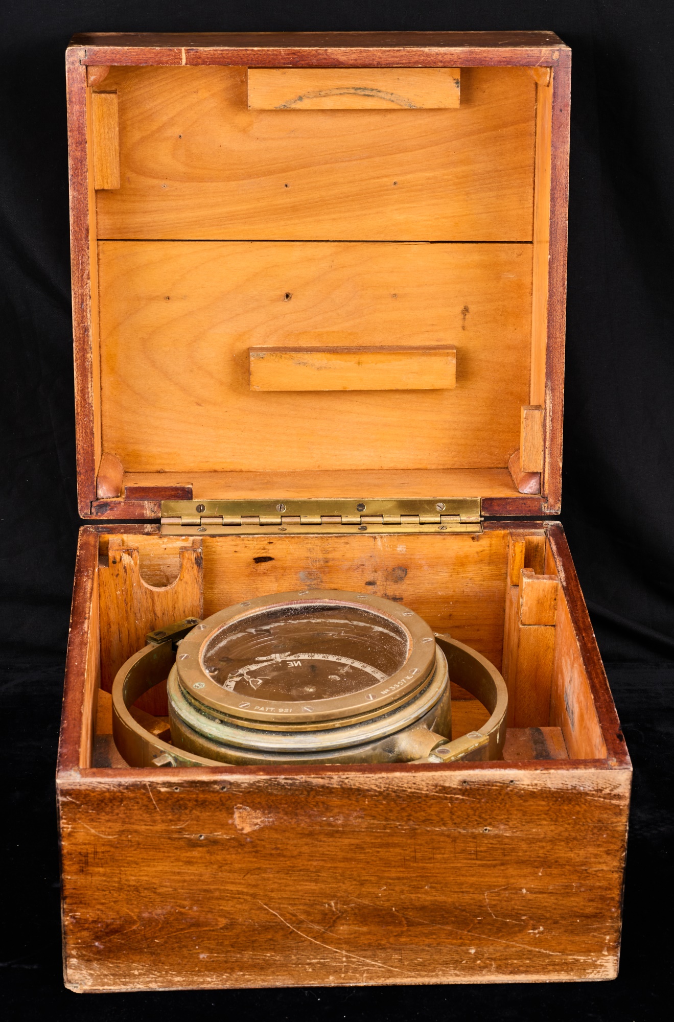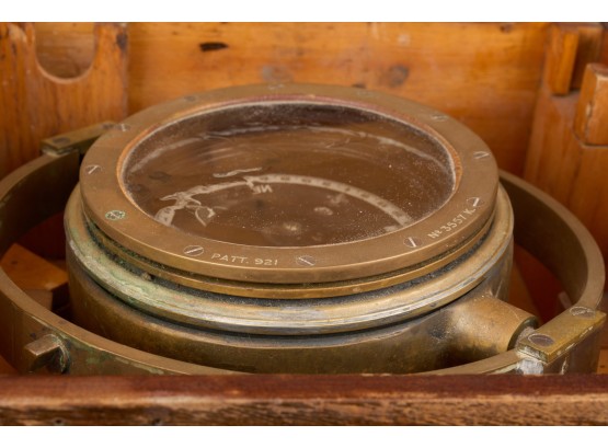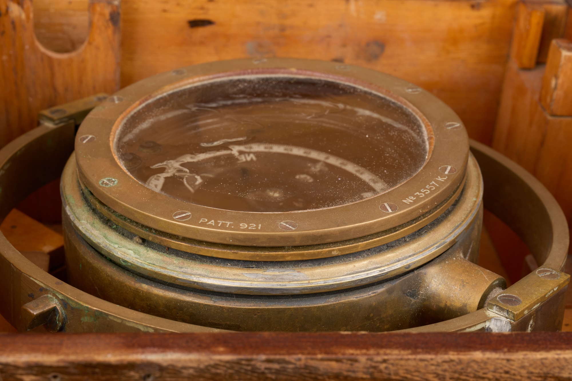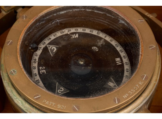 4 inch dial. Pat 921 Serial Number 3557 K. 9 inches. Together with a wooden case not original to the compass 8.5 x 12 x 11.5 inches Condition: Good
