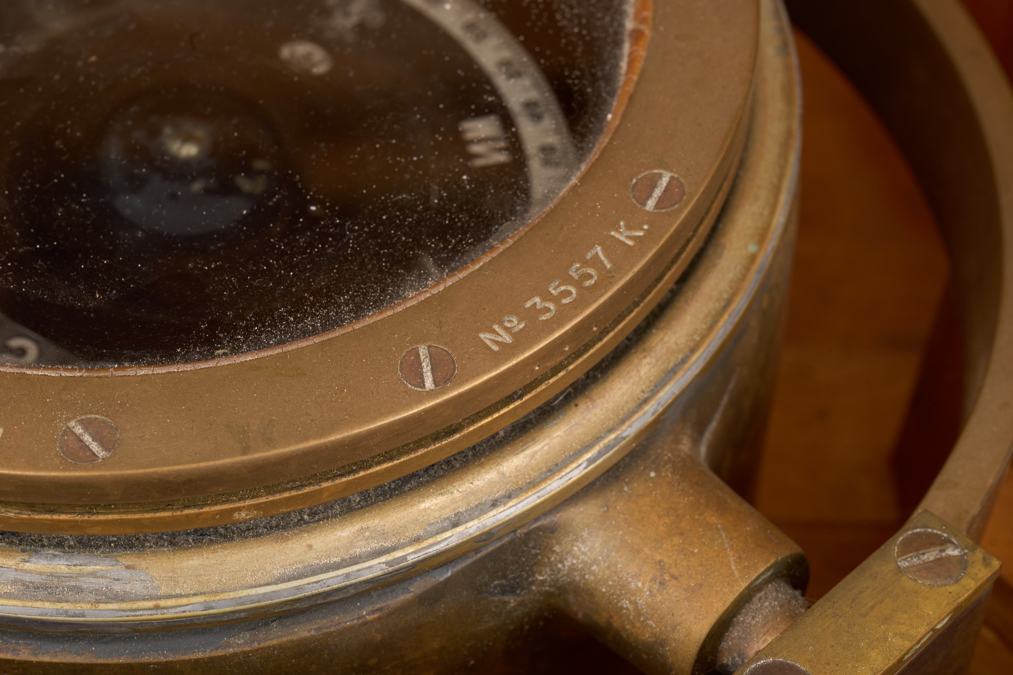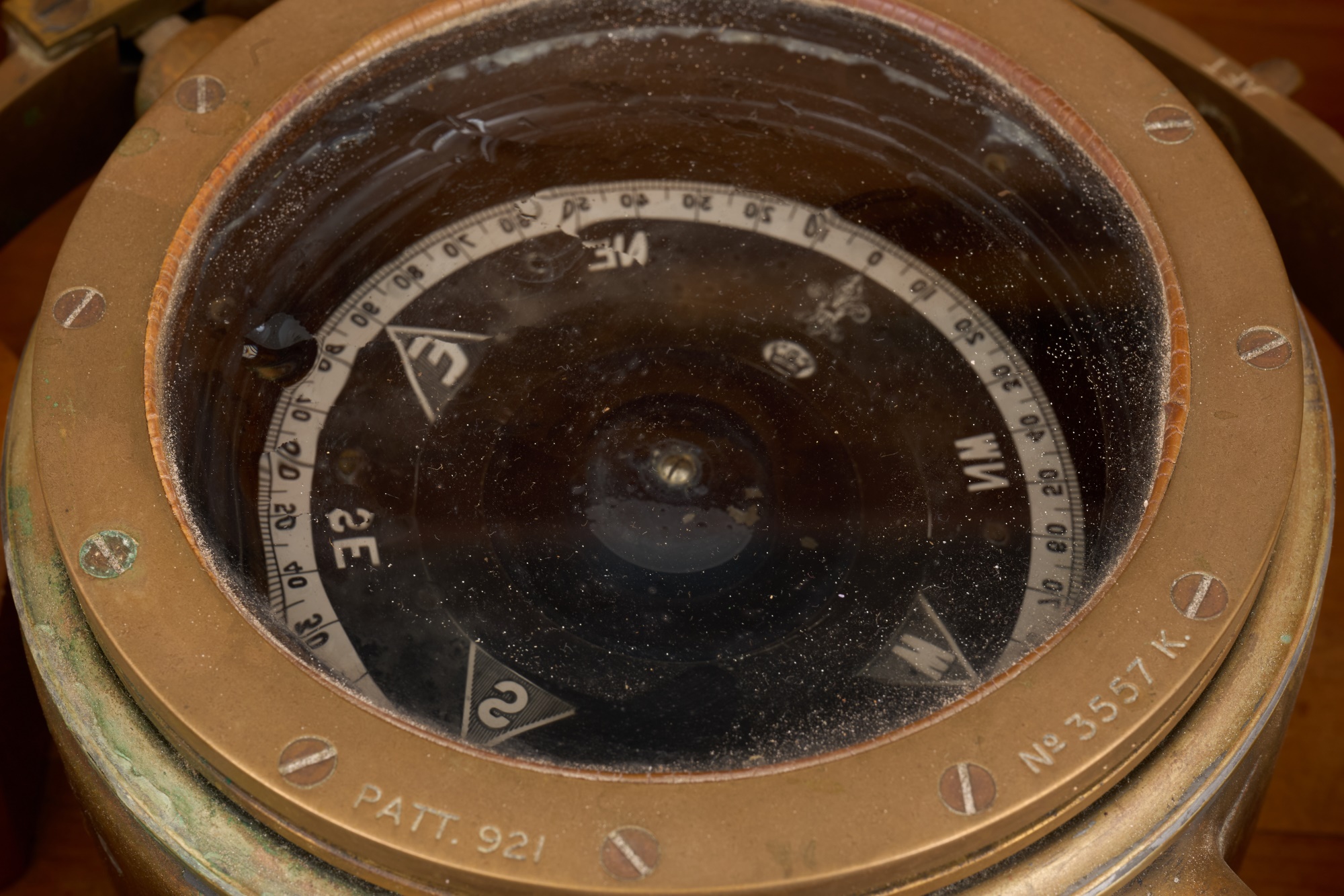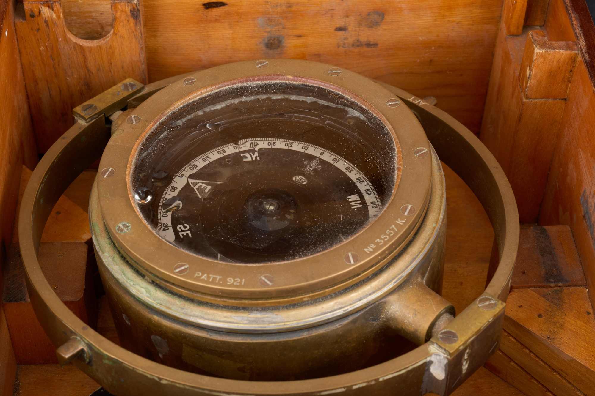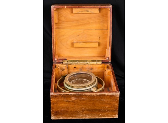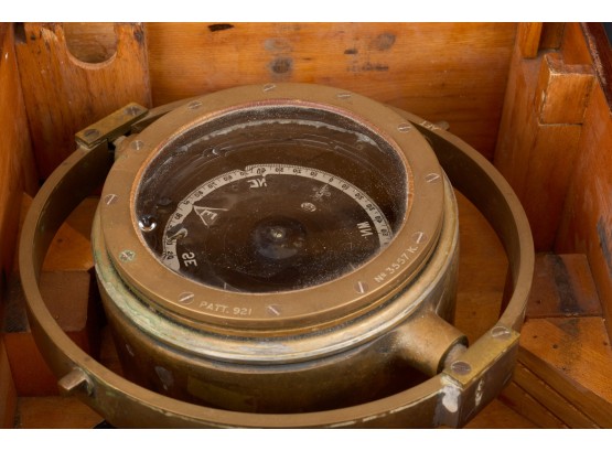4 inch dial. Pat 921 Serial Number 3557 K. 9 inches. Together with a wooden case not original to the compass 8.5 x 12 x 11.5 inches Condition: Good
