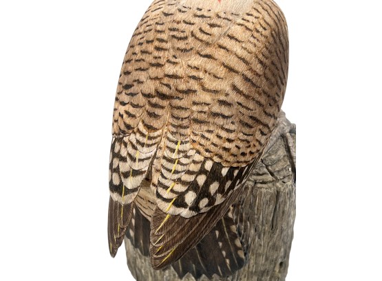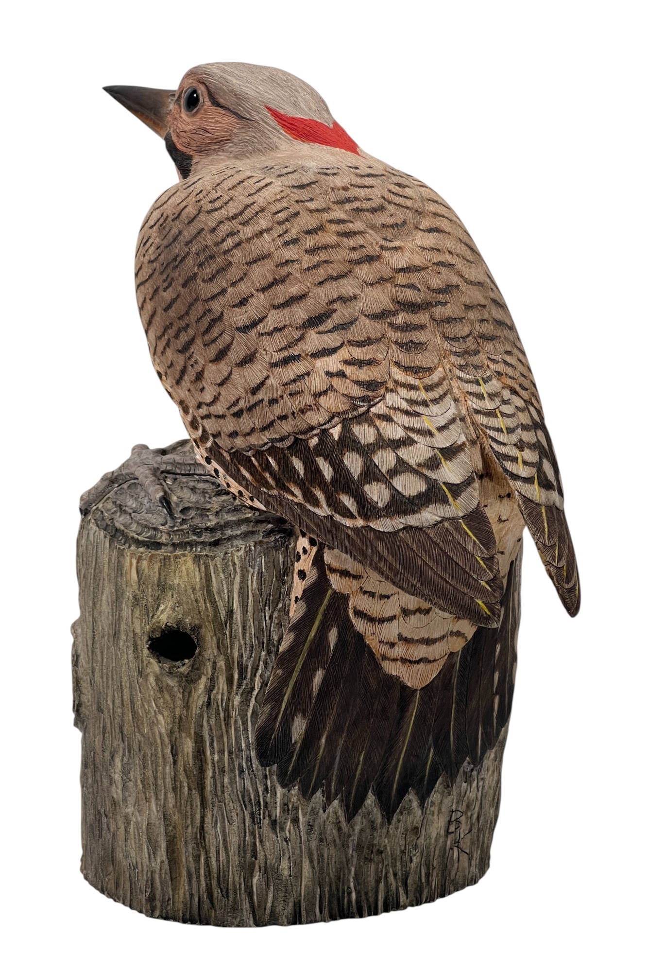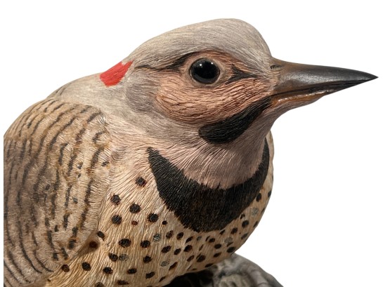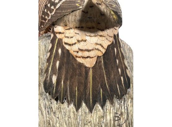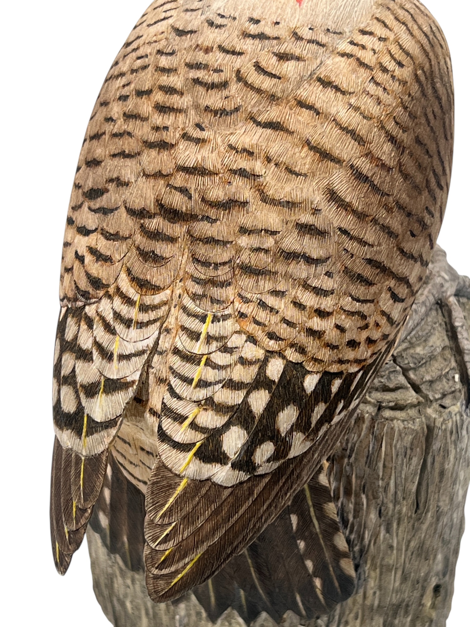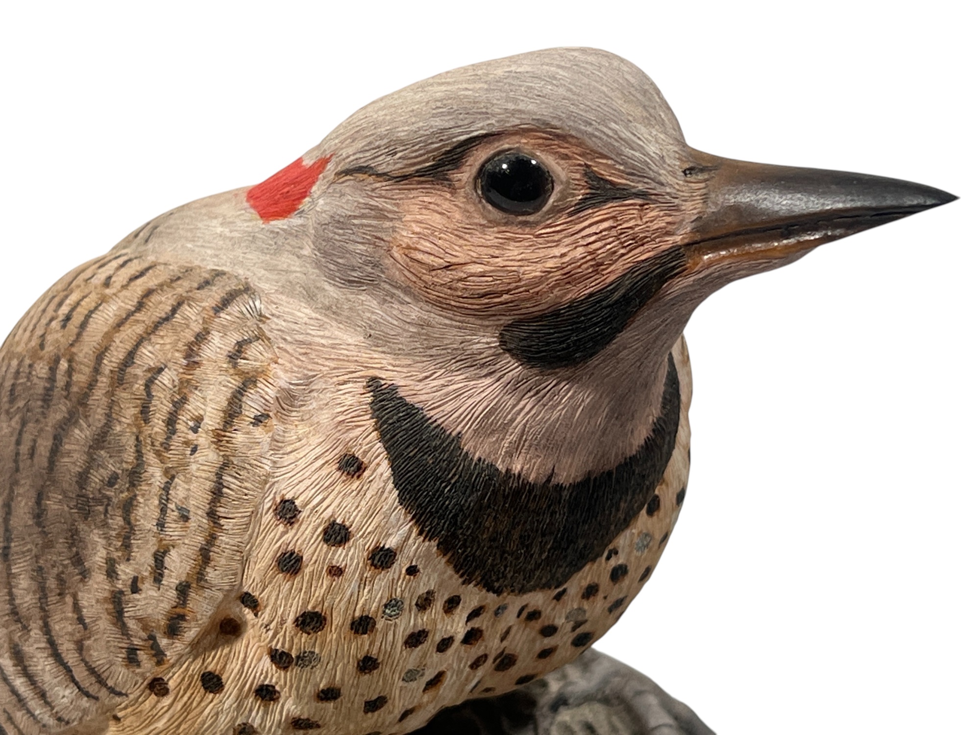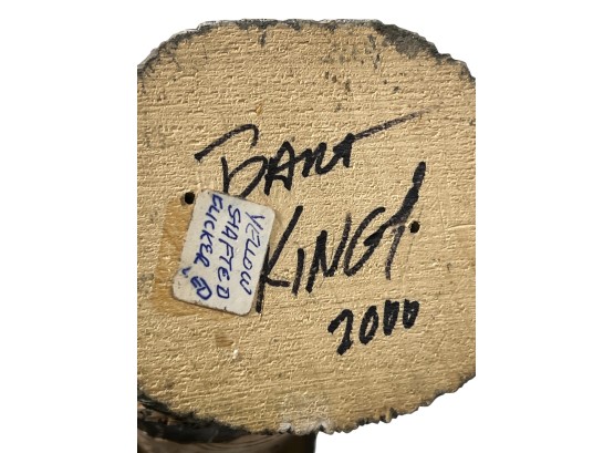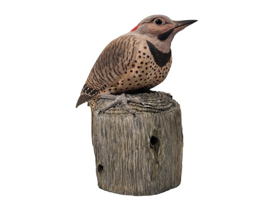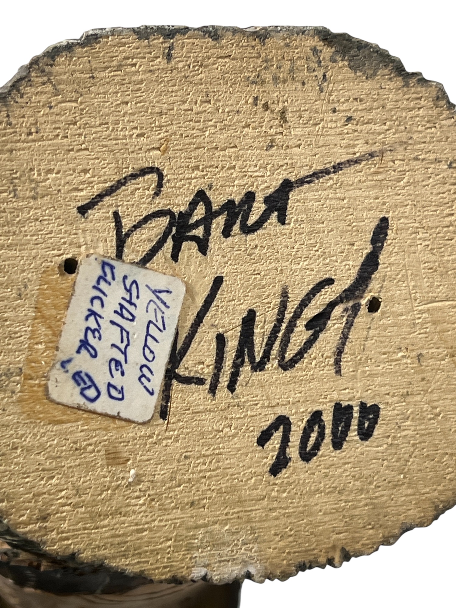 A fabulously detailed carved & painted Northern flicker, signed & dated under base. 8 1/2 inches. N.B. Bart King is son of carver Huber King. Condition: Good. Temp No 3030