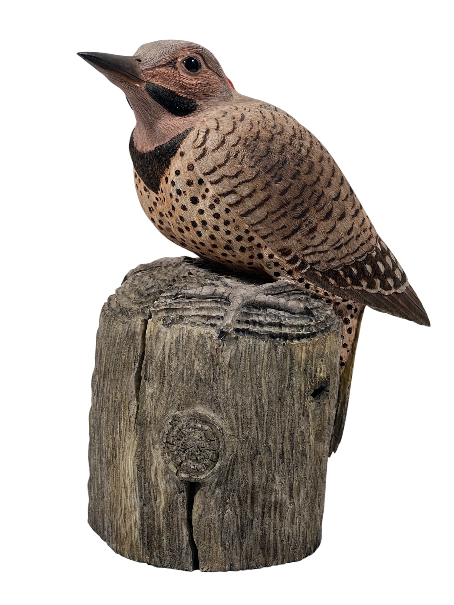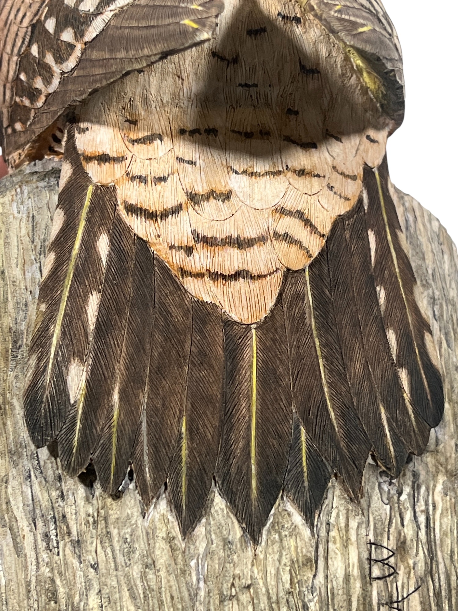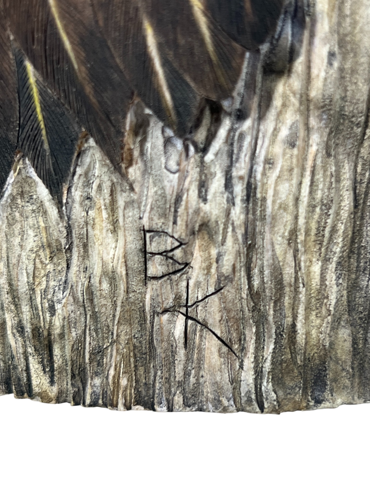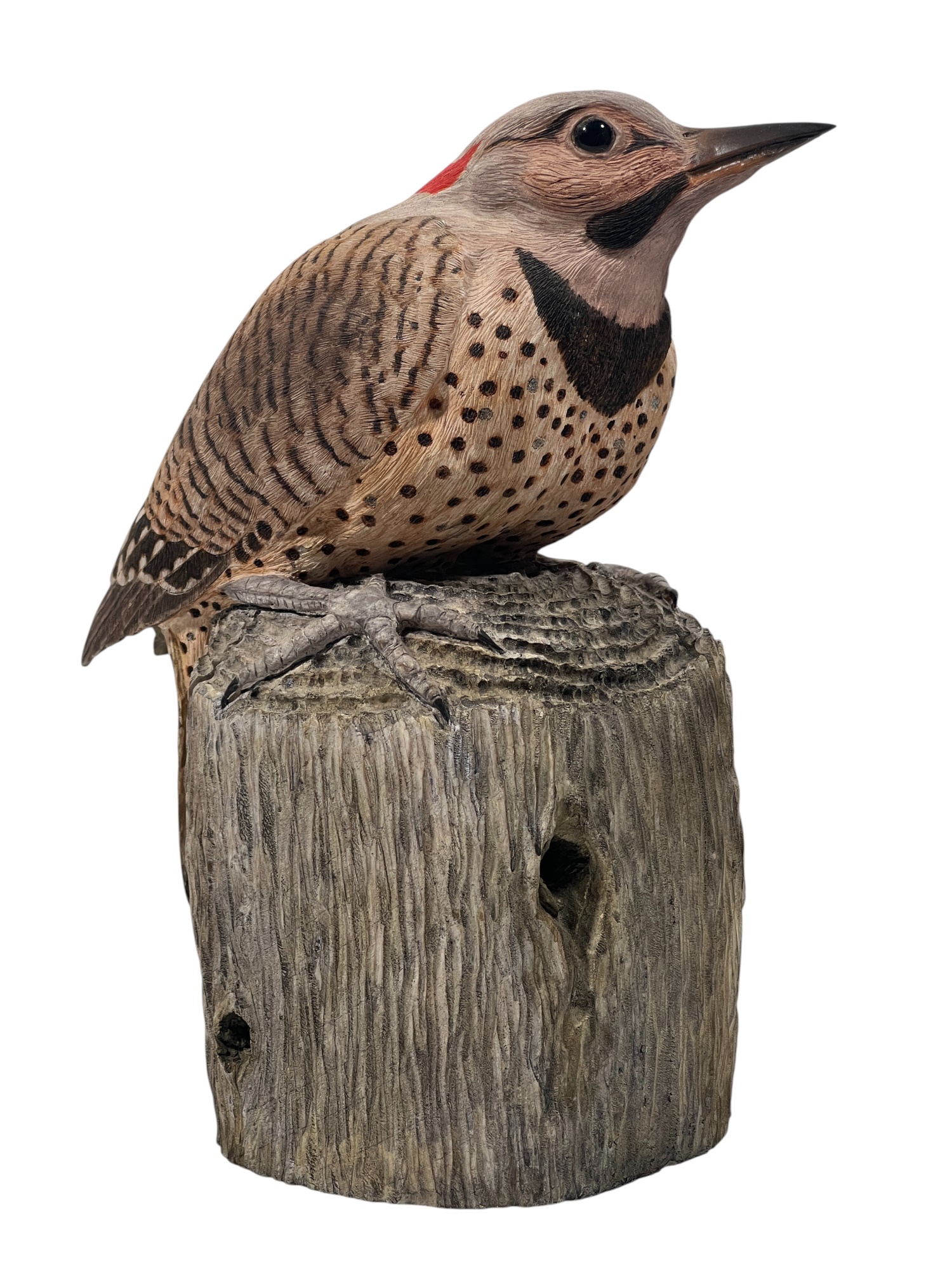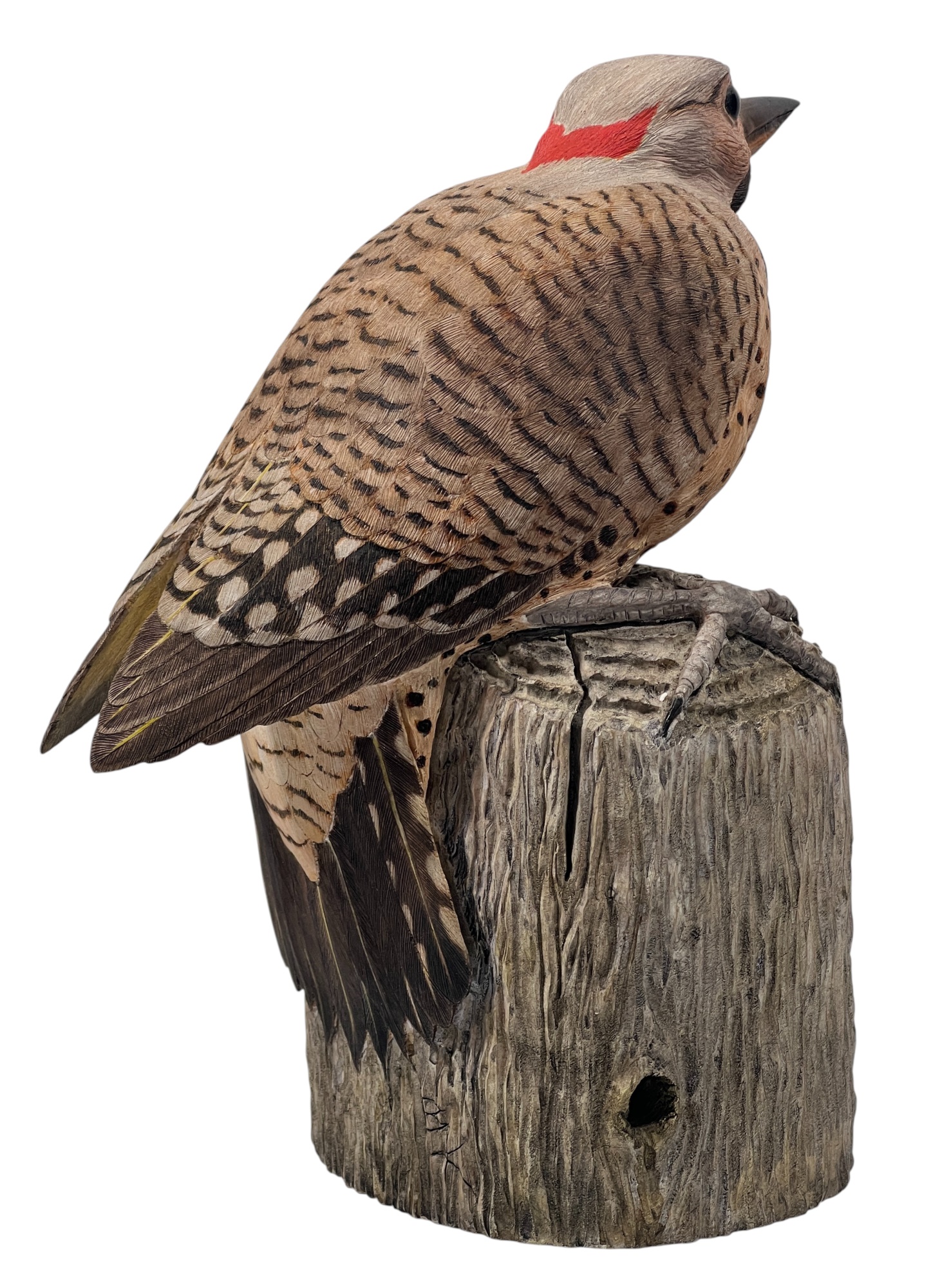 A fabulously detailed carved & painted Northern flicker, signed & dated under base. 8 1/2 inches. N.B. Bart King is son of carver Huber King. Condition: Good. Temp No 3030