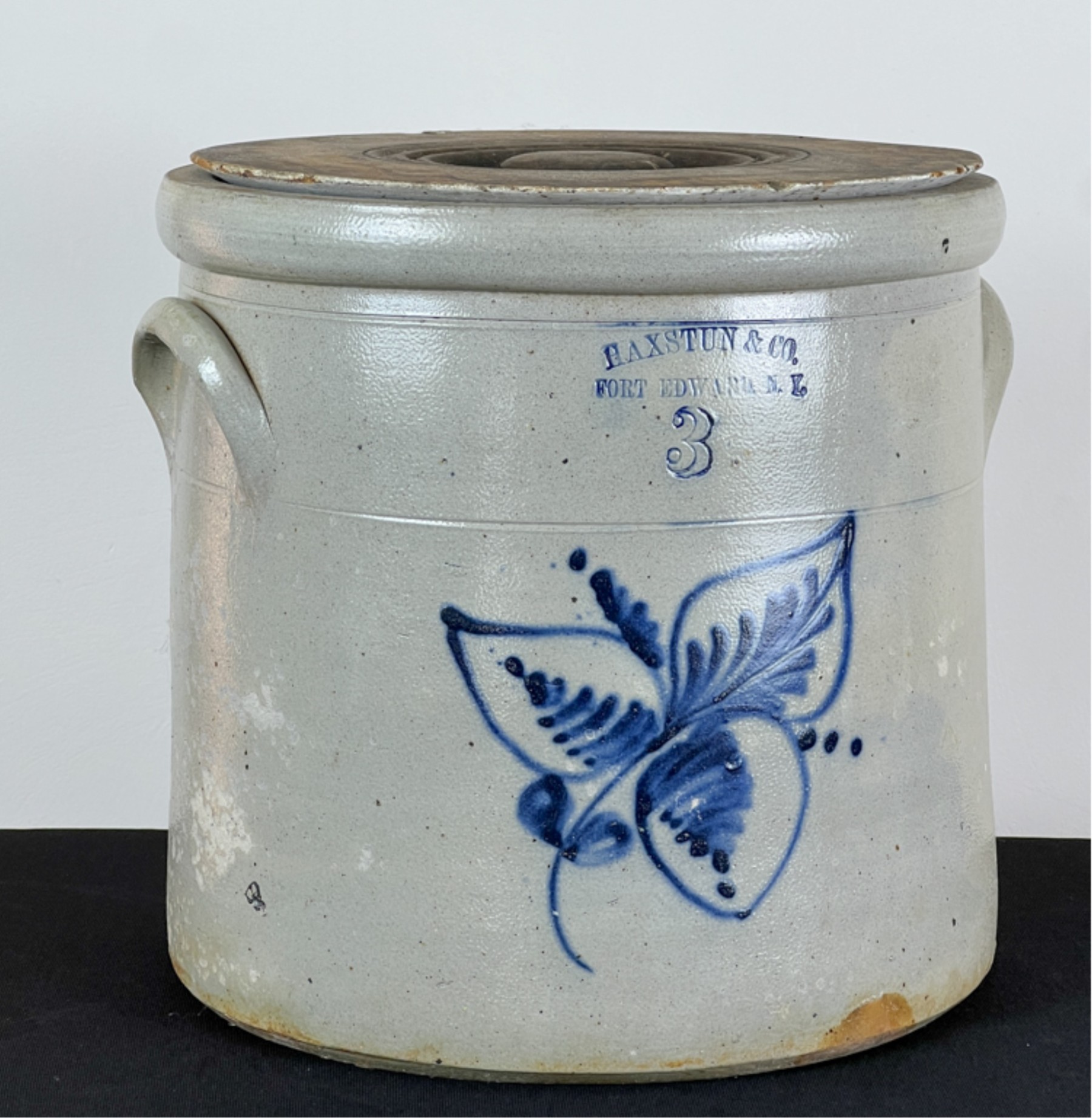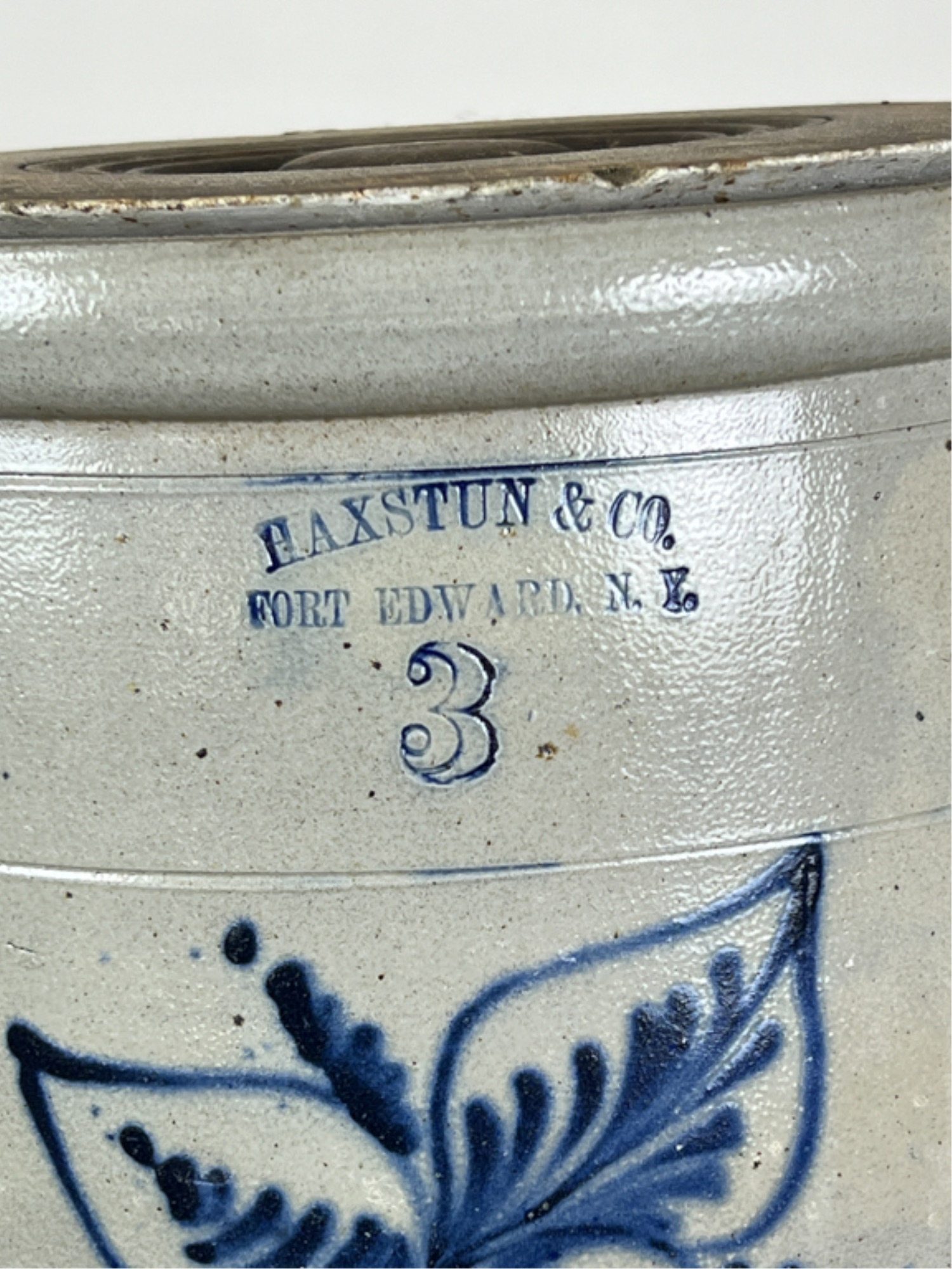 Of Fort Edward NY. With cobalt decorated floral design. 10 1/4 x 11 1/2 inches.