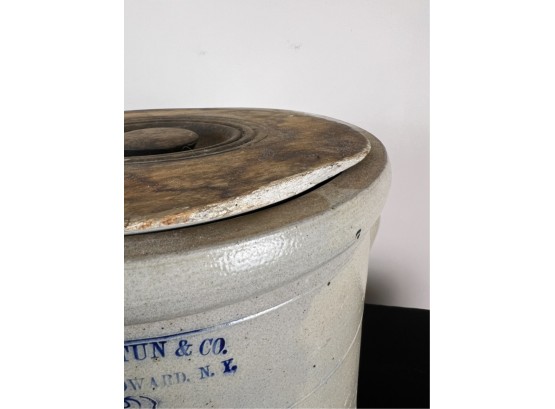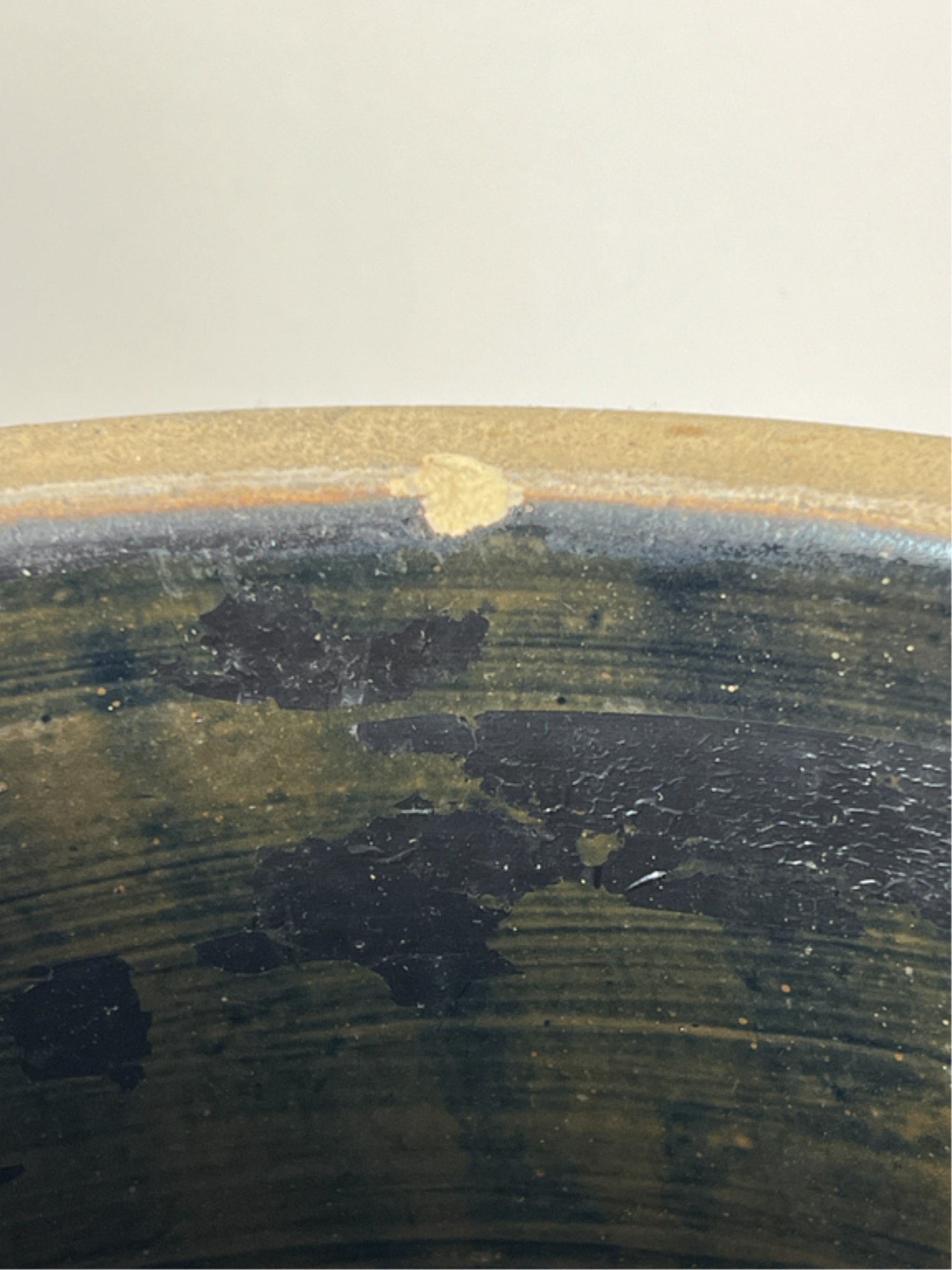 Notes: Loss to lid. Interior rim chip. Loss to glaze.
