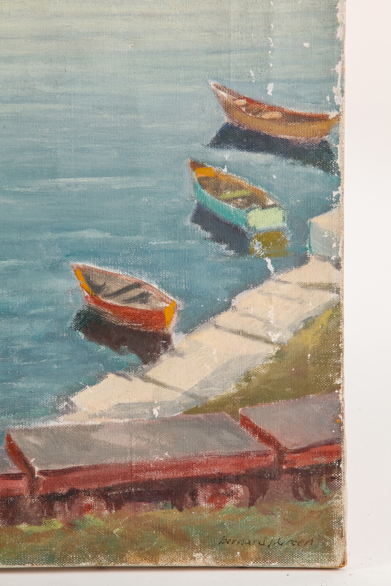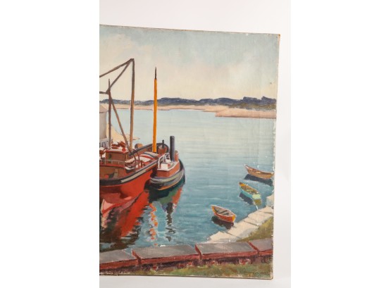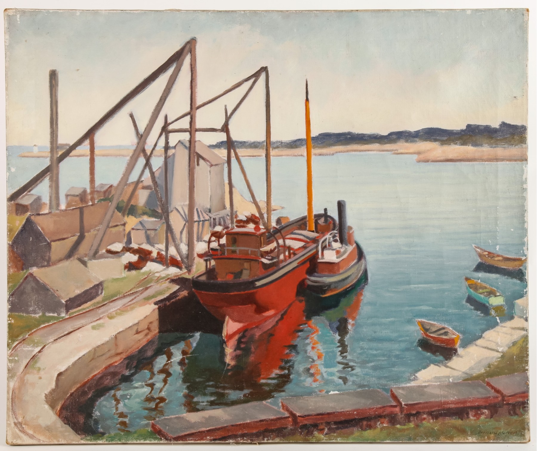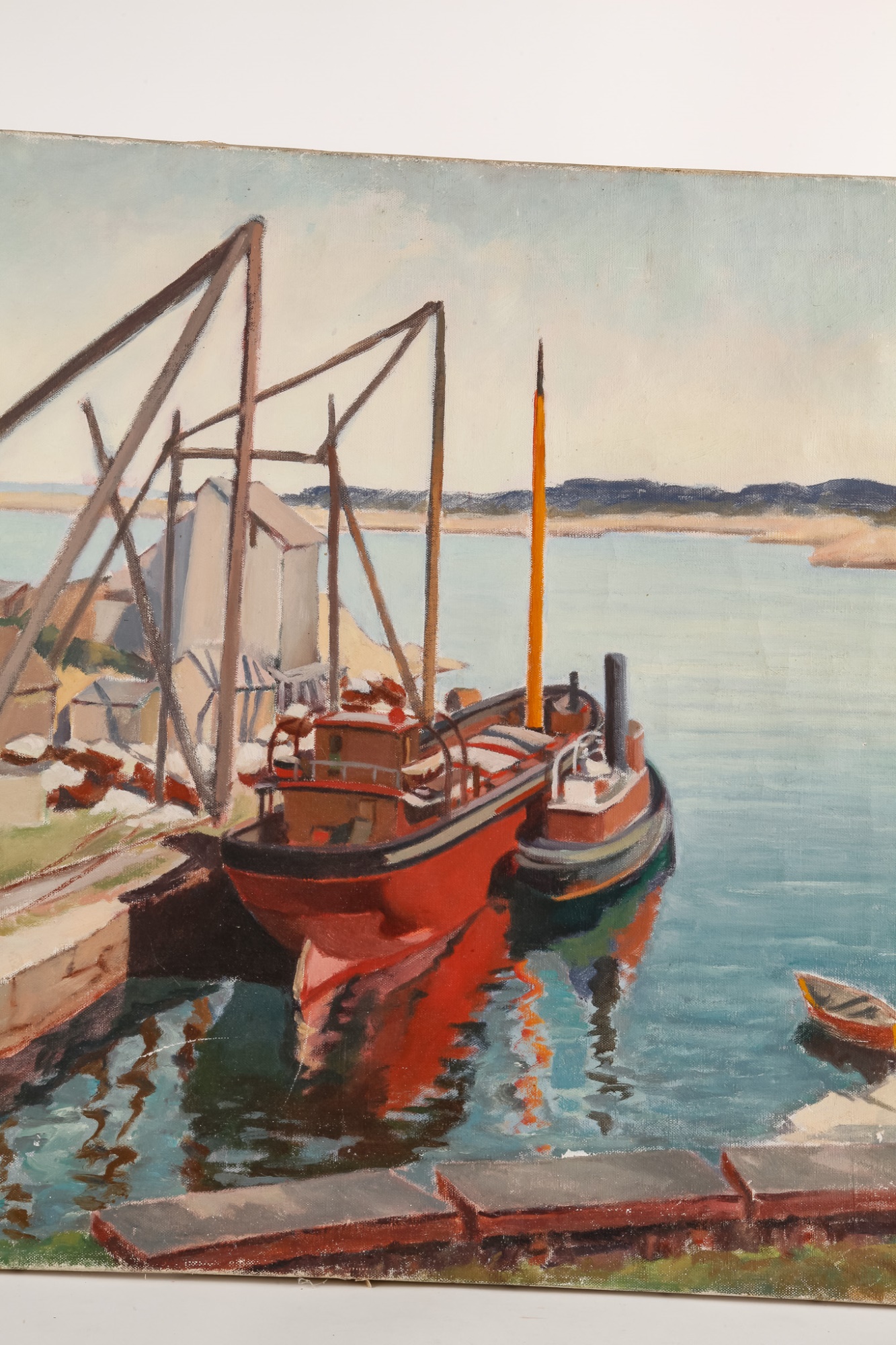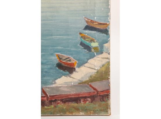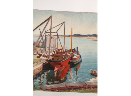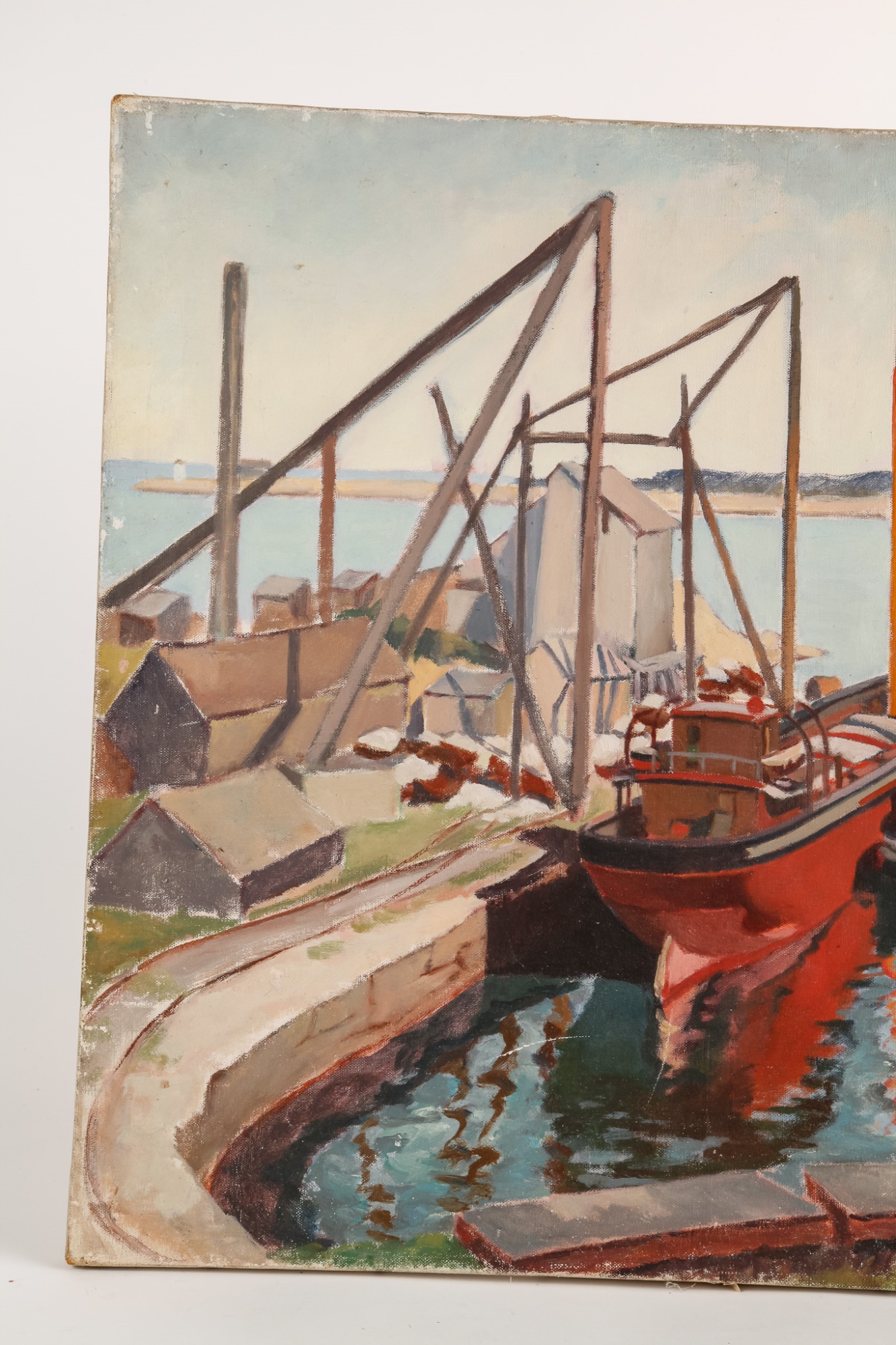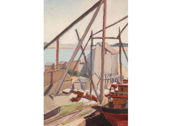 Rockport Docks, oil on canvas, signed. 25 x 30 inches unframed.