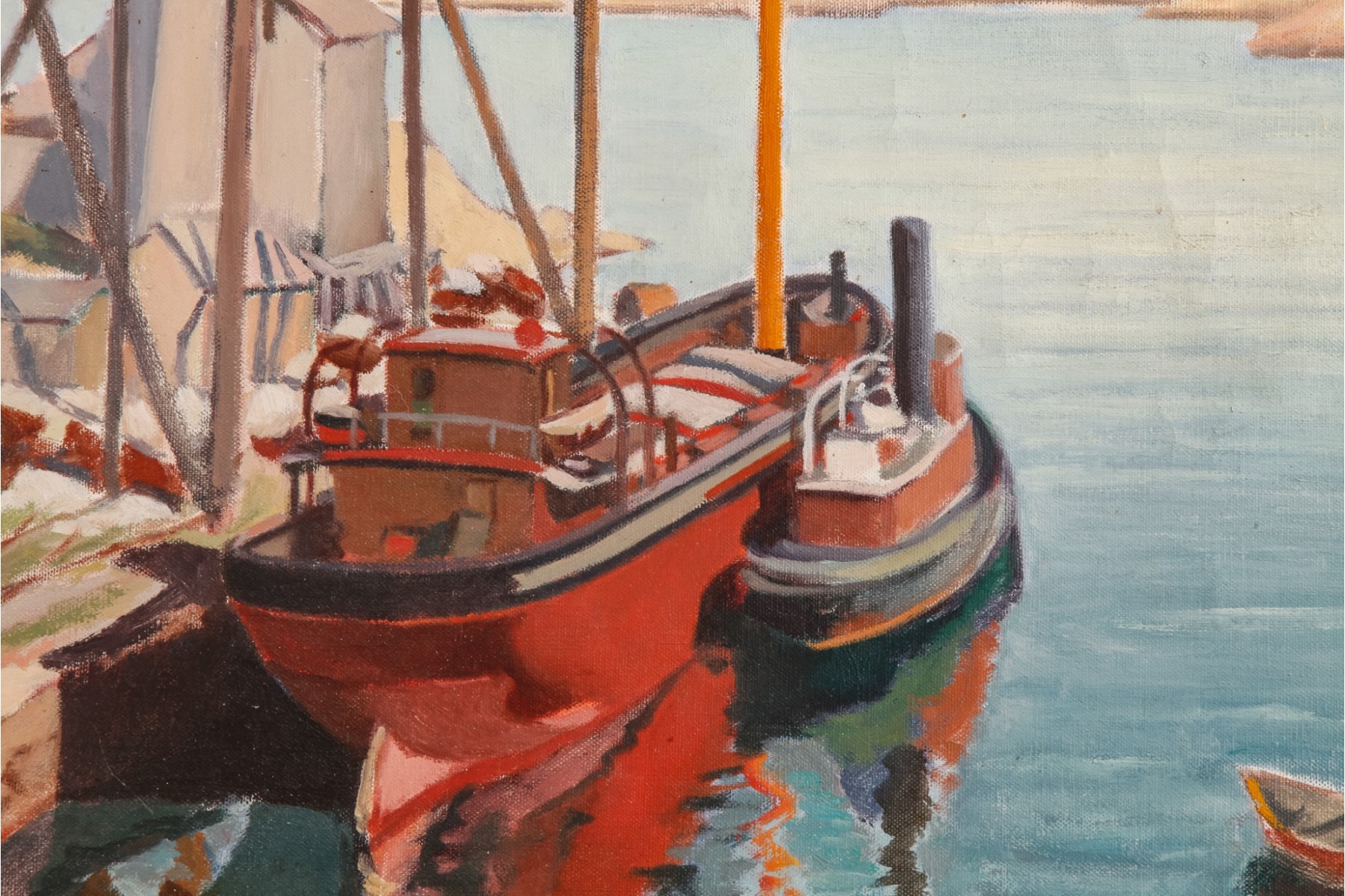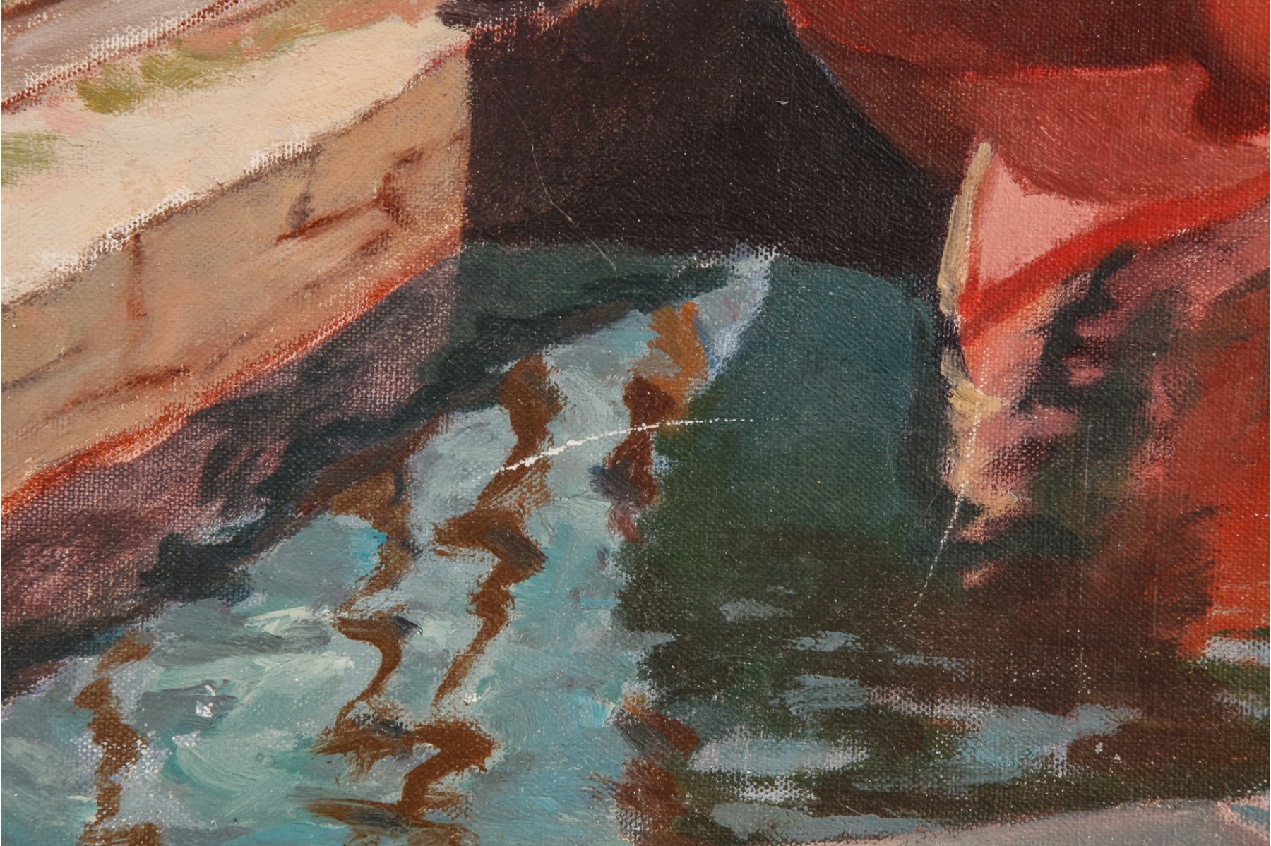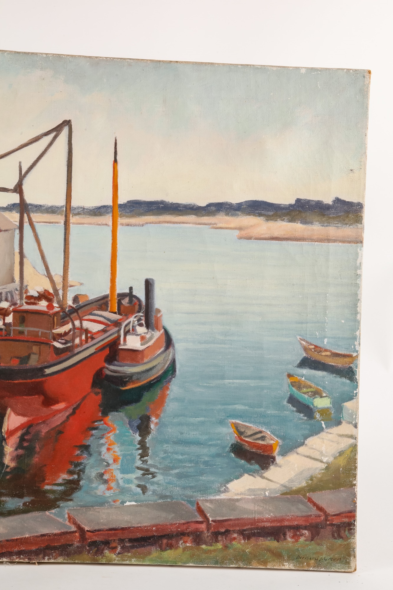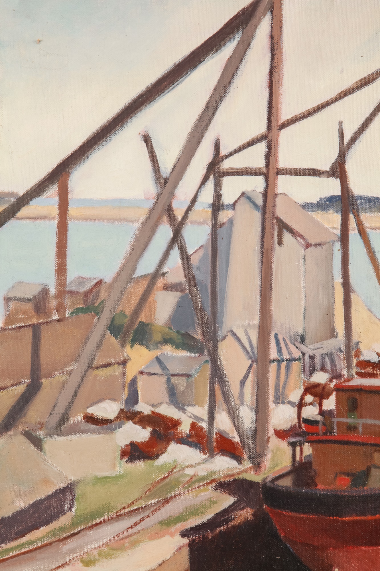 Rockport Docks, oil on canvas, signed. 25 x 30 inches unframed.