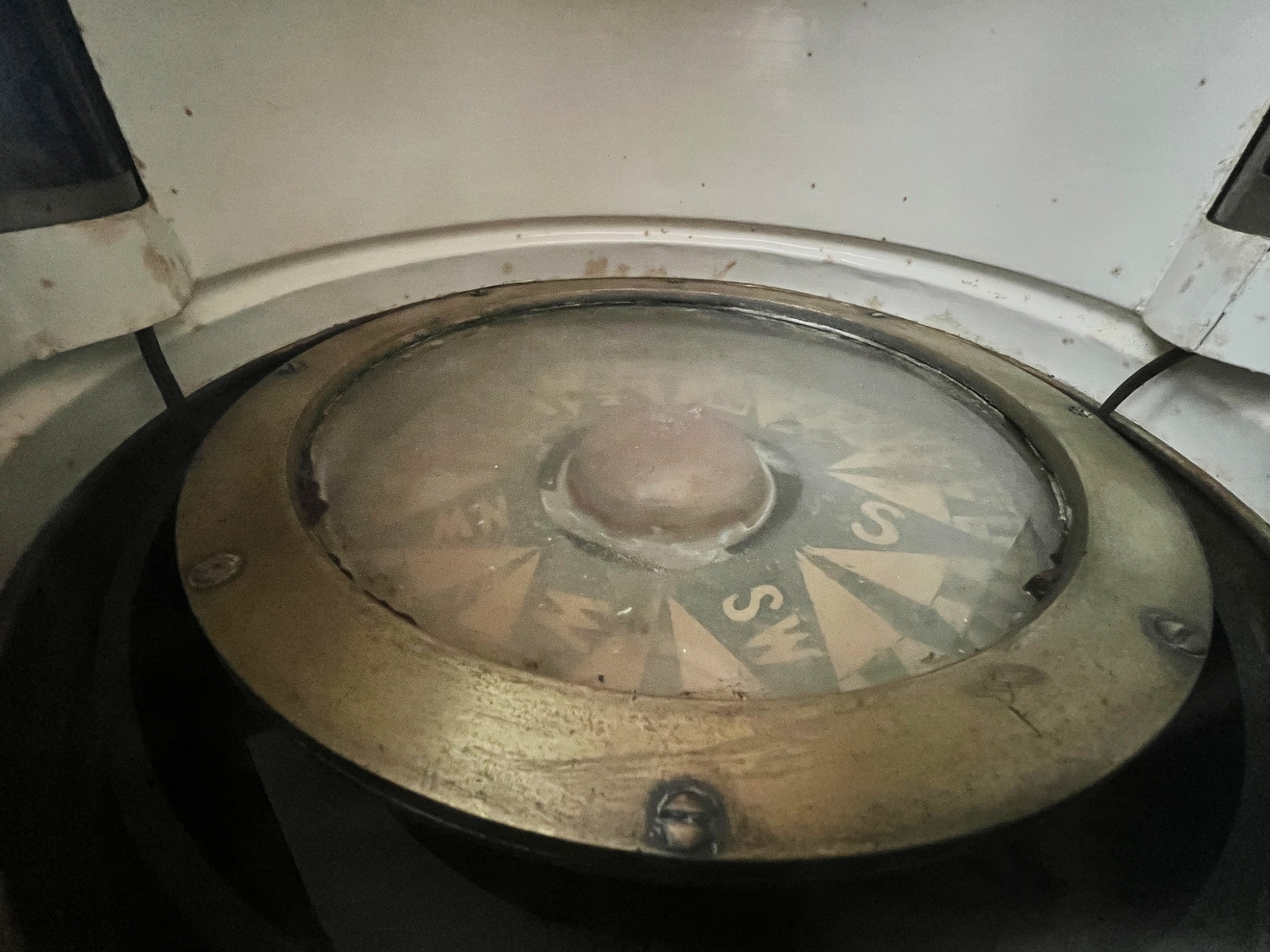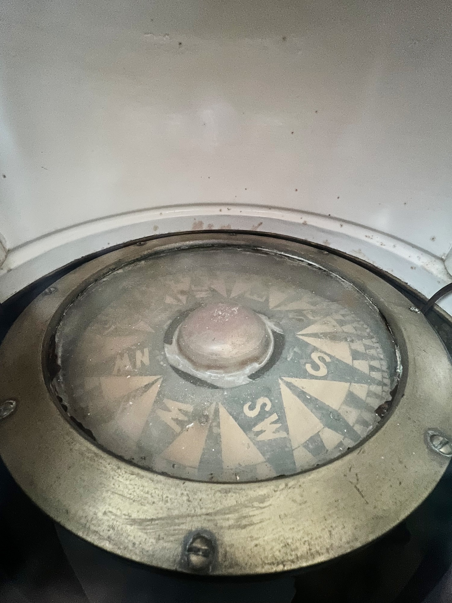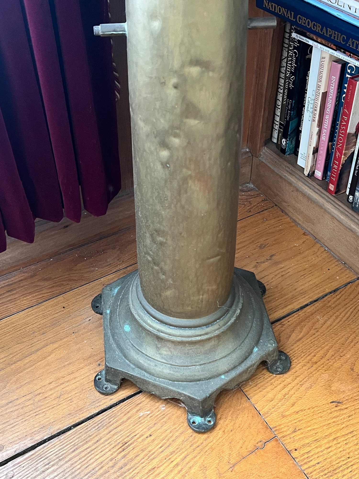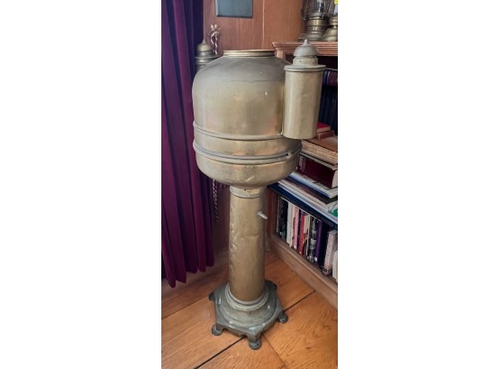 Gimbaled 8 inch wet compass housed in a (2) light binnacle raised on a footed pedestal. 44 inches. Provenance: The German raider, the Crown Prince Wilhelm was brought from Germany to the United States for dismantling to be displayed at the Philadelphia Centennial. This plan was not carried out, and the binnacle came into the possession of the late Captain James Crawford. Signed. Thomas L. VanDerslice.