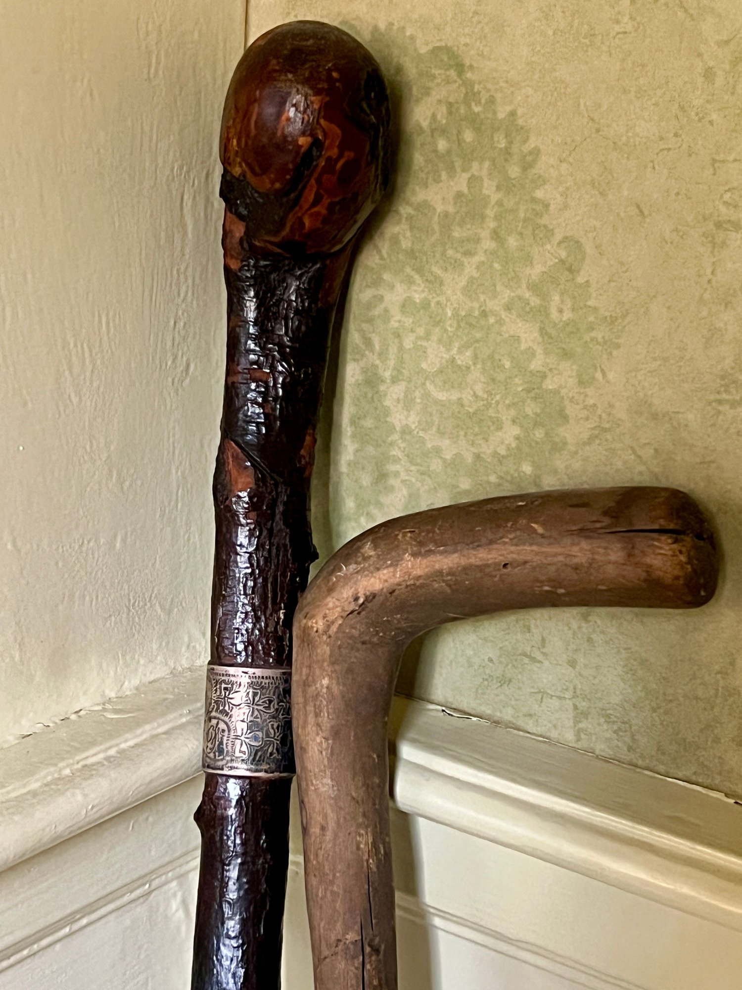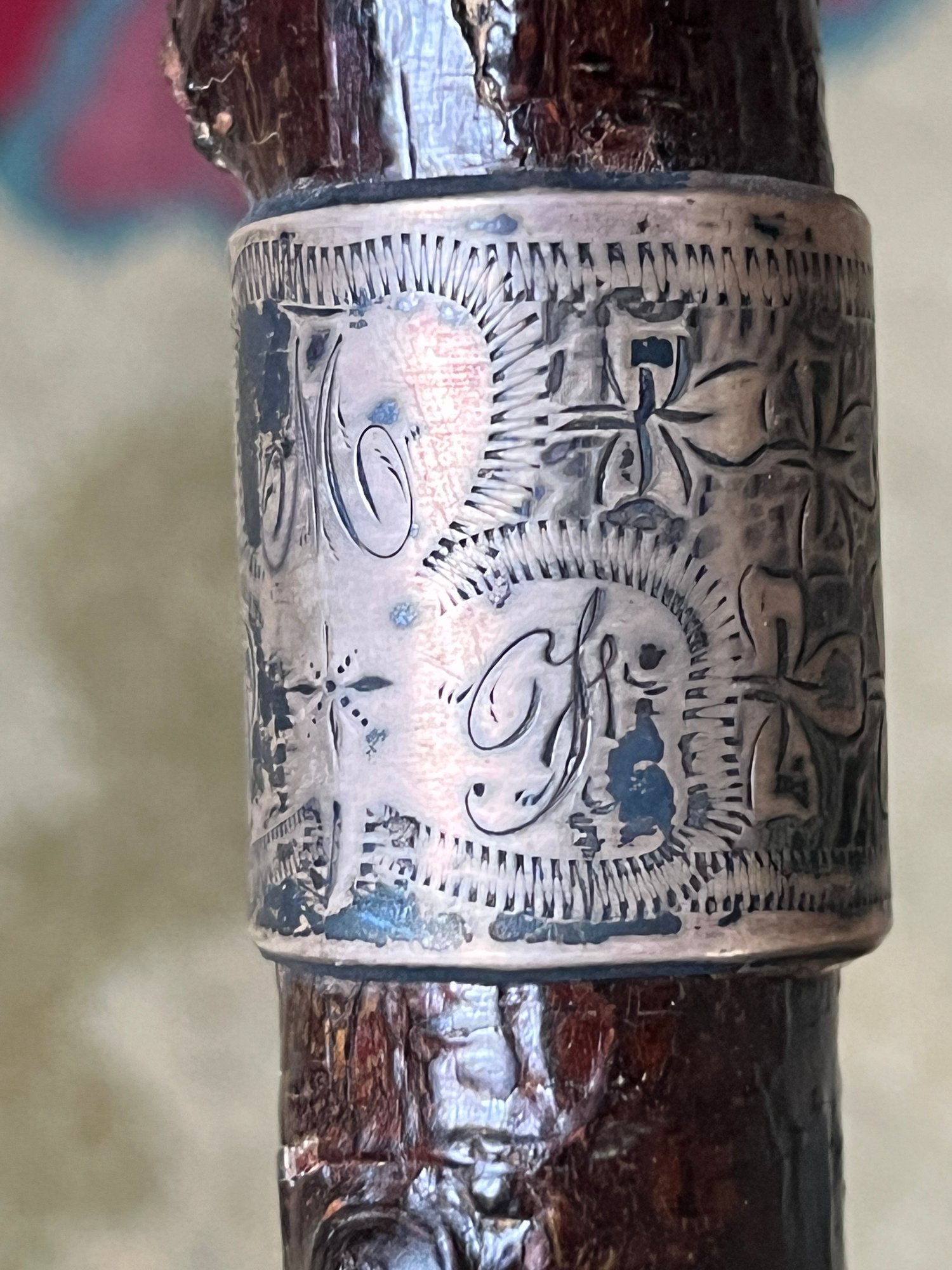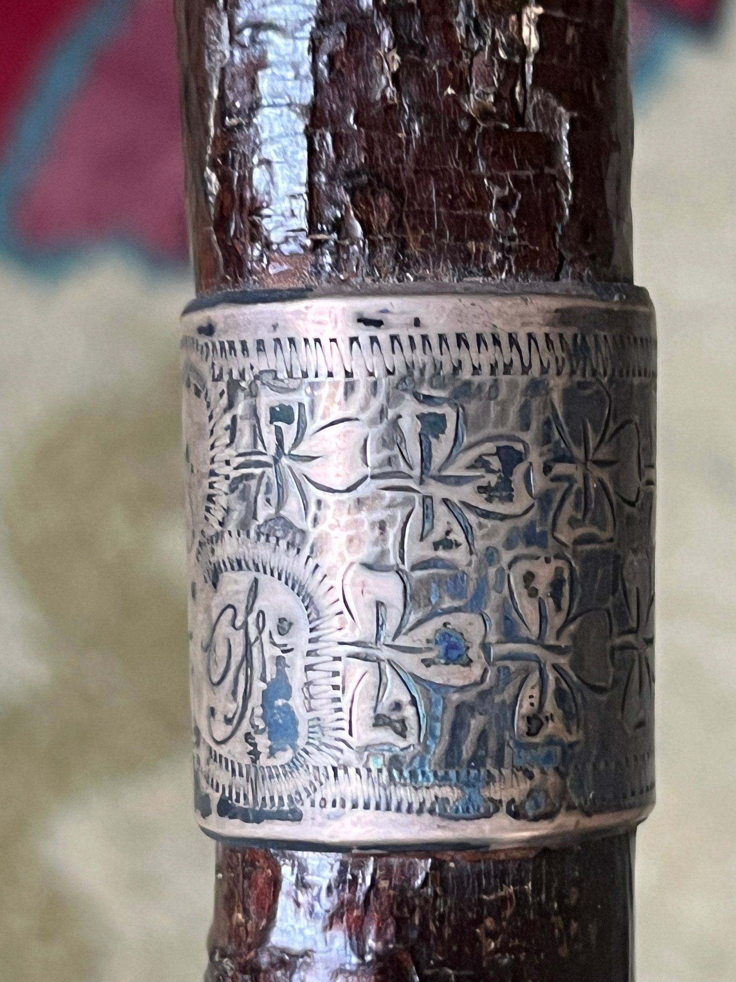 Blackthorn example with sterling silver ferrule engraved with crosses. 36 inches (and smaller)