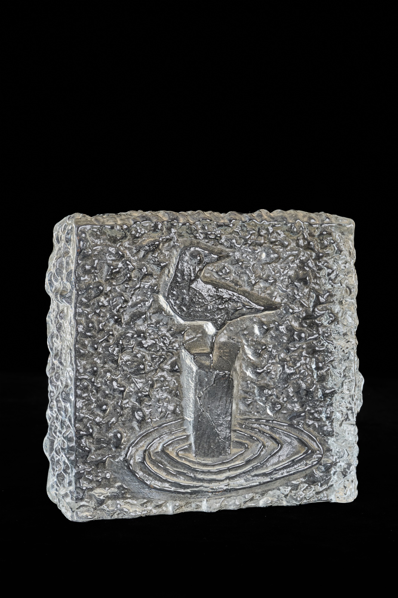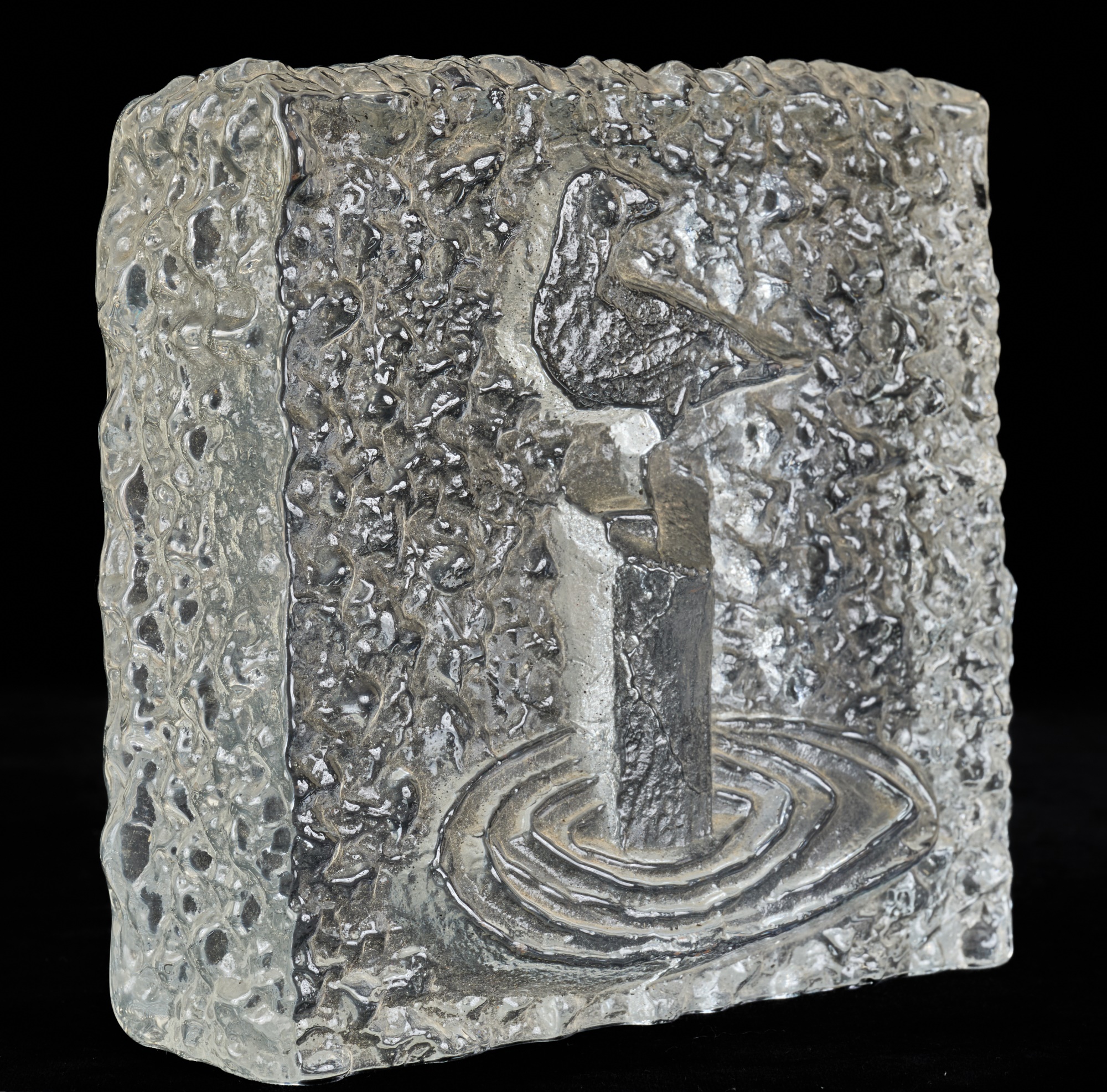 Solid glass in relief 5 x 5 x 2 inches Condition: Good