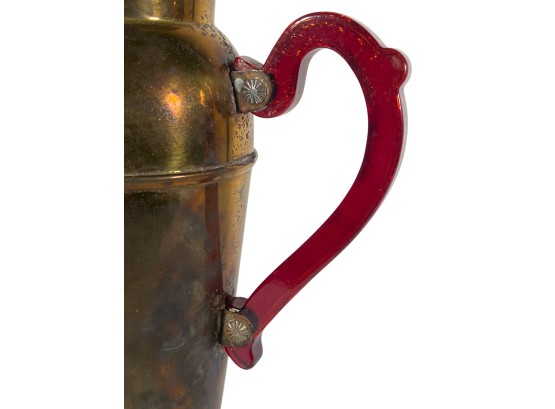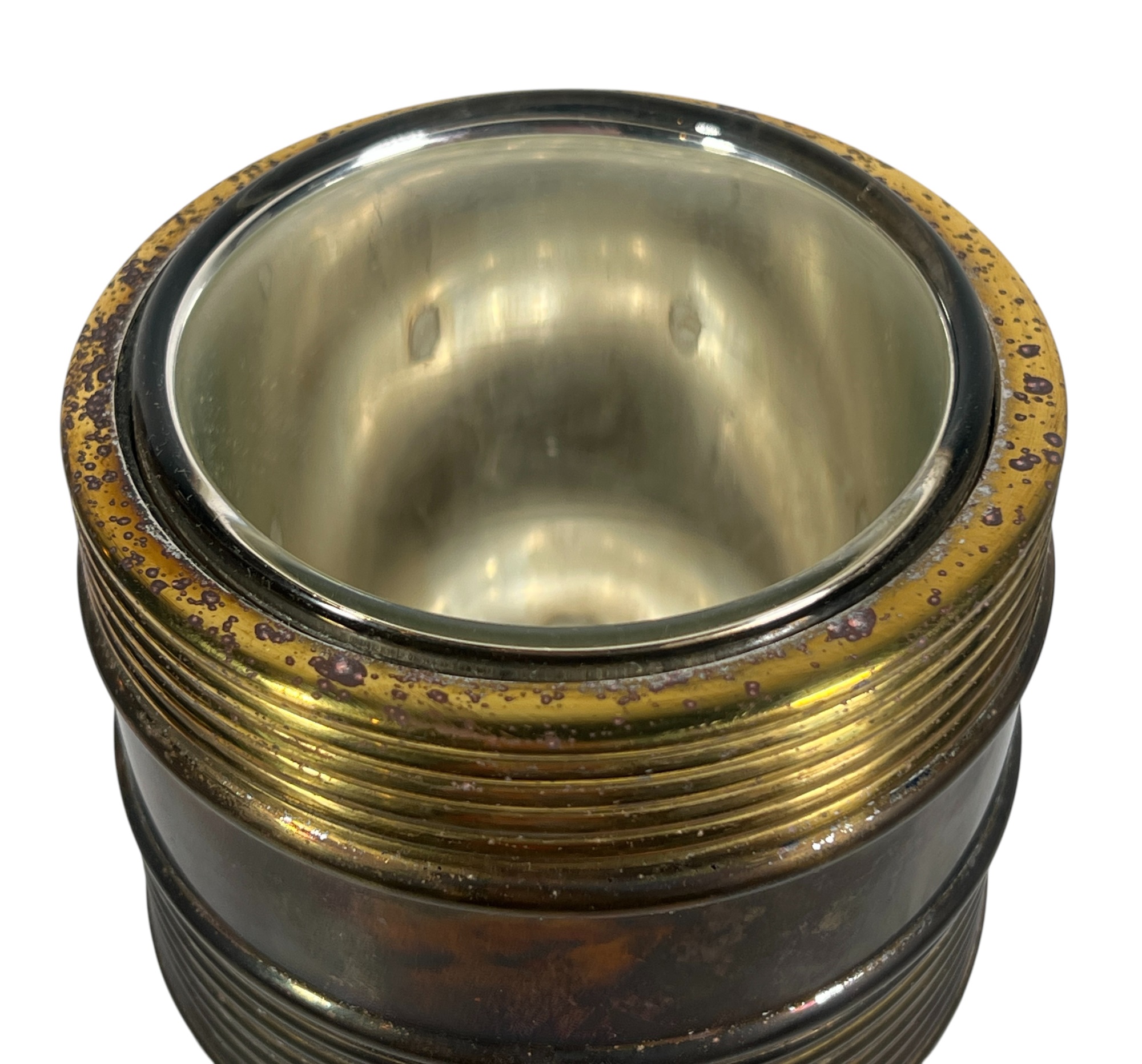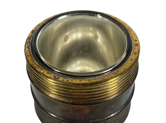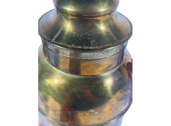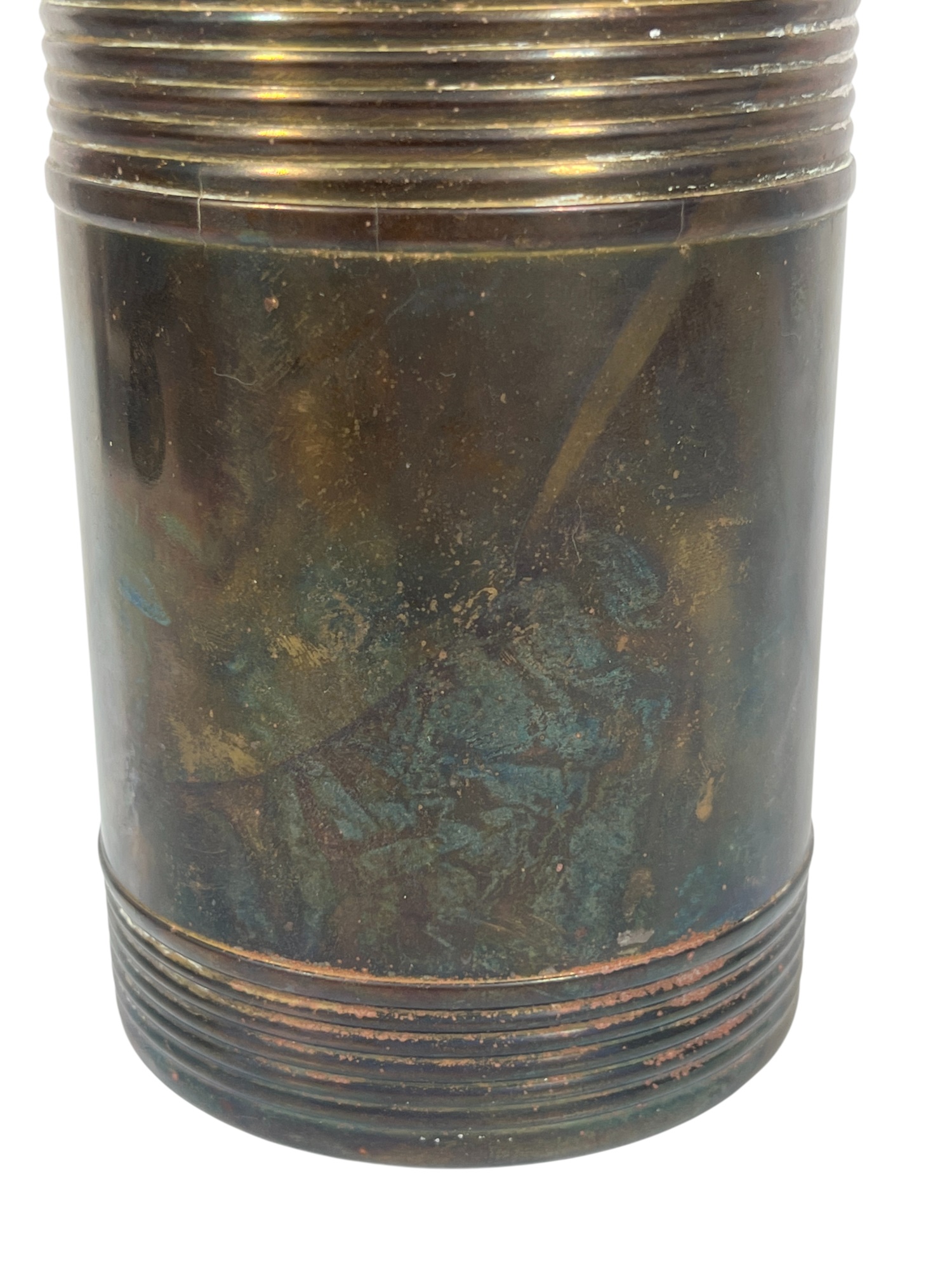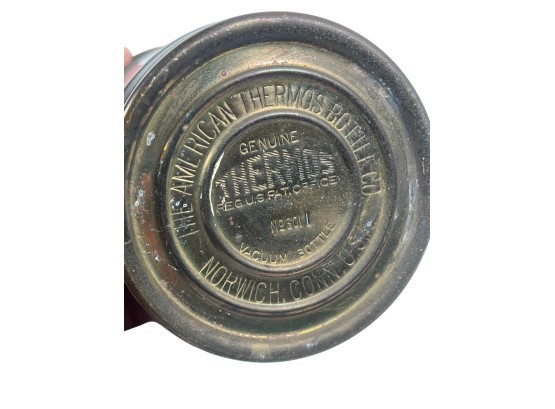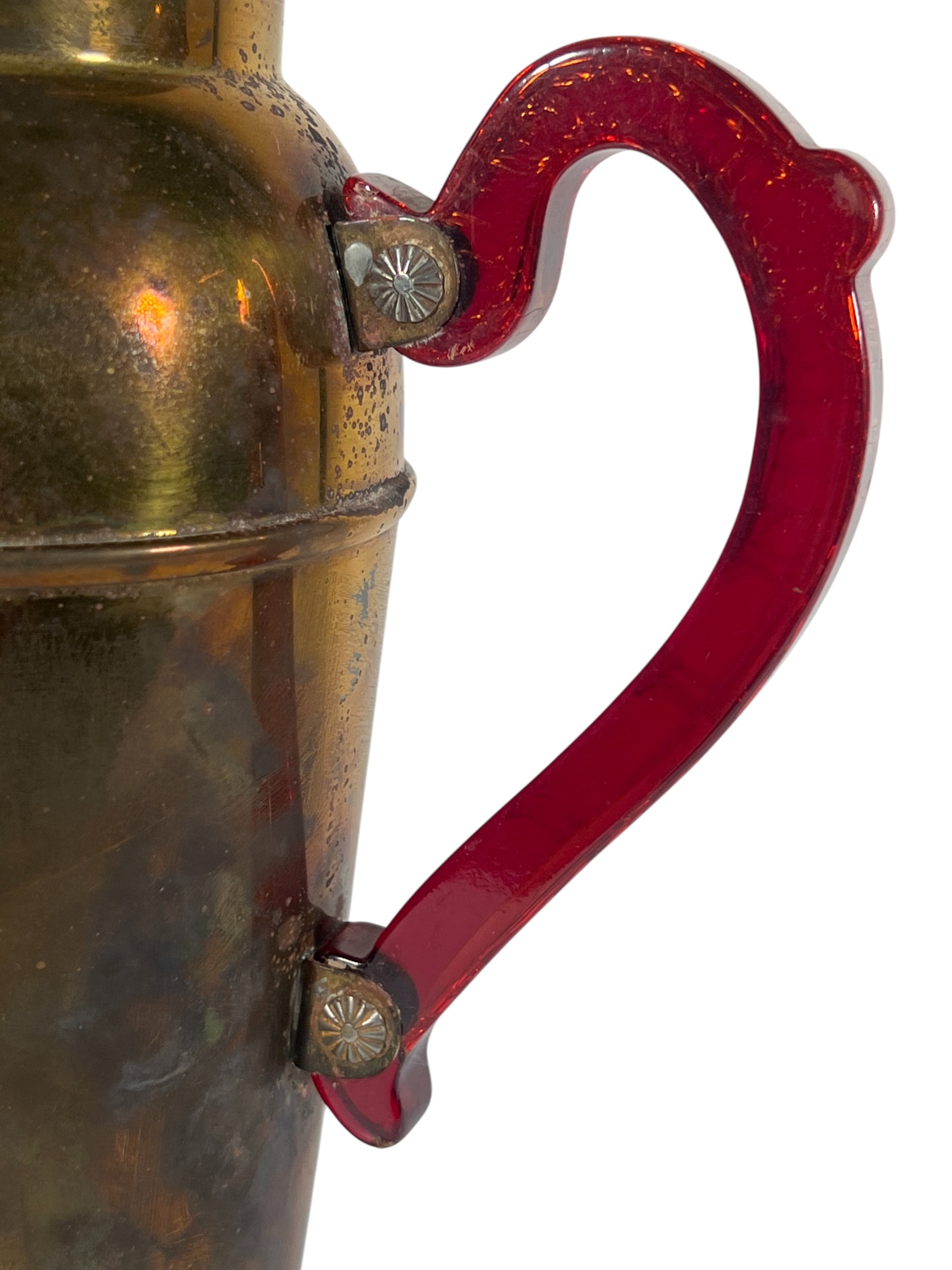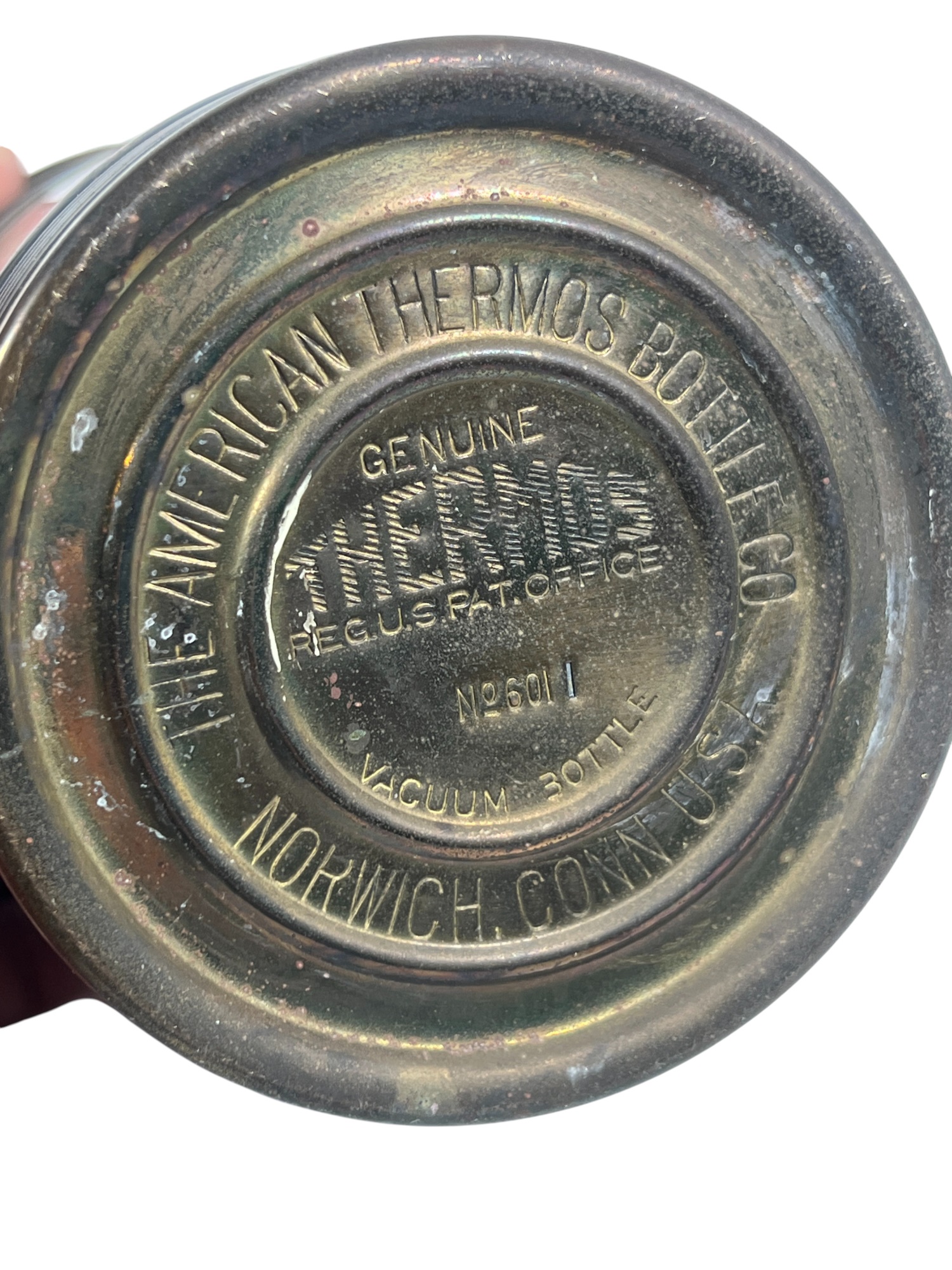 Great (2) piece Art Deco lot including brass Thermos no. 601 and cocktail shaker with bakelite handle. 11 1/2 inches. Condition: Some cracks to shaker cover. Temp No 8584