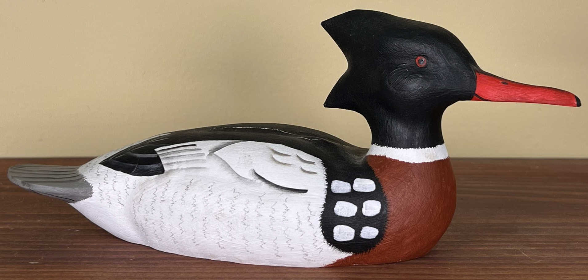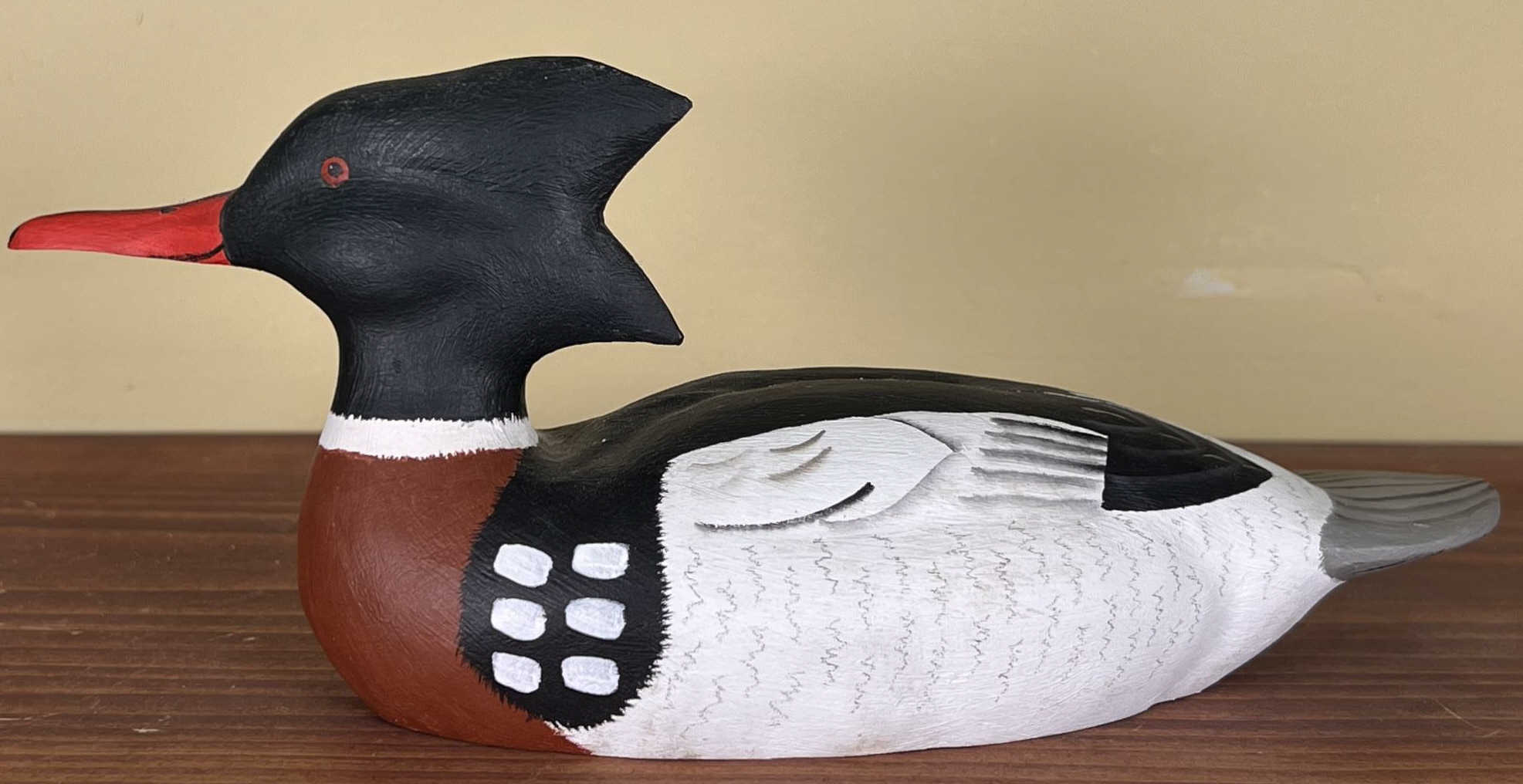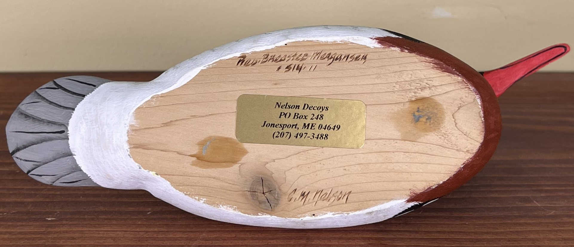 Red Breasted Merganser. Signed under base. Nelson Decoys, Jonesport, ME.10" long