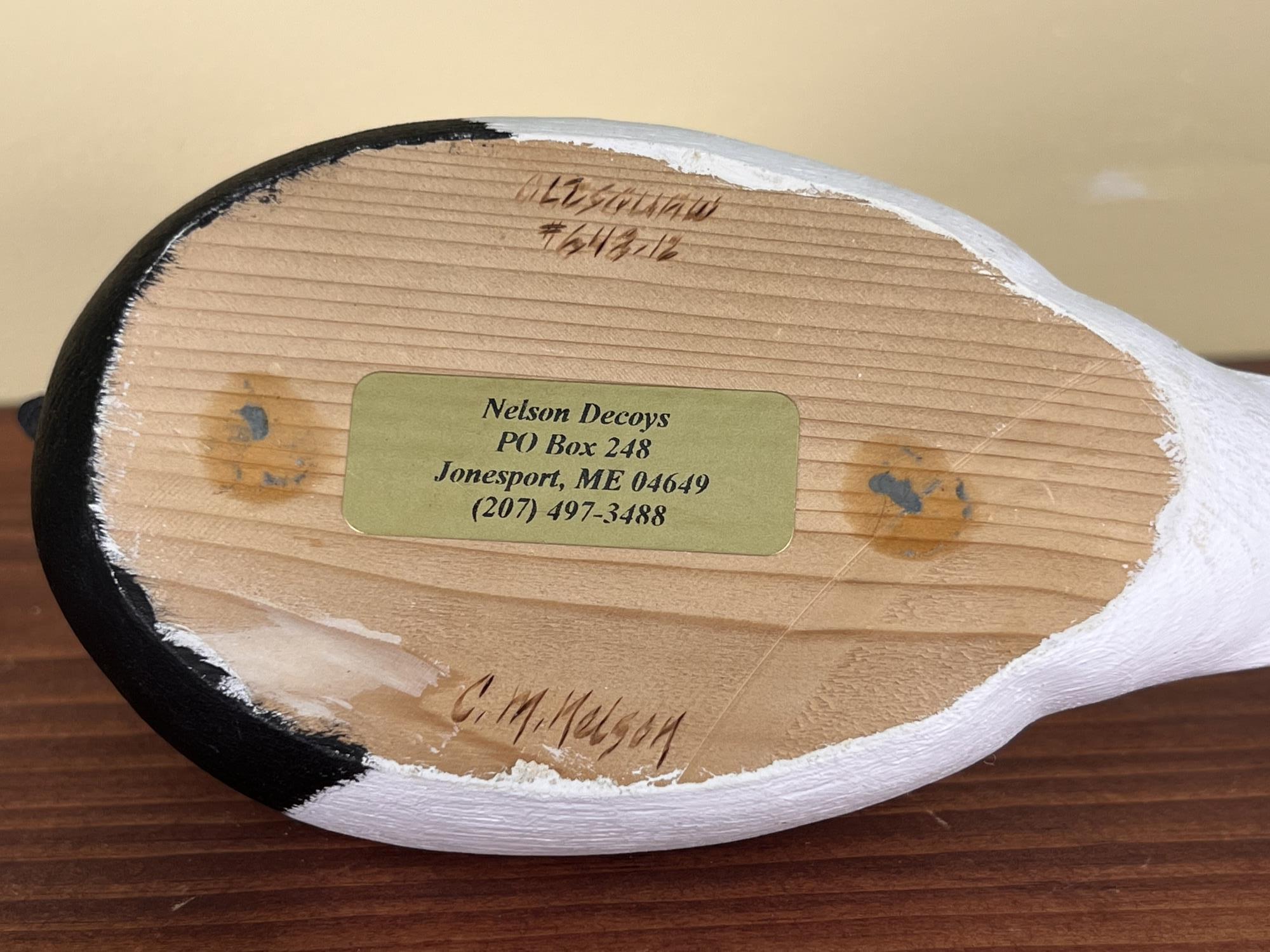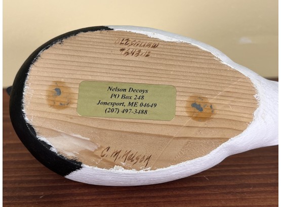 Signed under base. Nelson Decoys, Jonesport, ME. 9 1/2" long