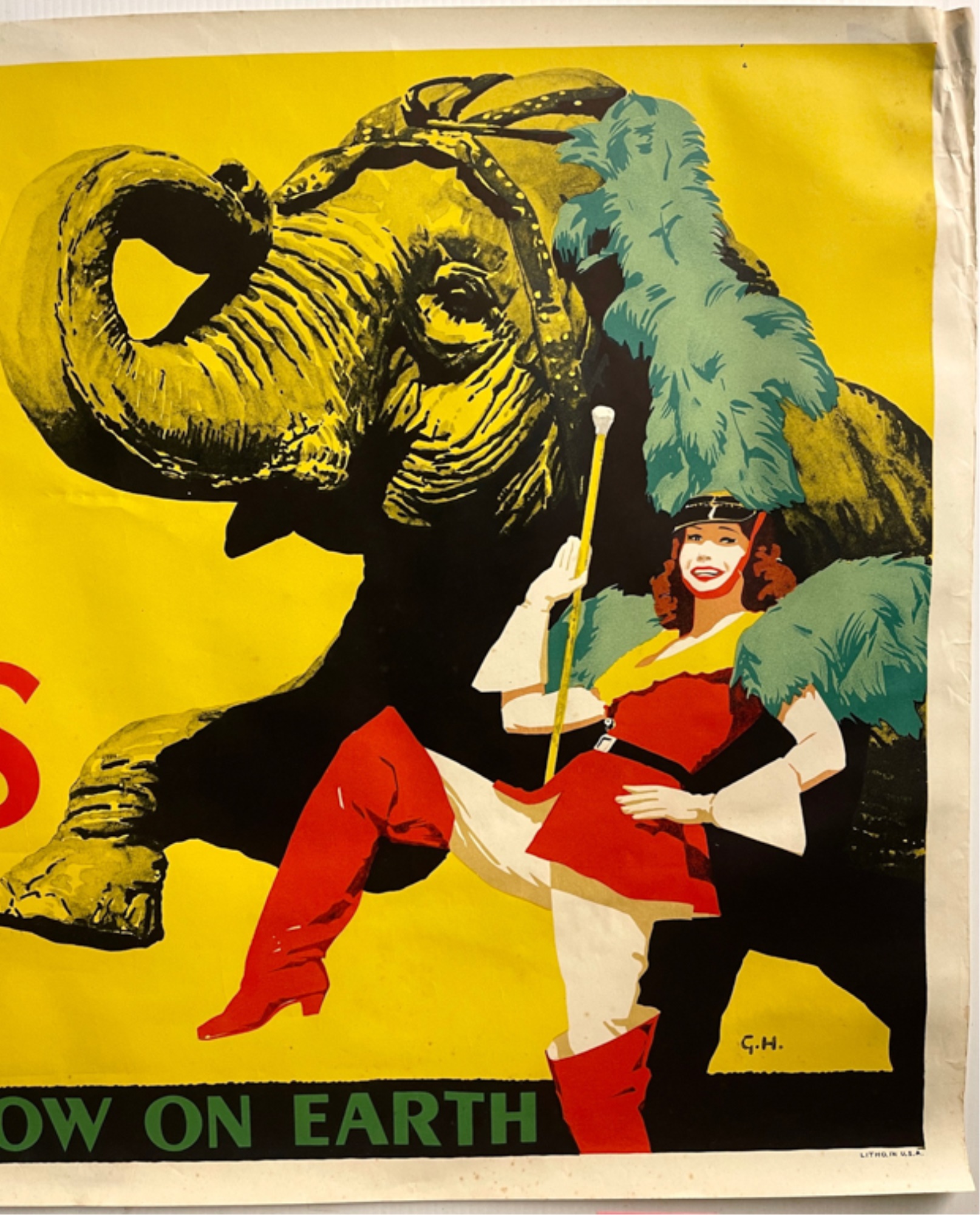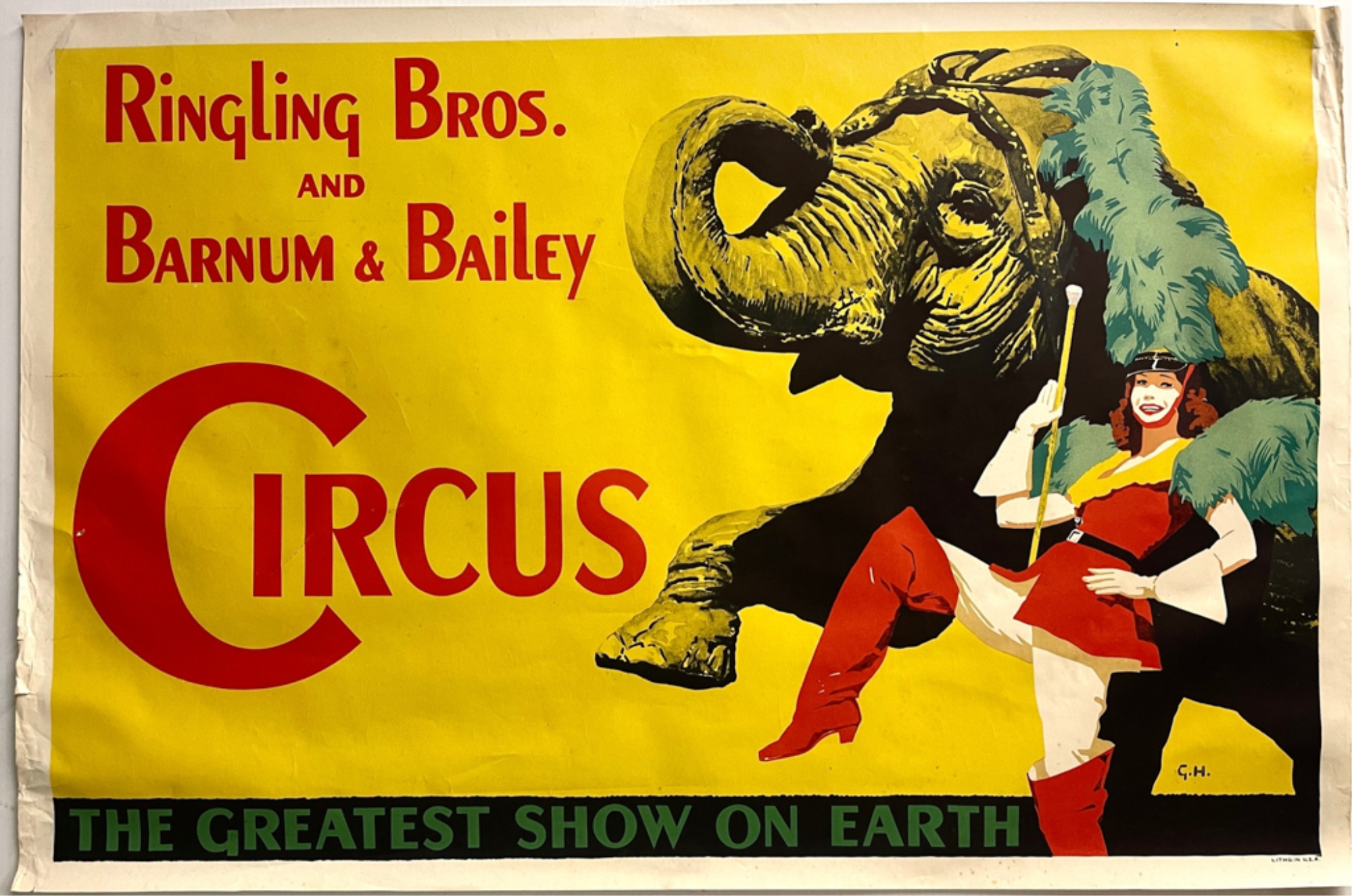 Circus poster of elephant. By George Howe. 28 x 42 inches.