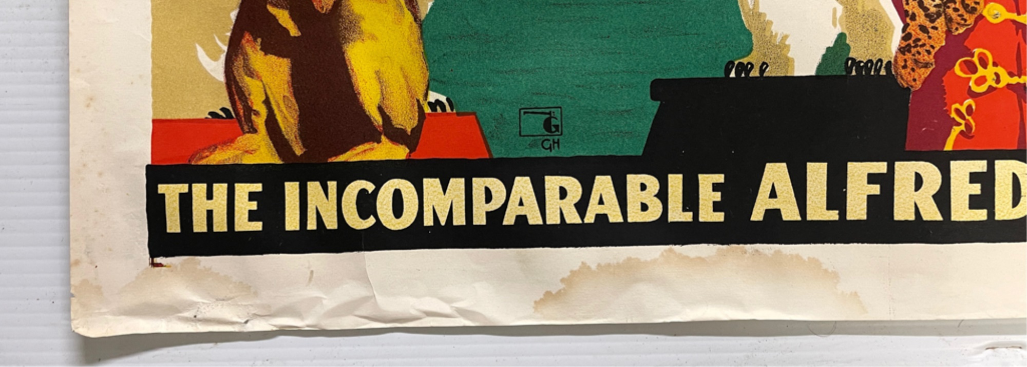 Notes: Minor wrinkles and loss with water stains in white bottom border