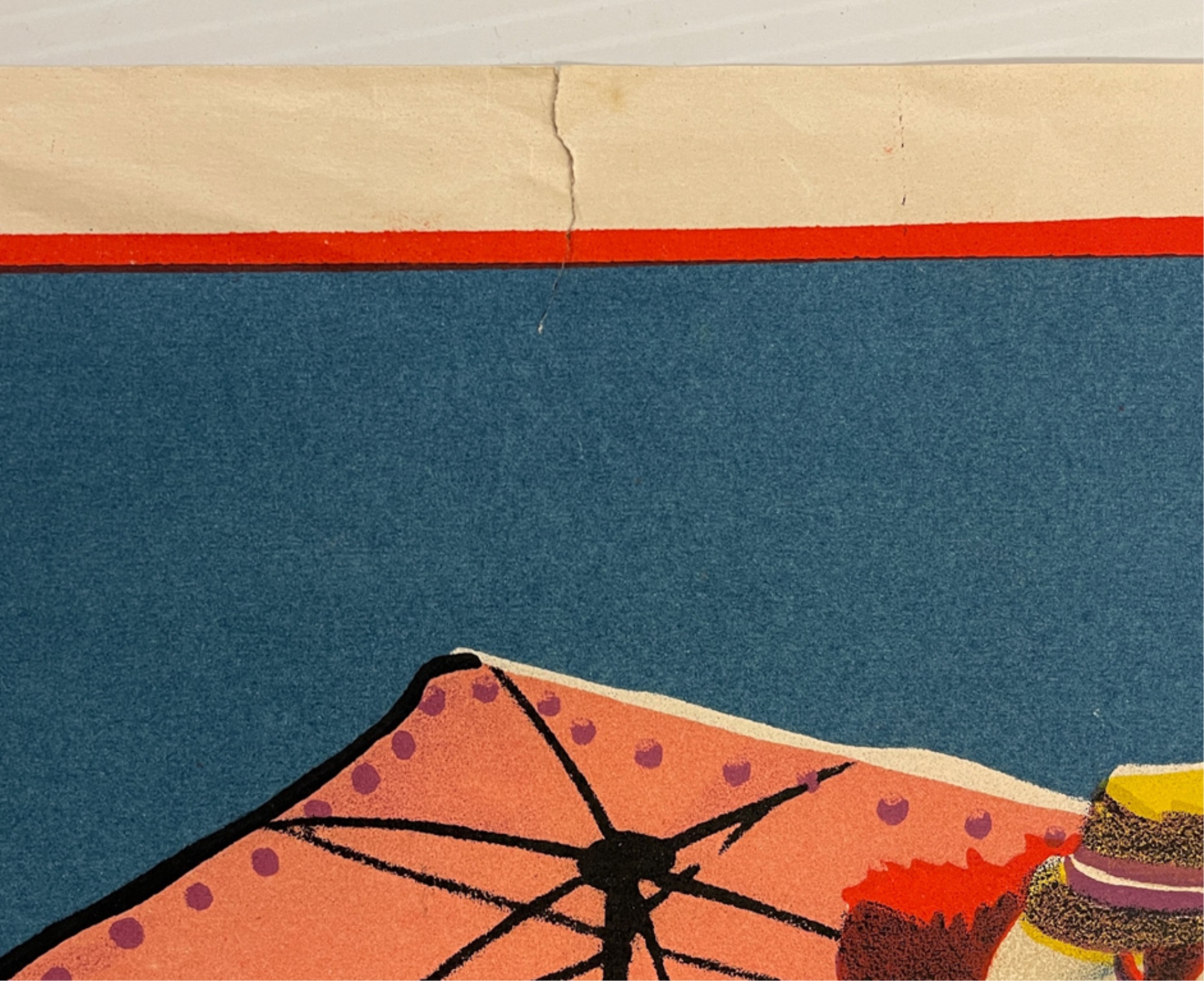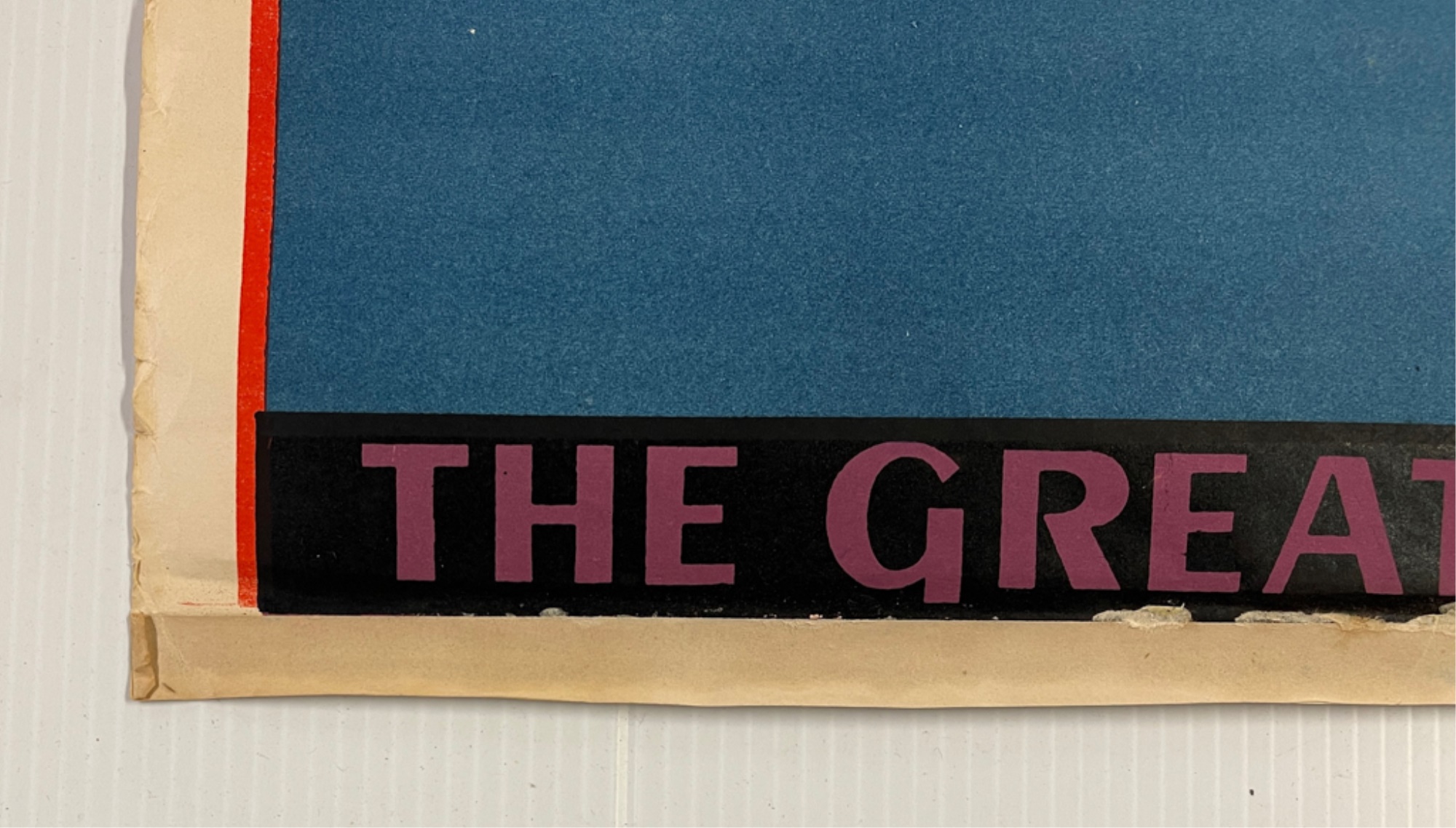 Notes: Bottom boarder has remains of paper over copyright, 1 1/2 inch tear at top, wrinkles right edge