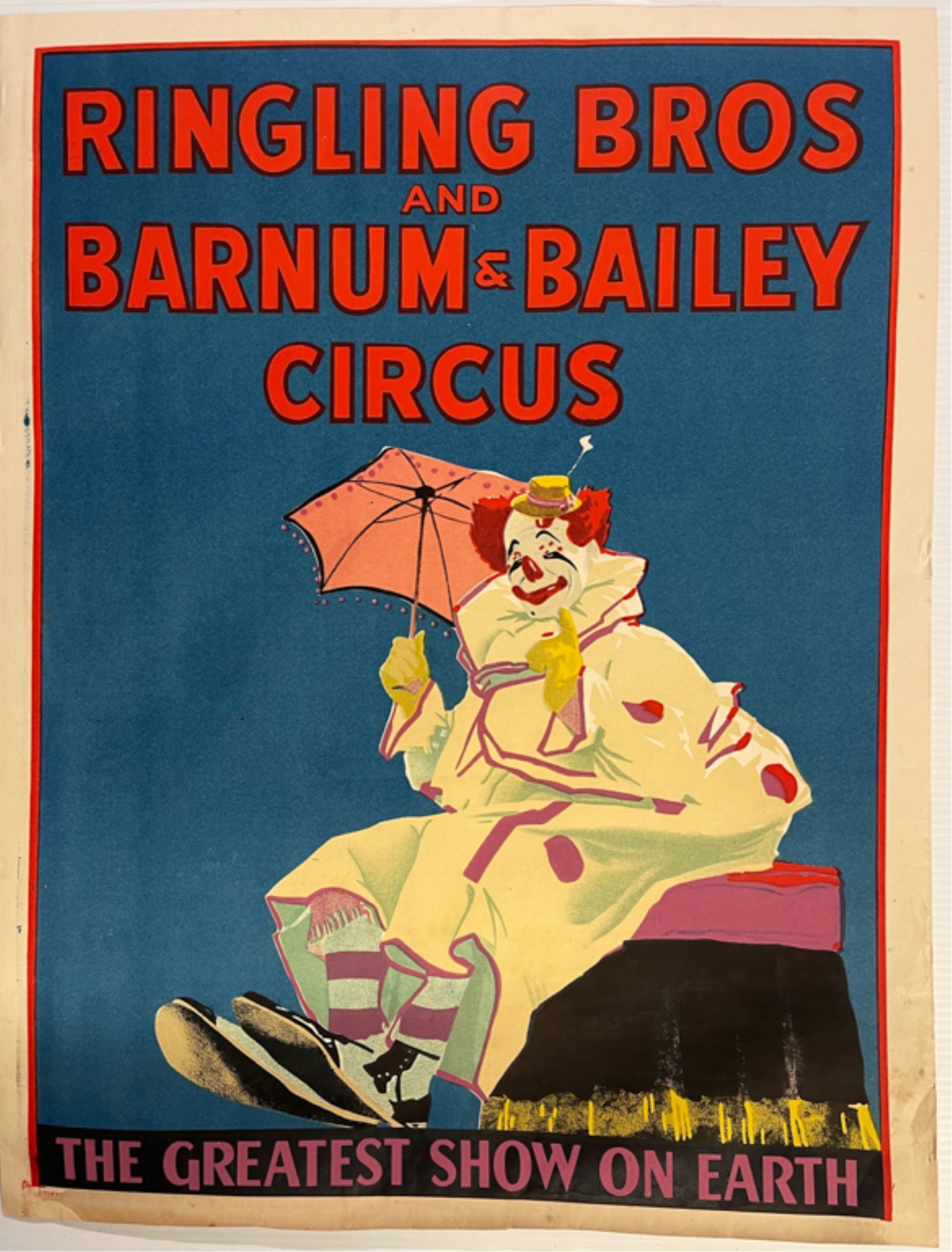 Half sheet Clown Circus Poster. 27 1/2 x 21 inches