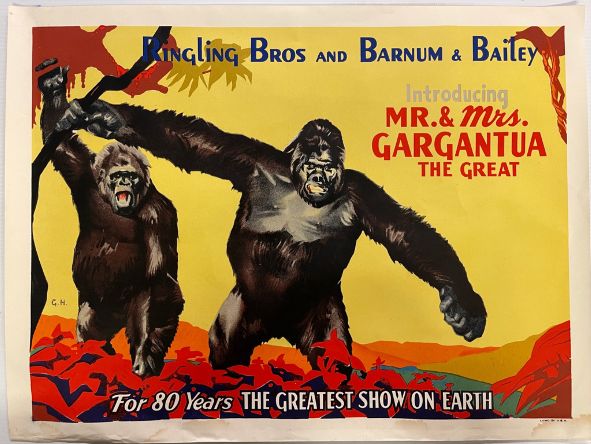 Half sheet Circus Poster Mr. and Mrs Gargantua the Great by George Howe. 21 x 28 inches