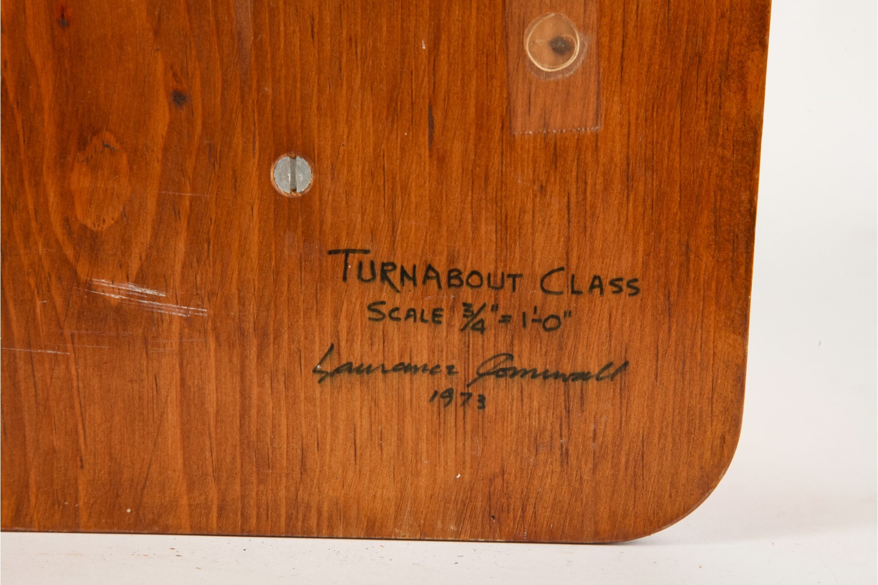 Lilliputian, signed by maker, Lawrence ______________, 1973 (see photos) 17 1/2 x 9 1/4 x 2 1/2.
