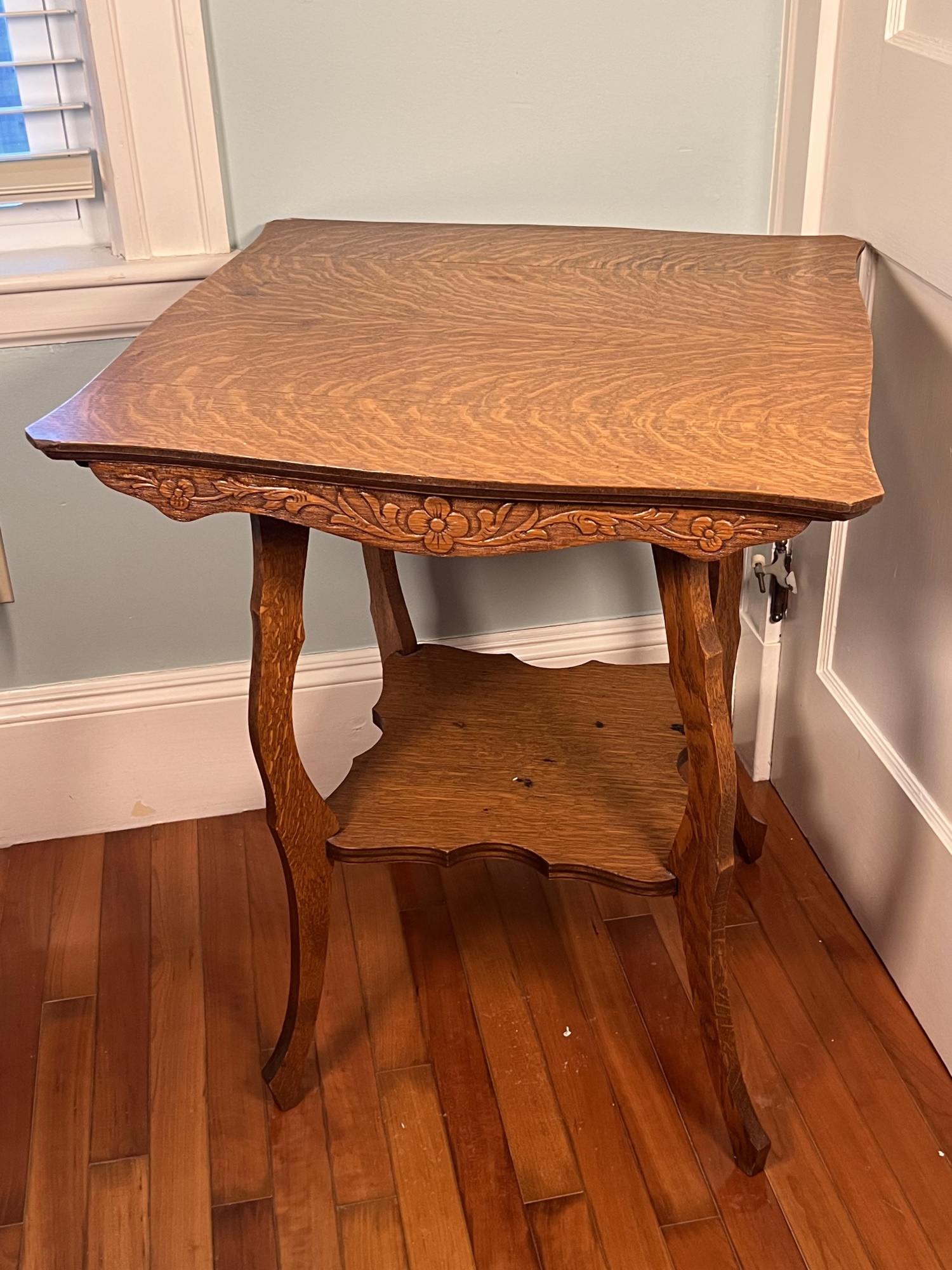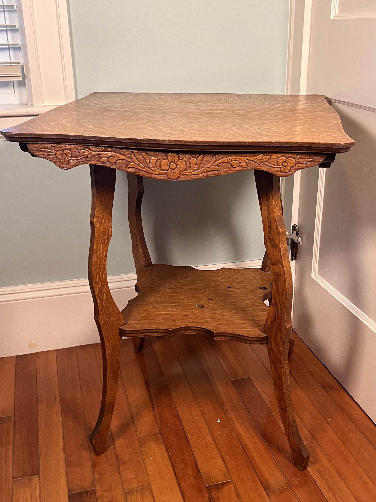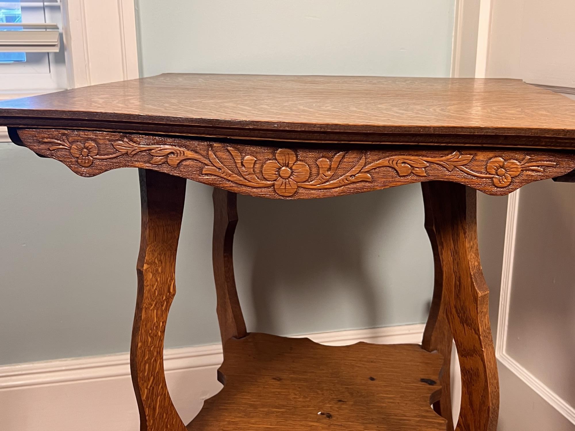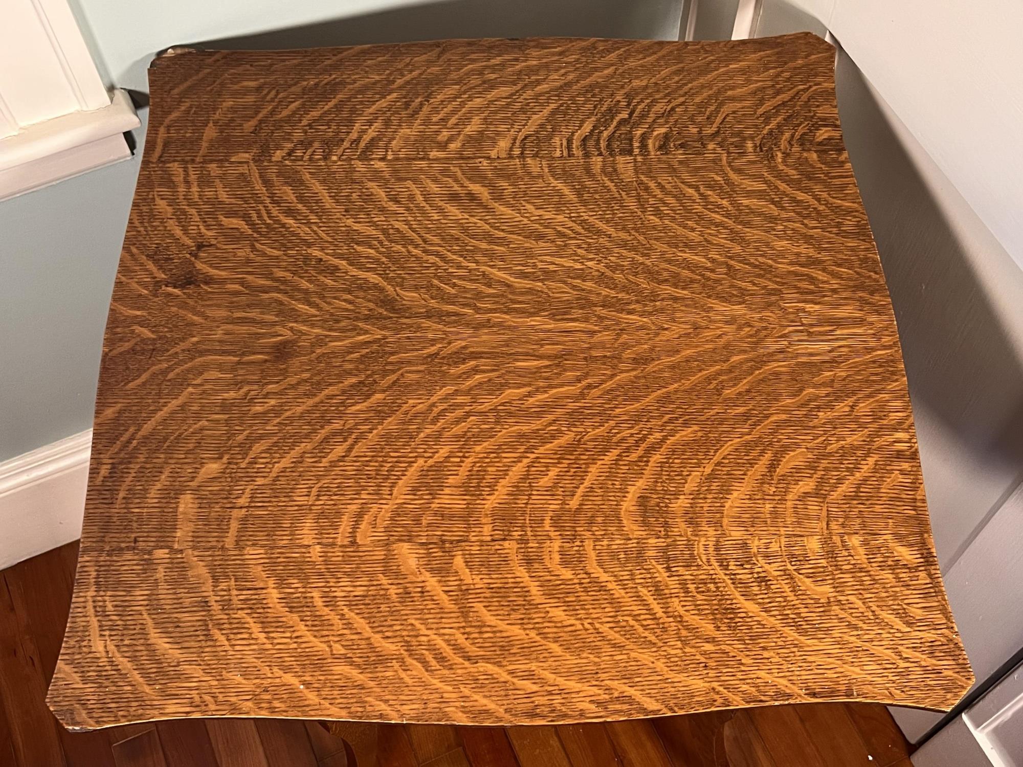 29 X 23 1/2 X 23 1/2 inches Condition: Wear to surface, losses, cracking to veneer