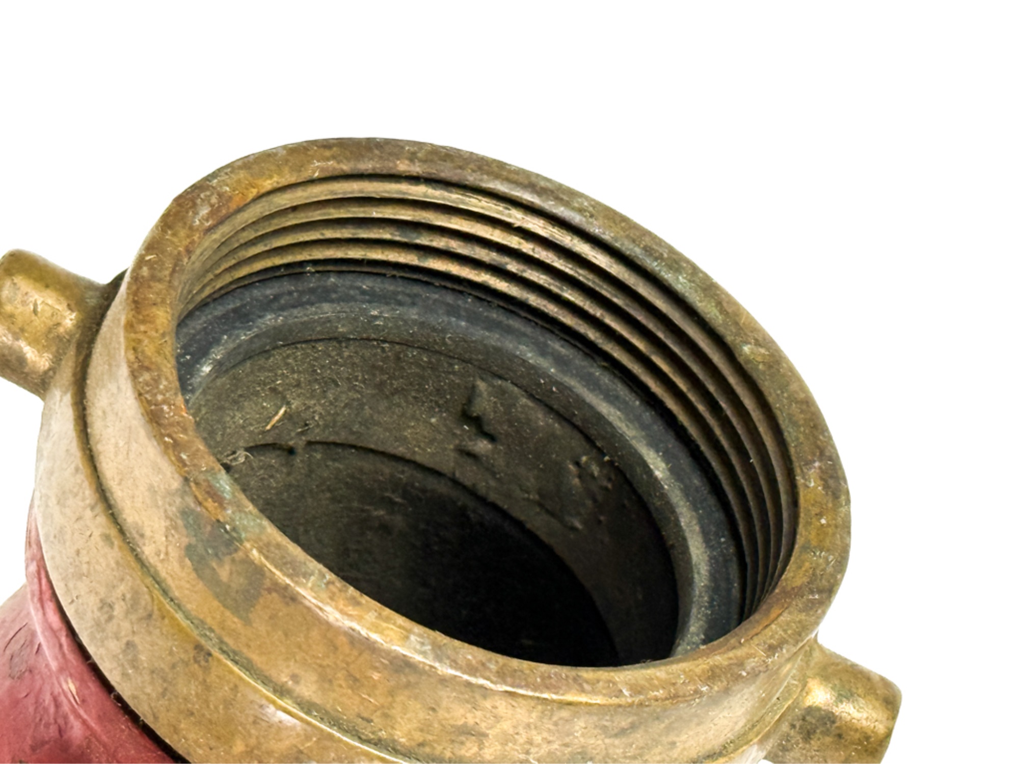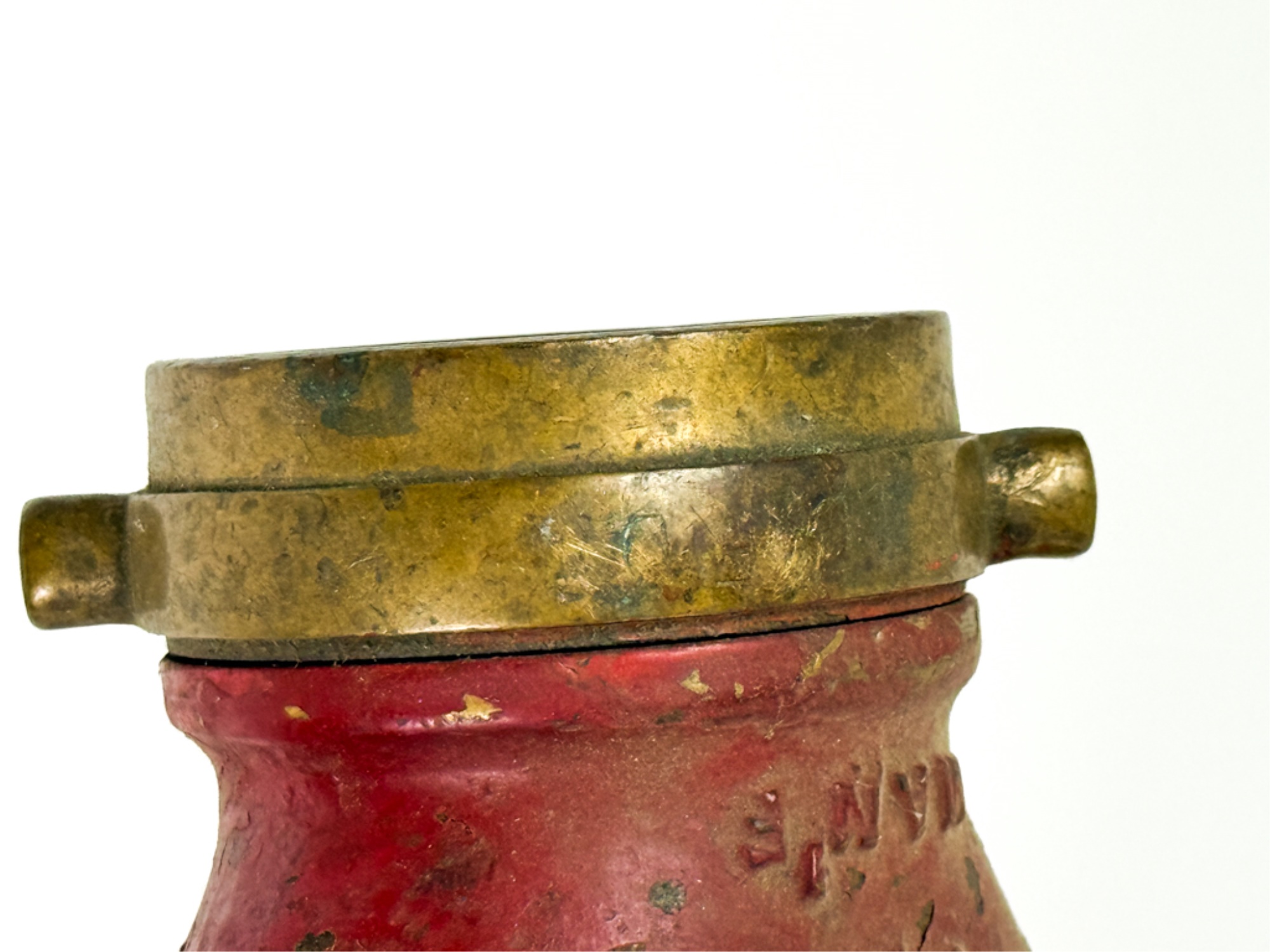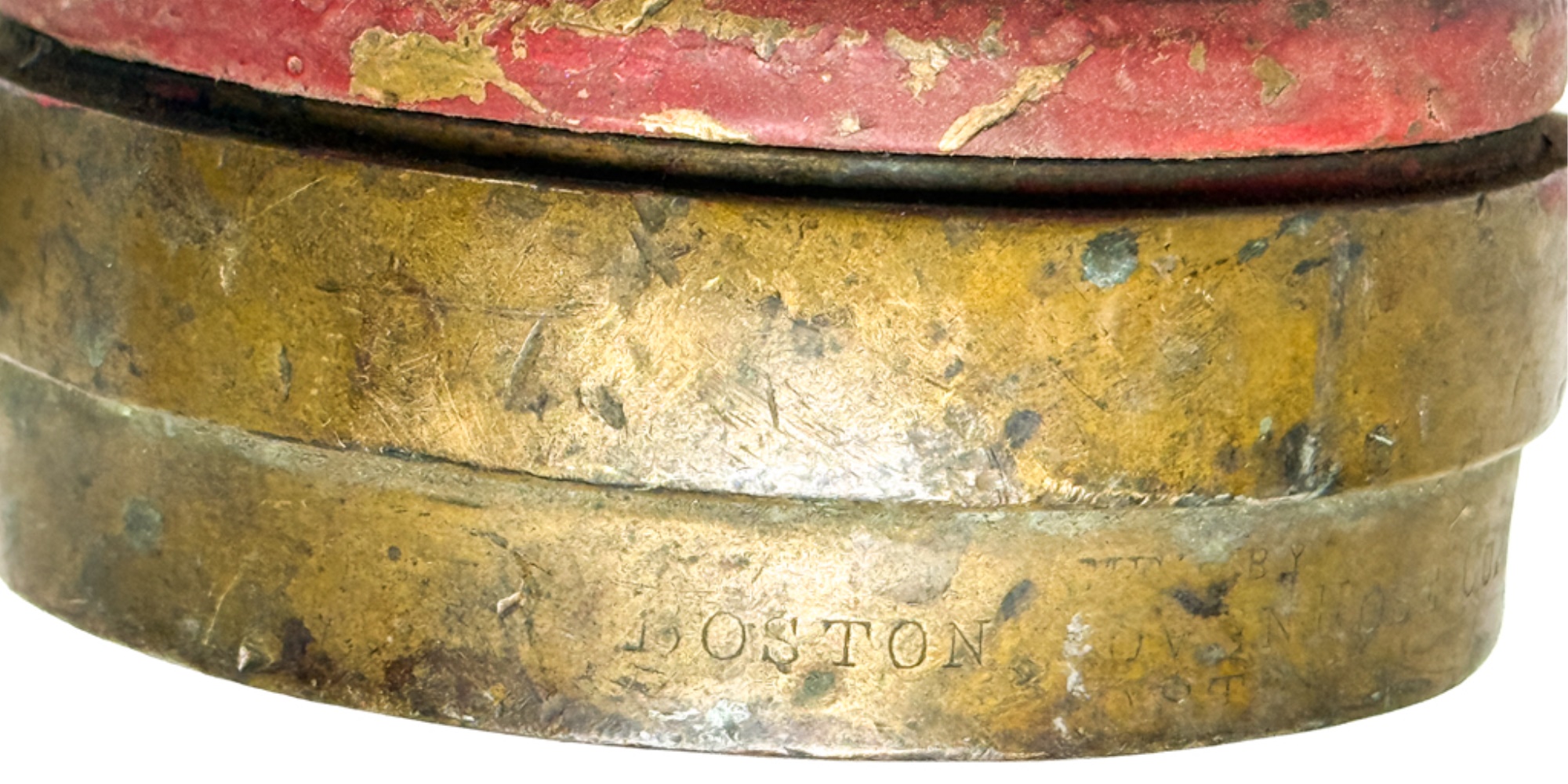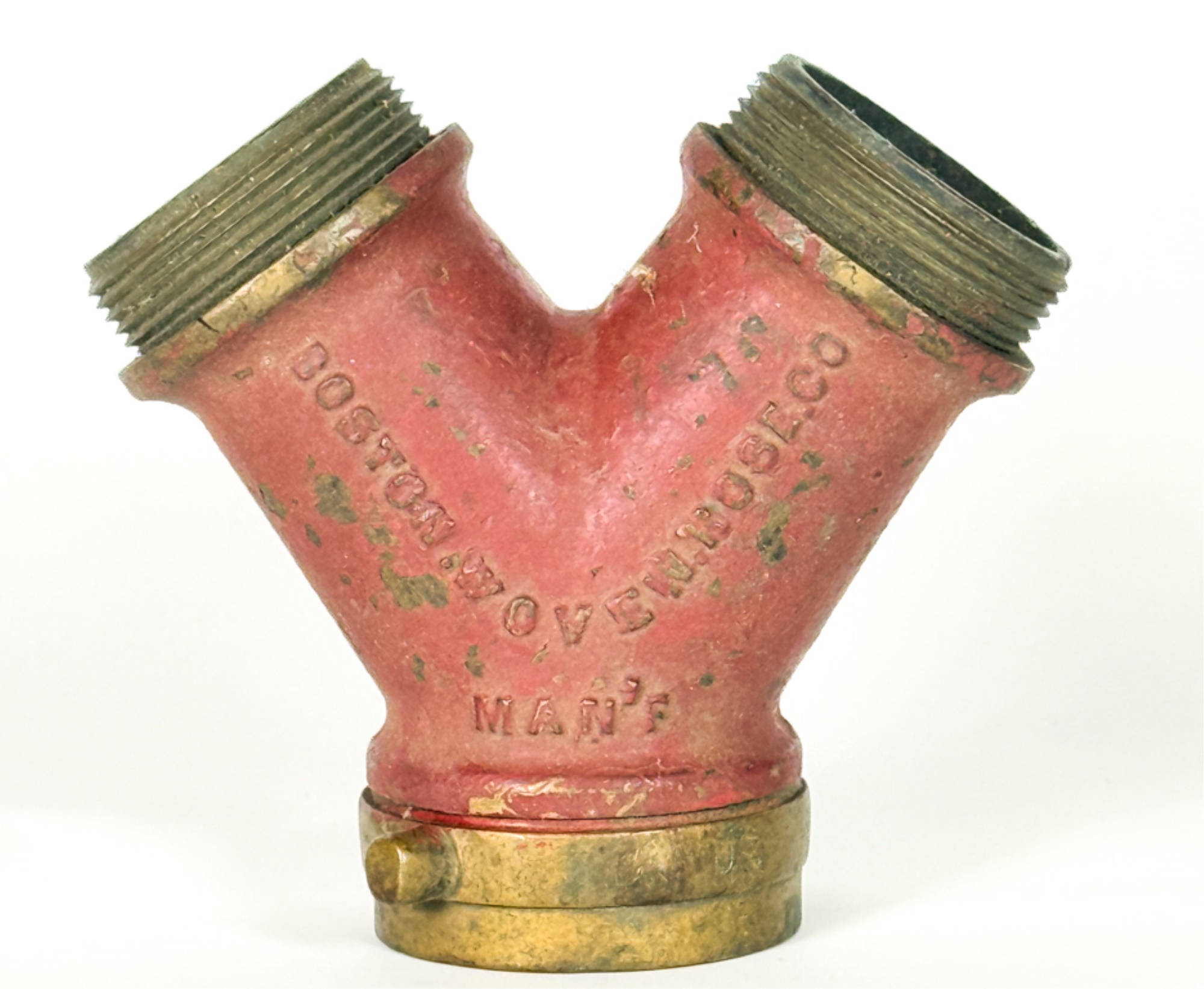 With Boston Fire Department coupling. 7 inches. Condition: Expected wear from use. Temp No 4019