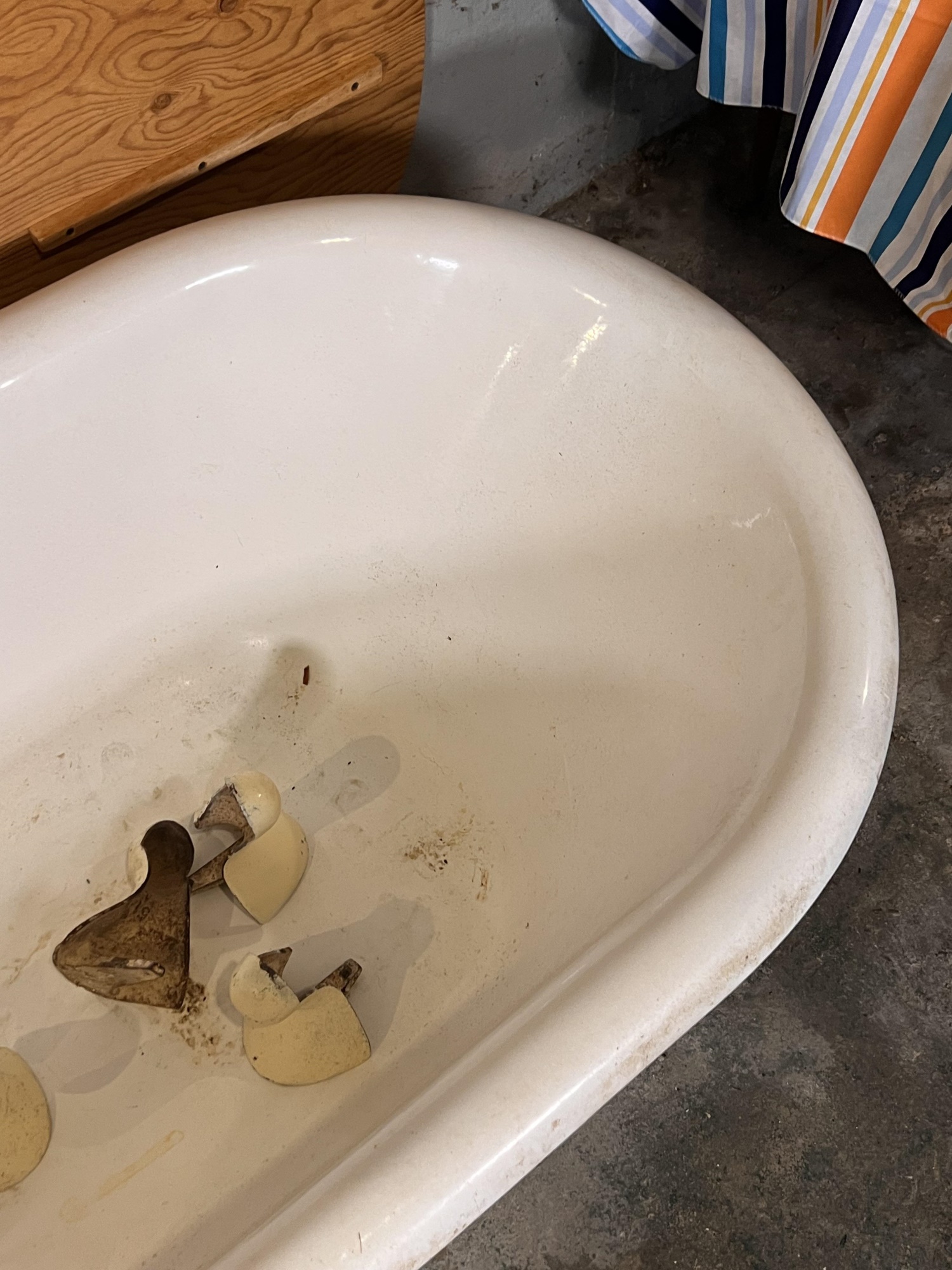 18 (without feet) x 60 x 30 inches. Feet are 5 1/2 inches Condition: Wear consistent with age and use, see photos
