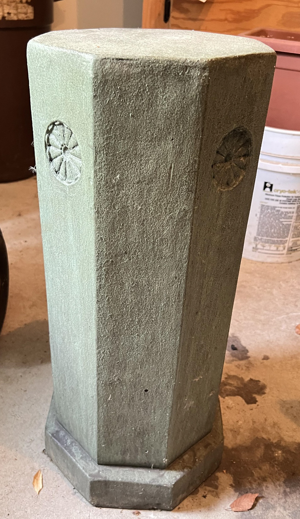 Octagonal stand cast with an embossed floret. 24 x 10 inches Condition: Good, solid and extremely heavy