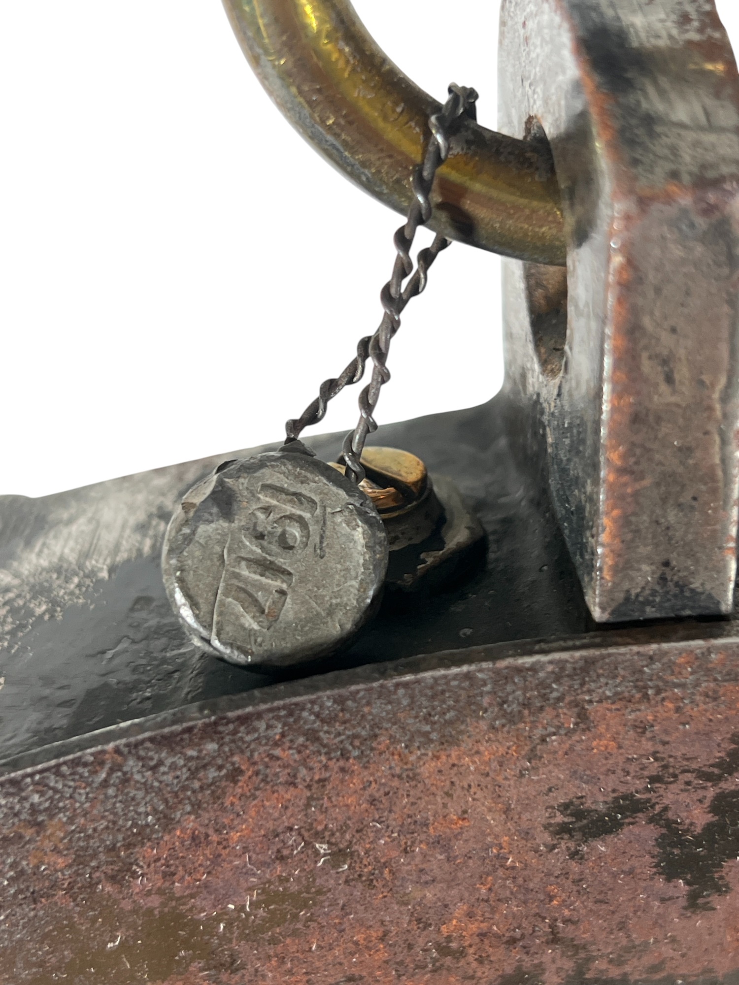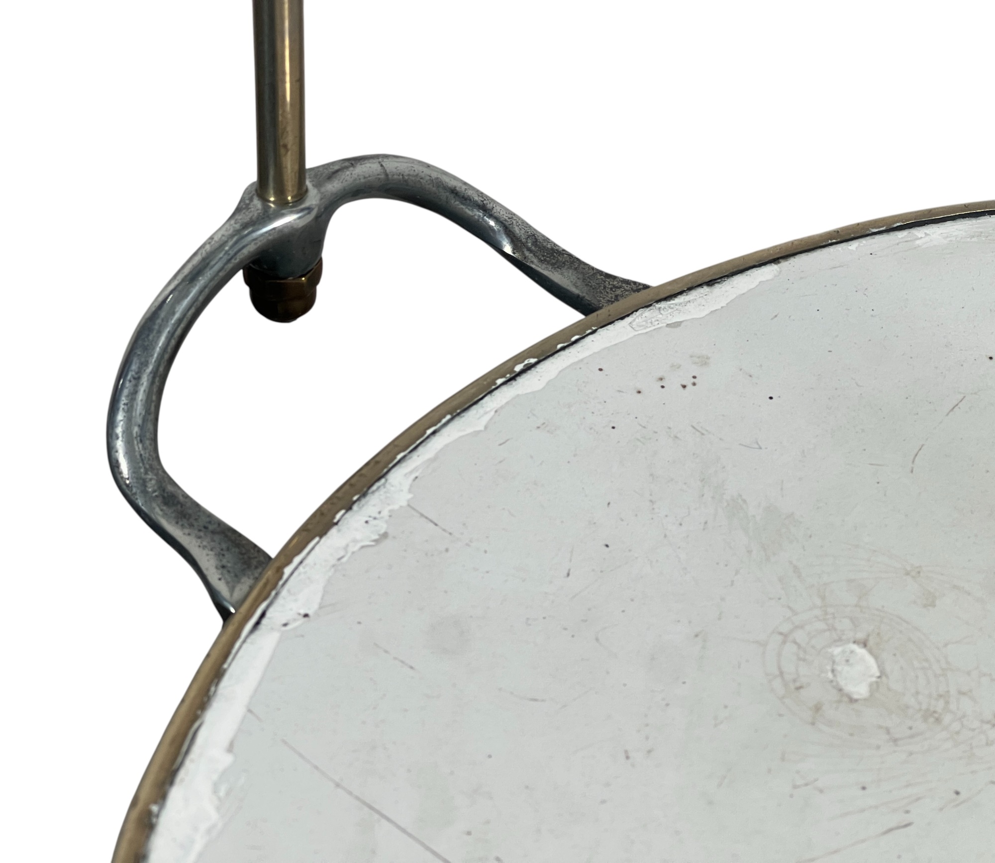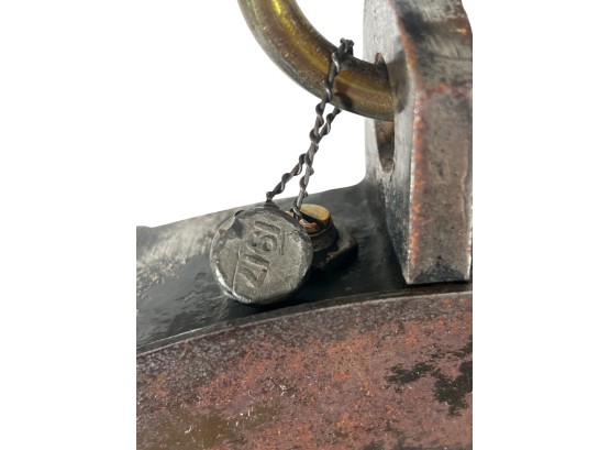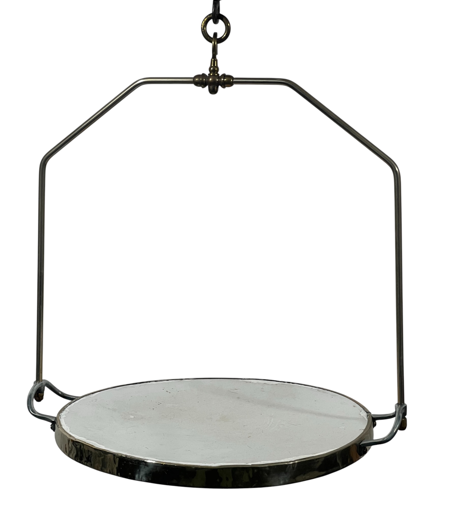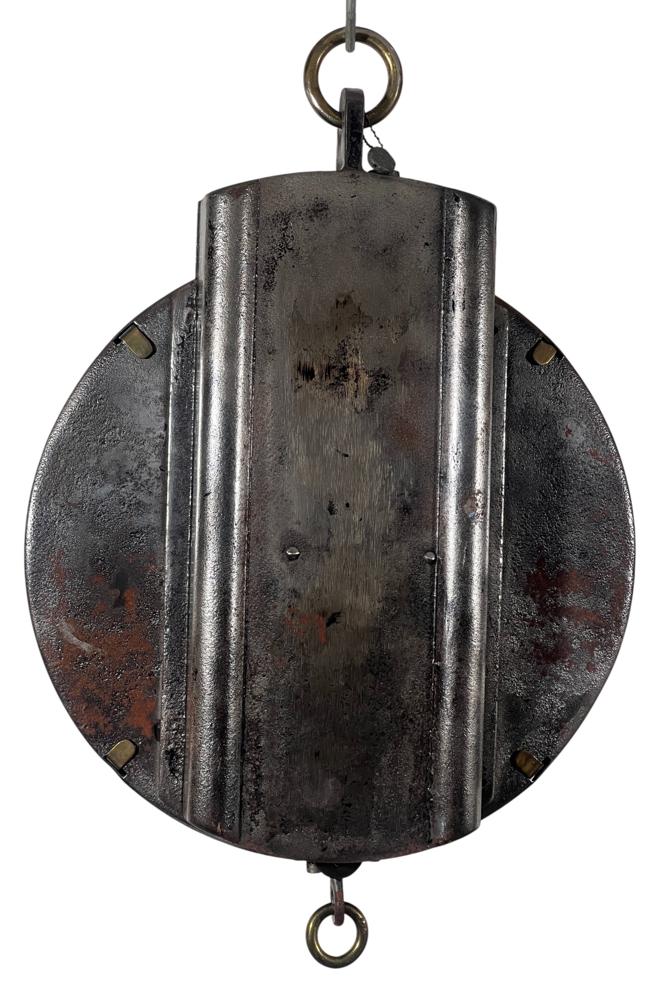 Chadwick & Carr Co. (Boston, MA) brass & iron produce spring scale with produce tray. 11 1/2 inches. Condition: Wear/fading to face. Please see photos. Temp No 8824