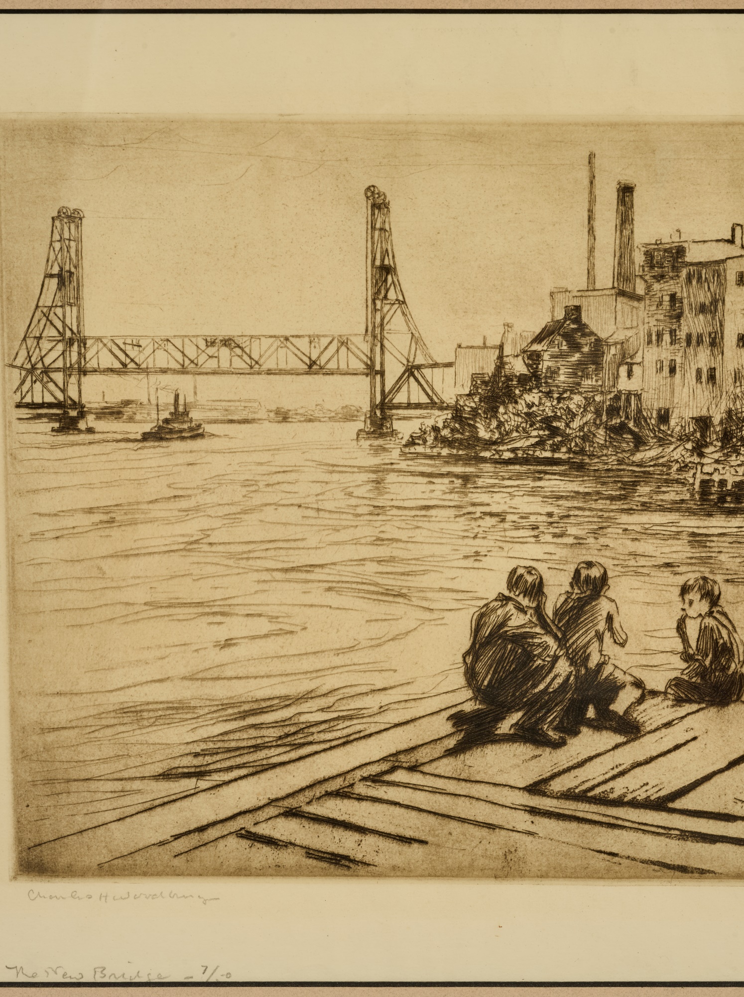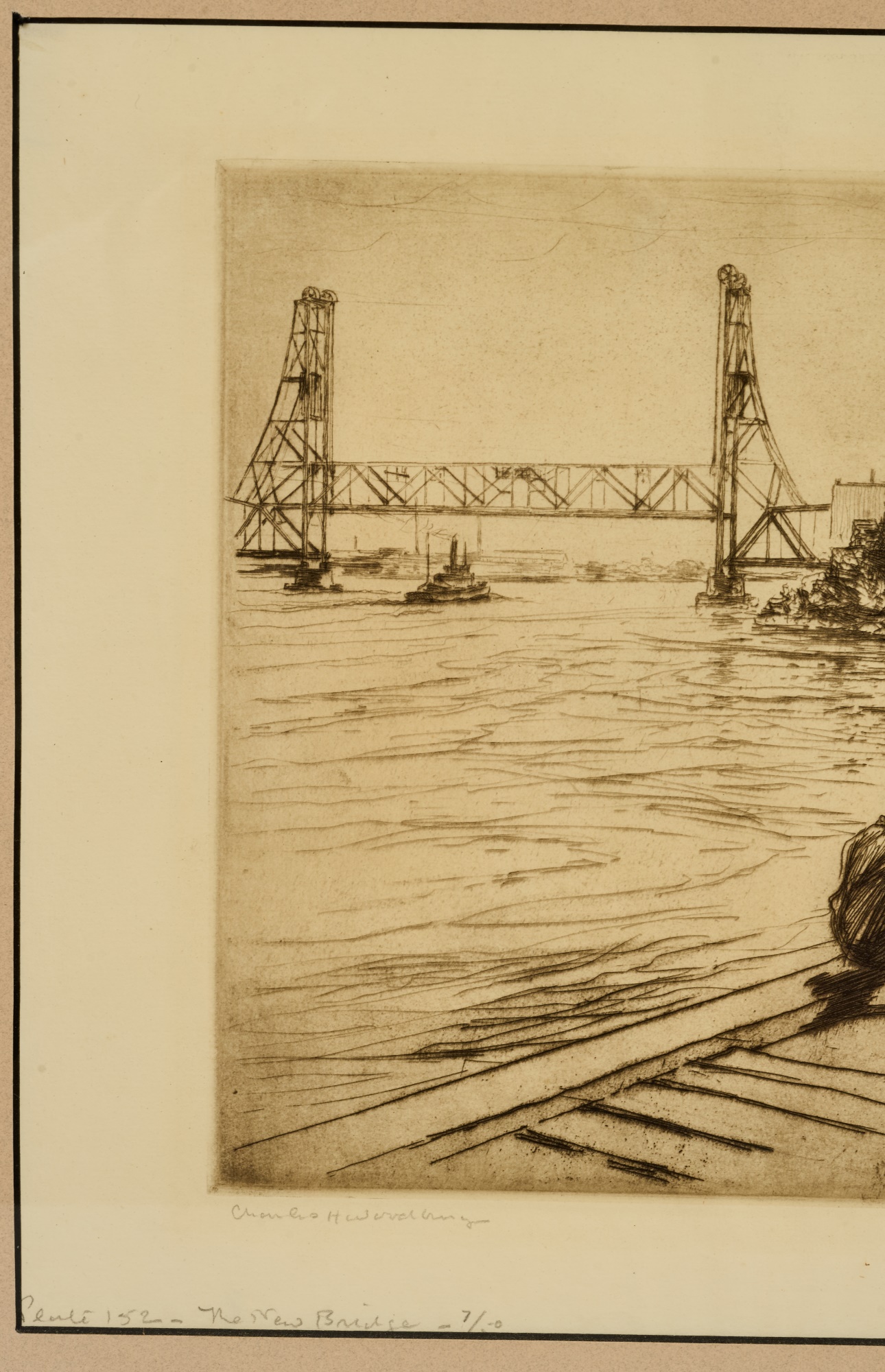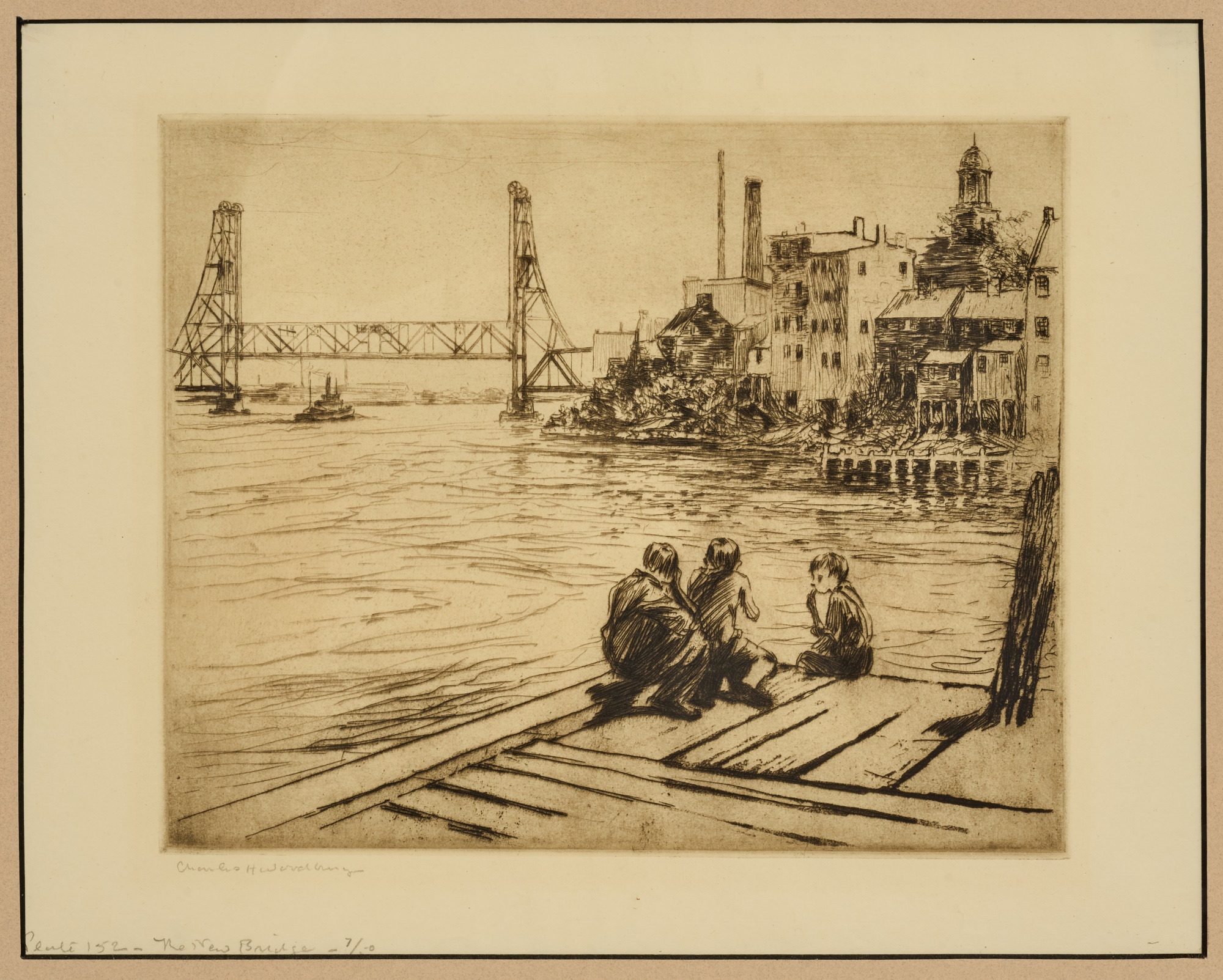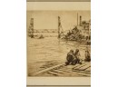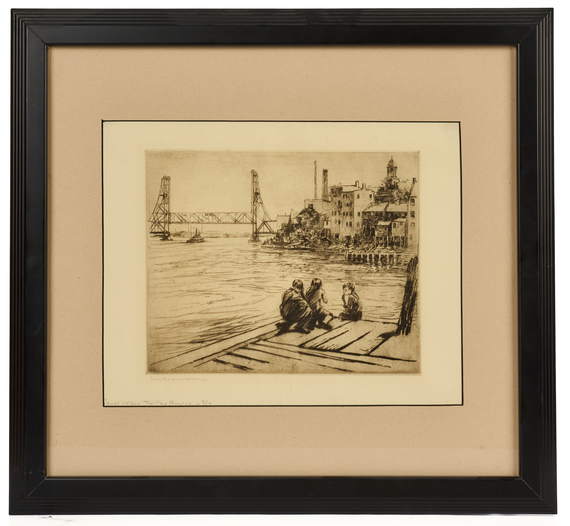 The New Bridge, Portsmouth, NH / etching 8.75 x 10.75 inches. framed 19 x 21 inches (overall) Condition: Good, edition 7/150 identified below signature