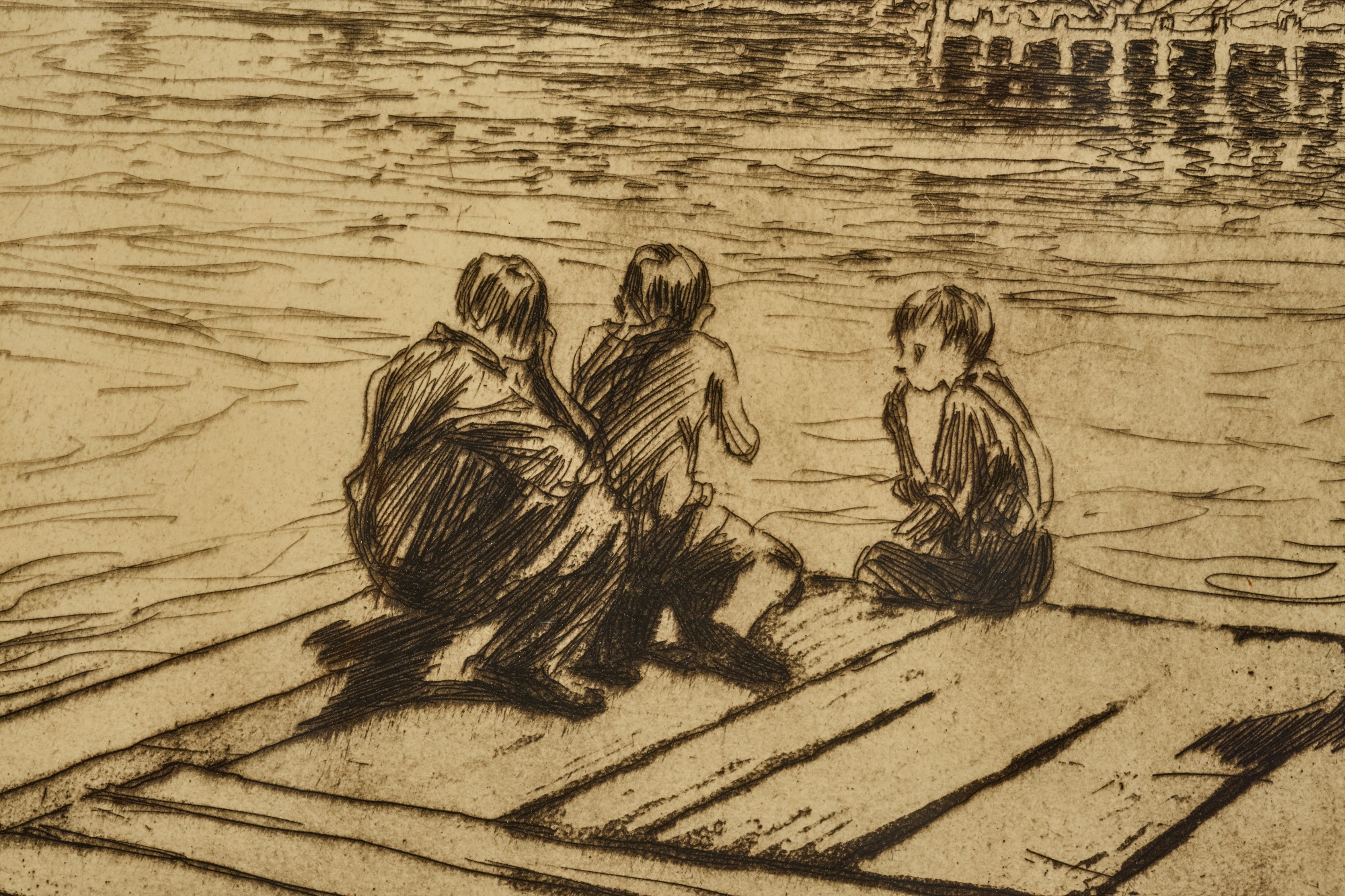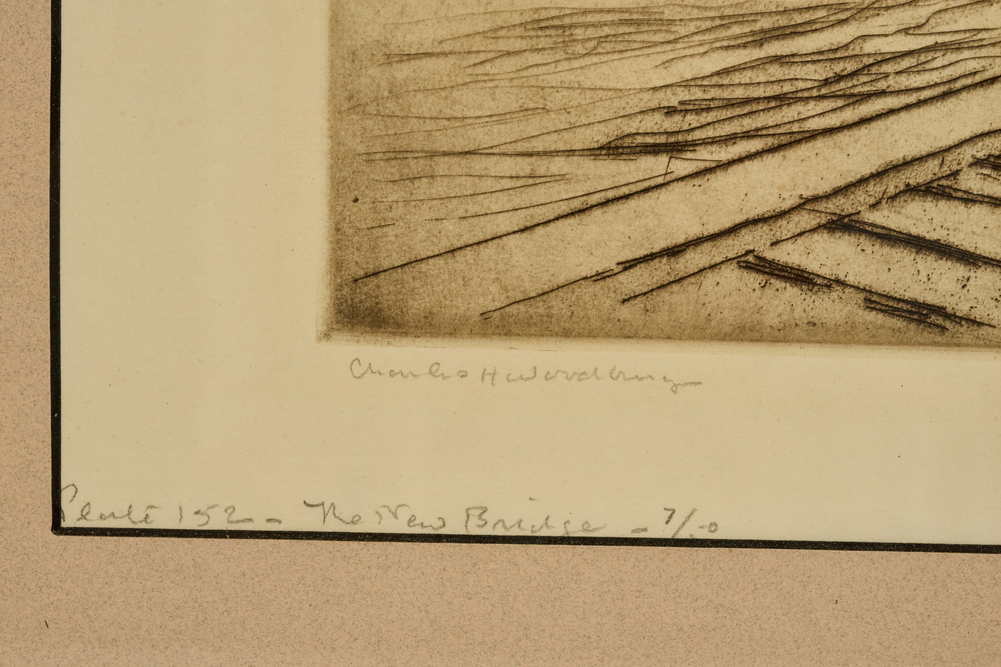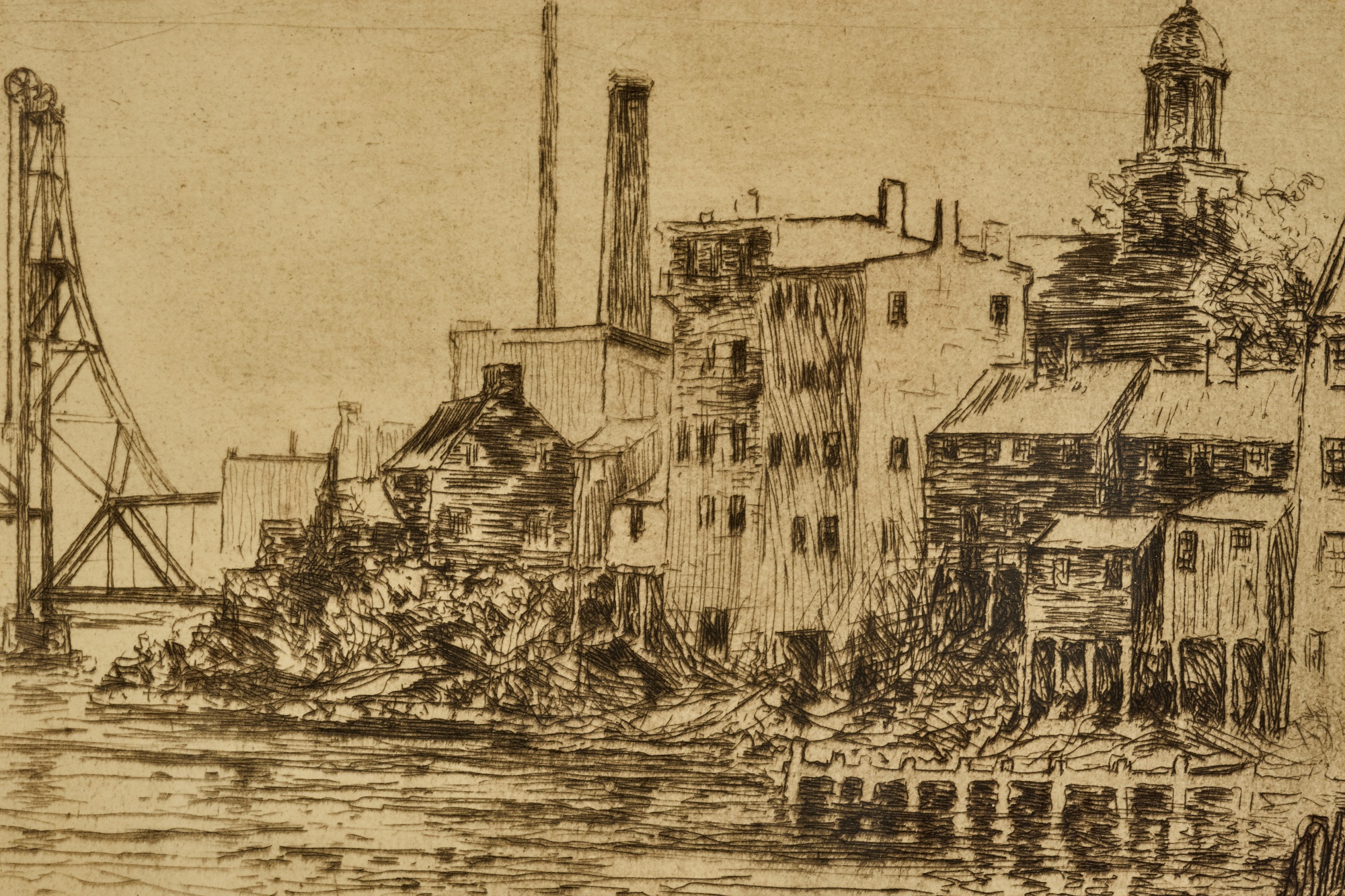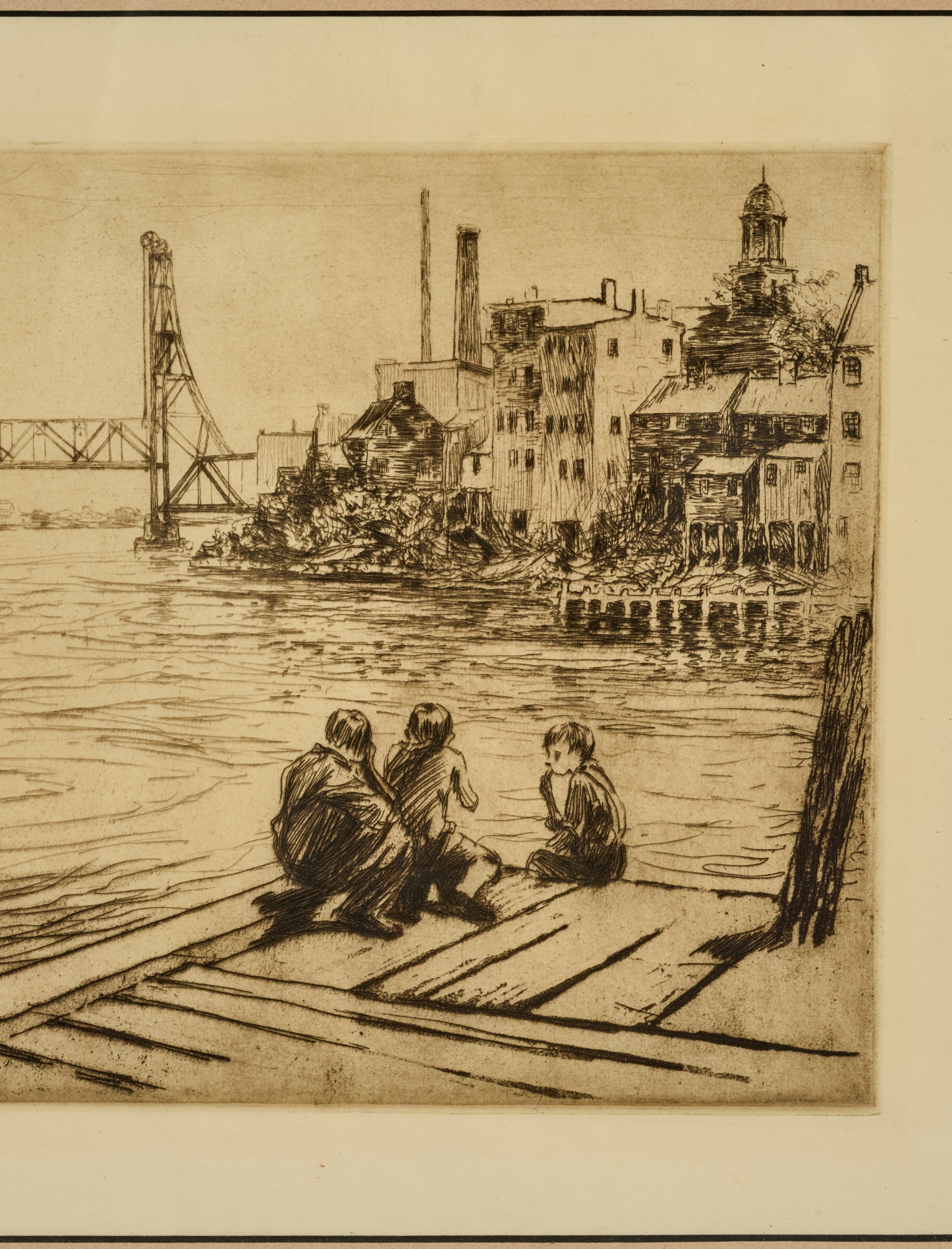 The New Bridge, Portsmouth, NH / etching 8.75 x 10.75 inches. framed 19 x 21 inches (overall) Condition: Good, edition 7/150 identified below signature