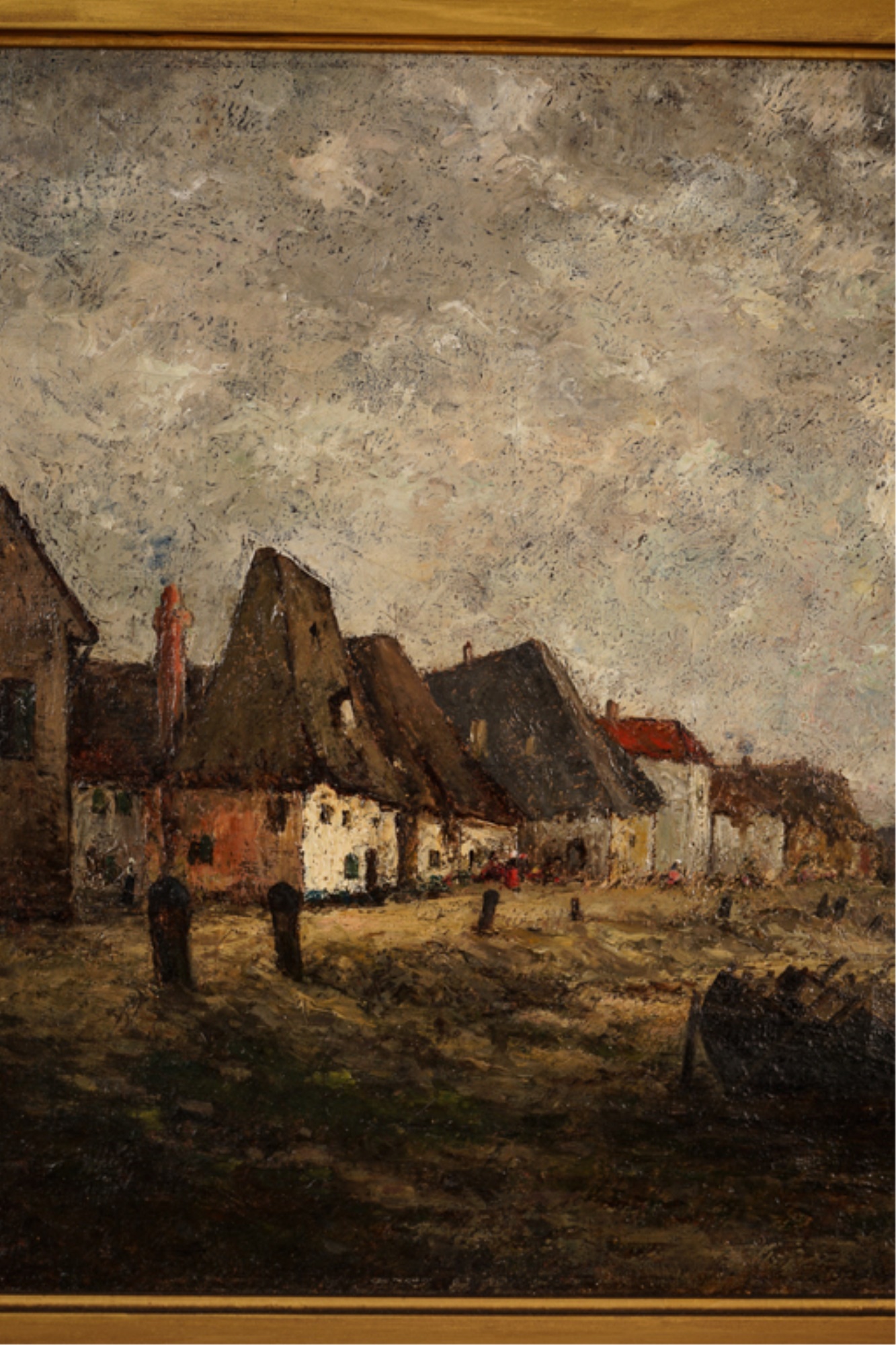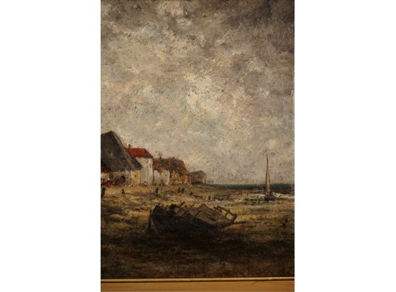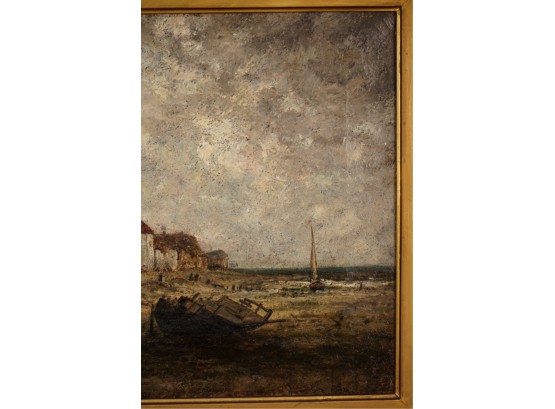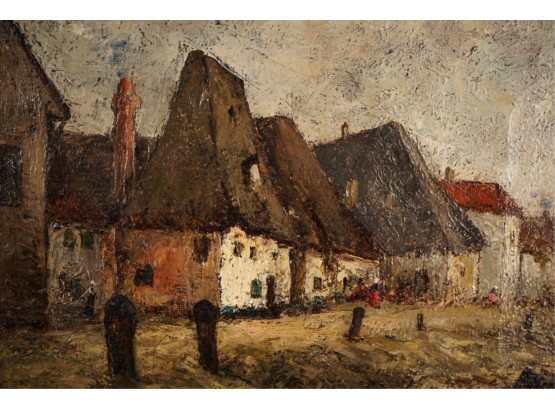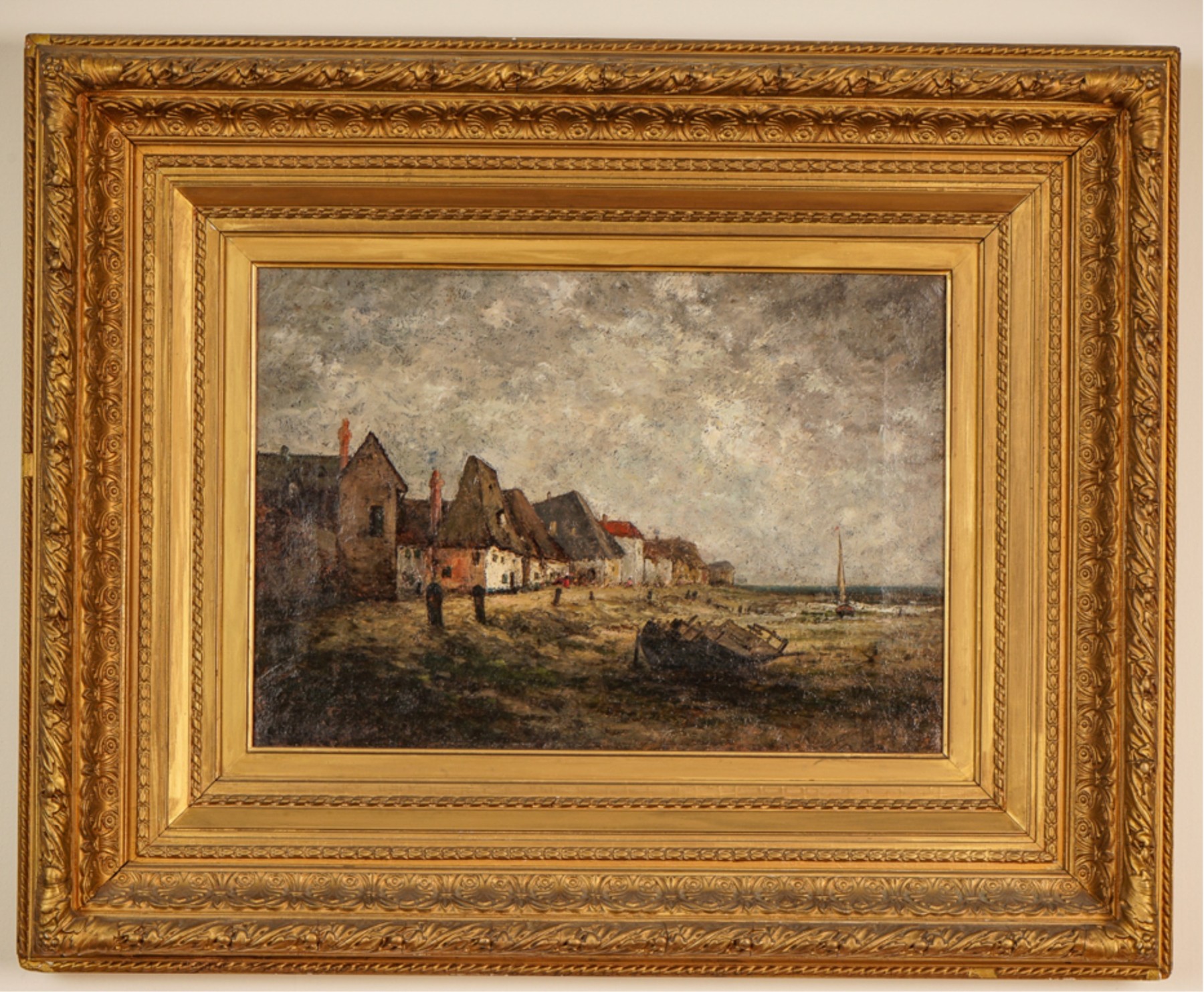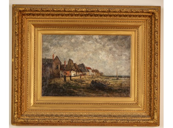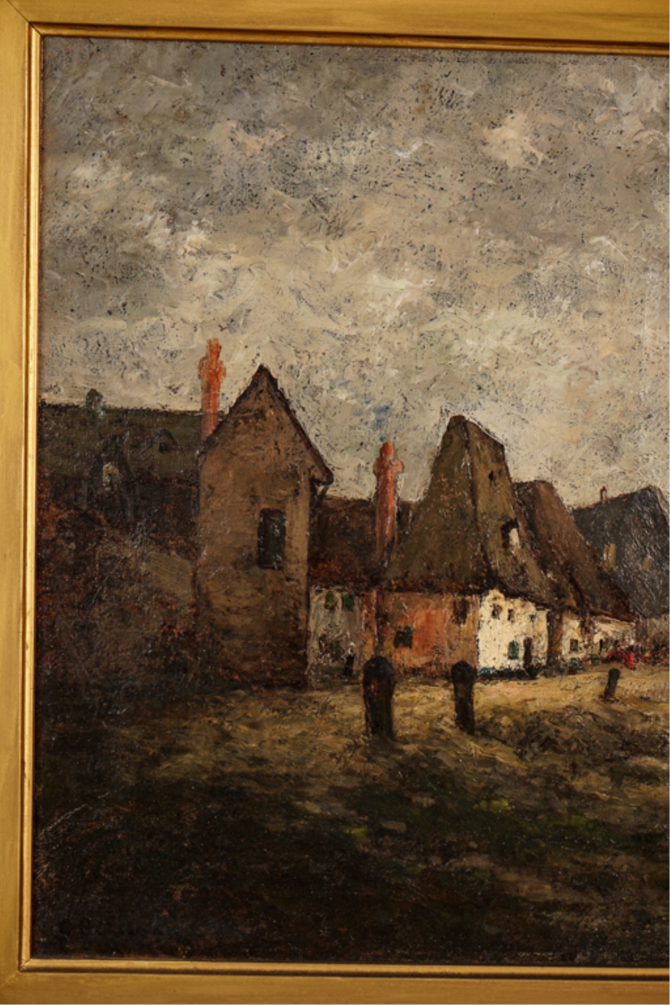 Housed in gilt frame. Oil on canvas. Signed bottom left. 23 1/2 x 29 1/2 inches.