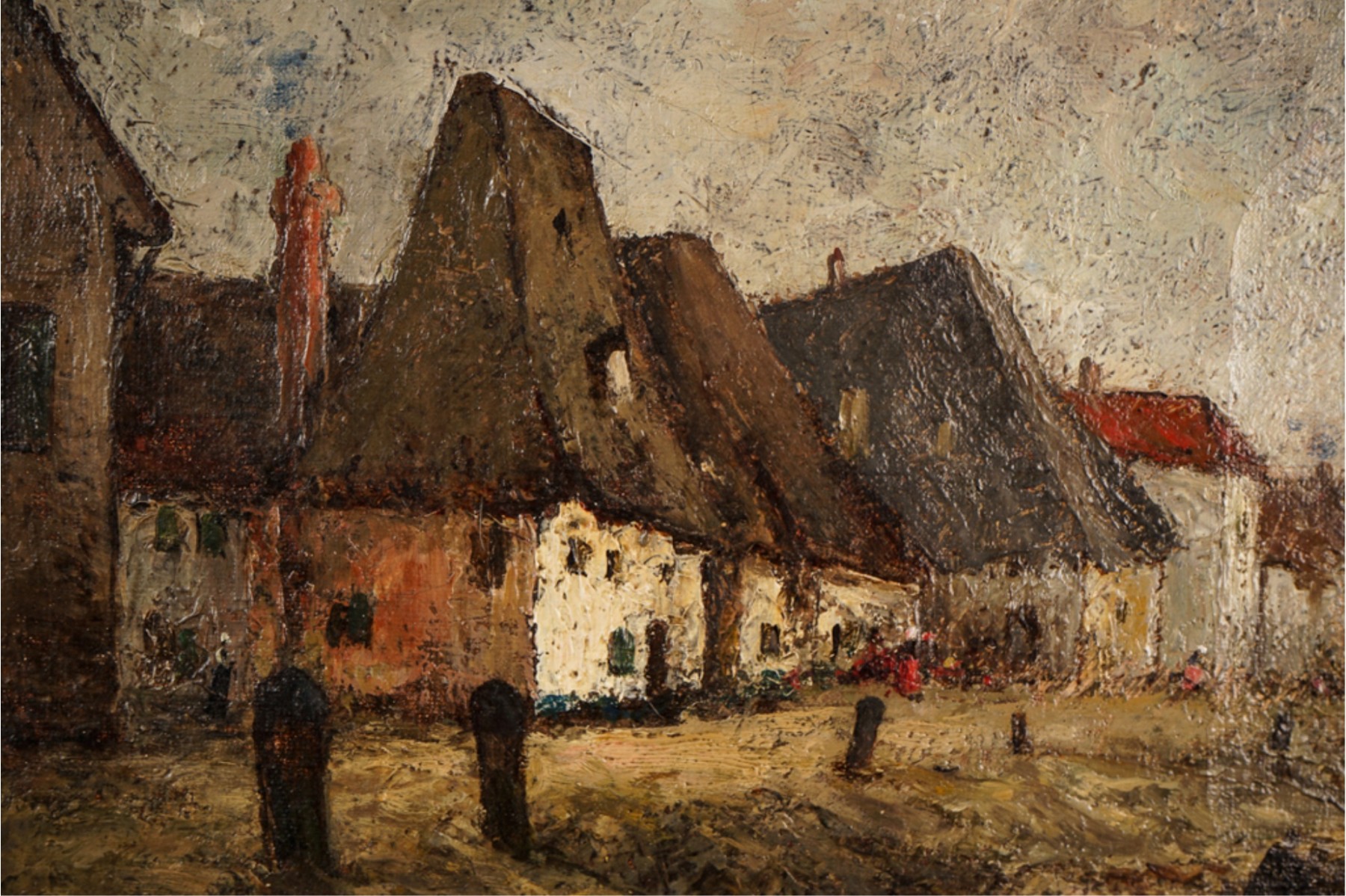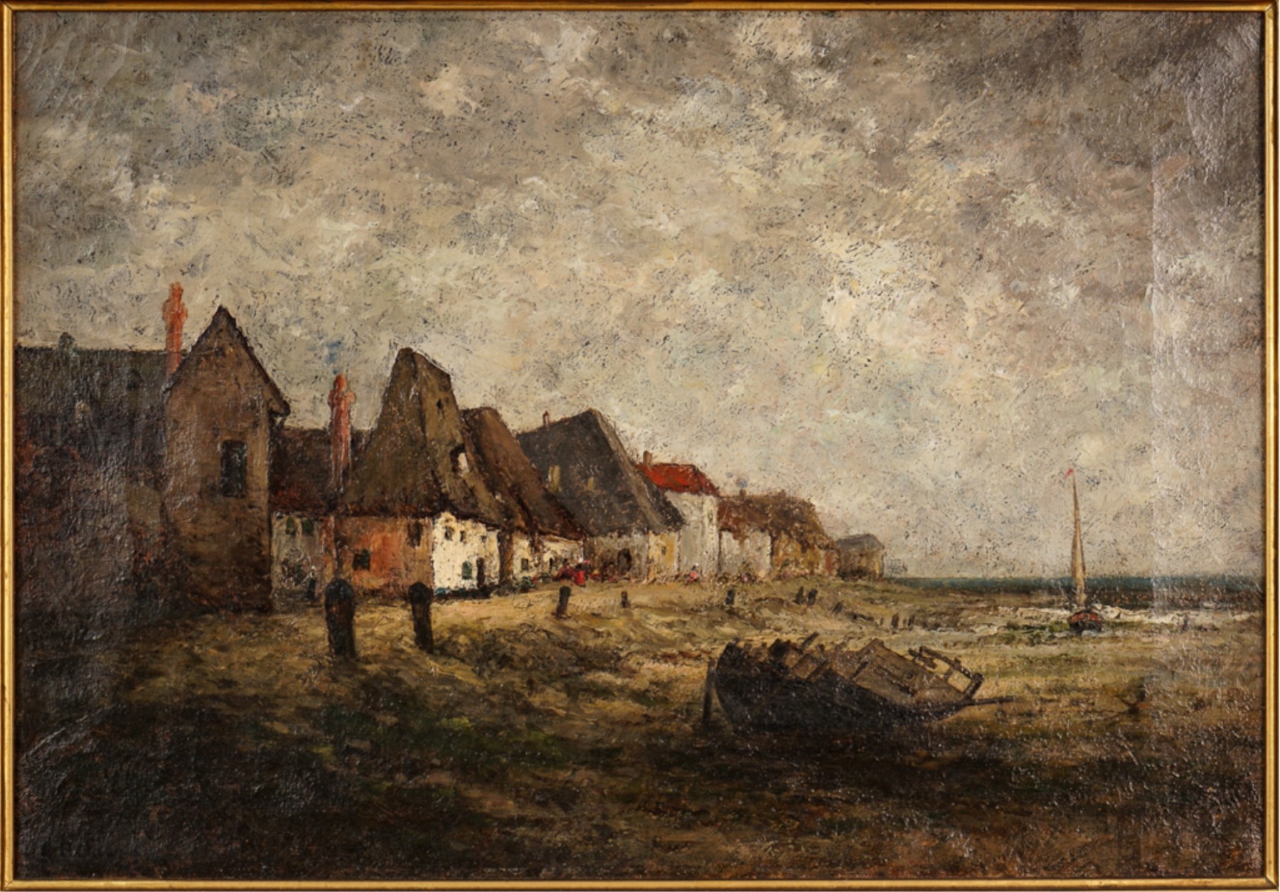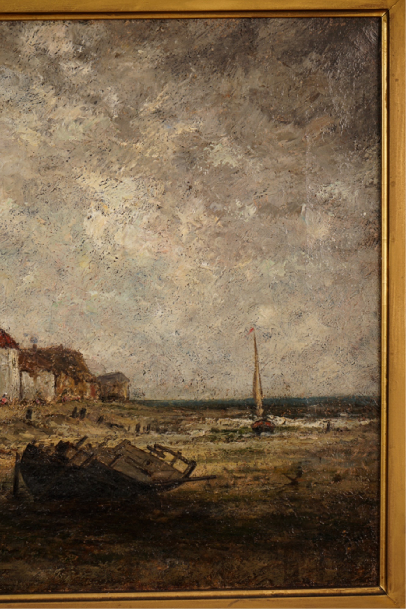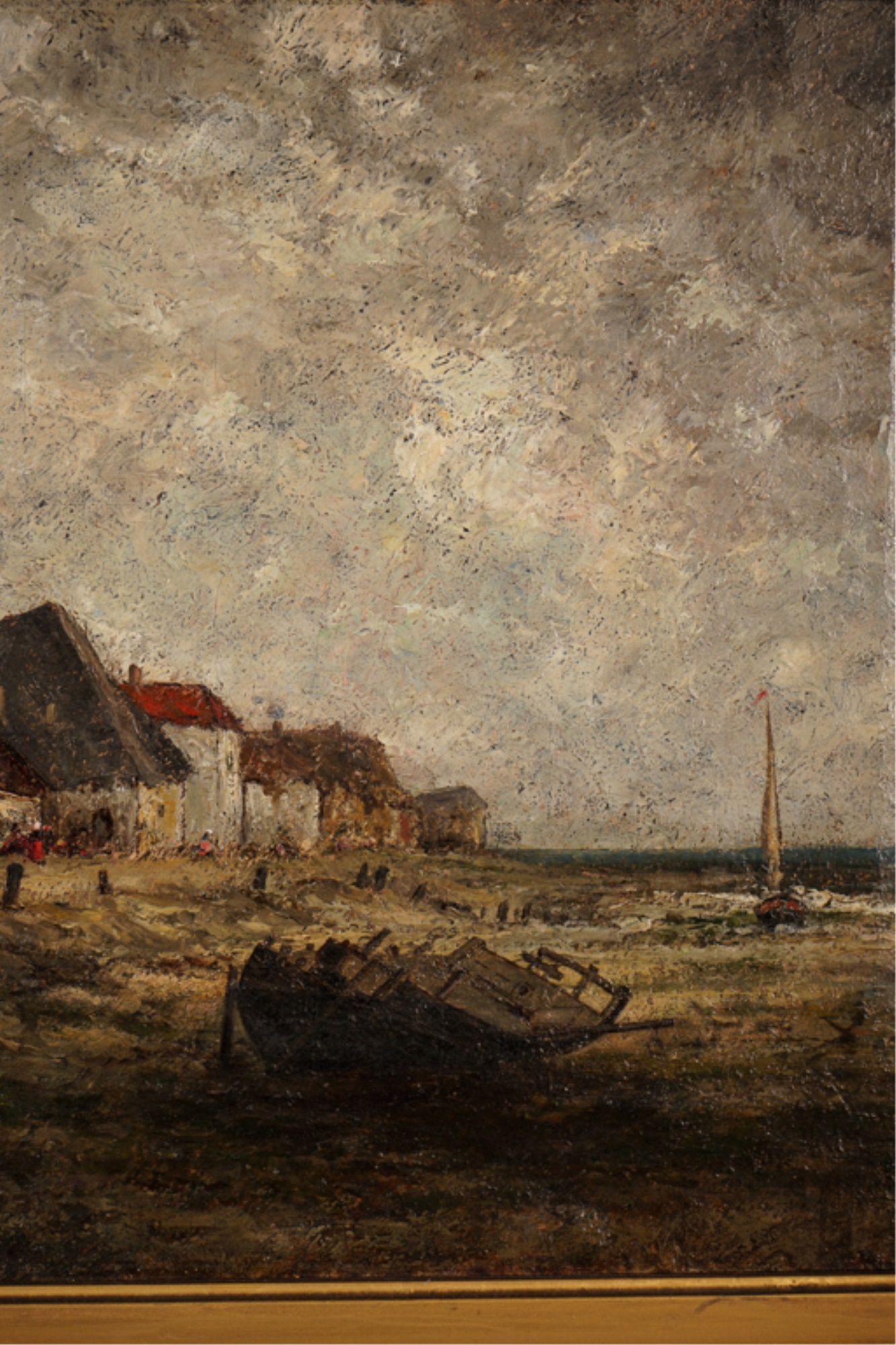 Housed in gilt frame. Oil on canvas. Signed bottom left. 23 1/2 x 29 1/2 inches.