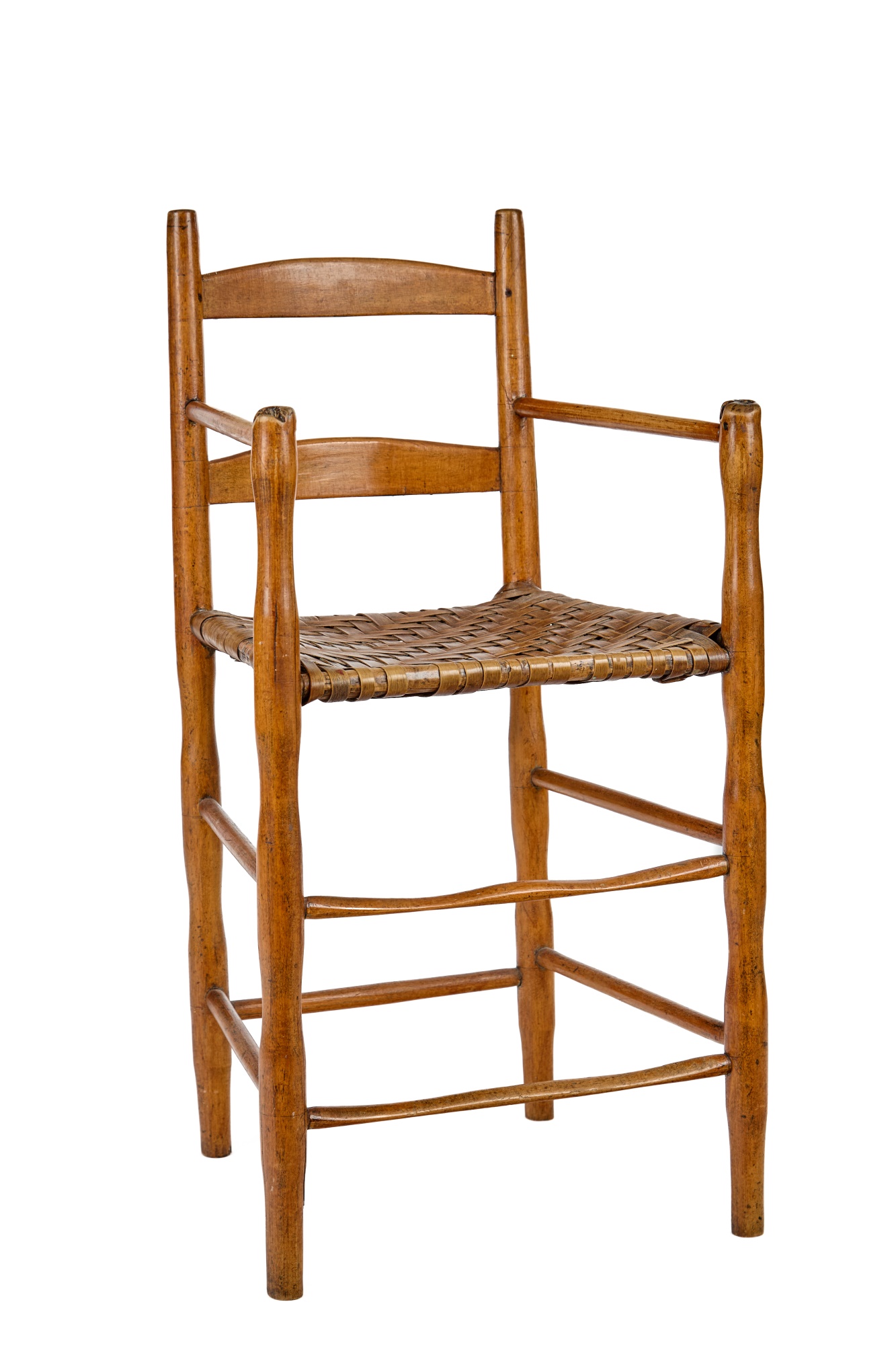 Notes: Wear consistent with age and use, some splitting of wood, breaks to caning.
