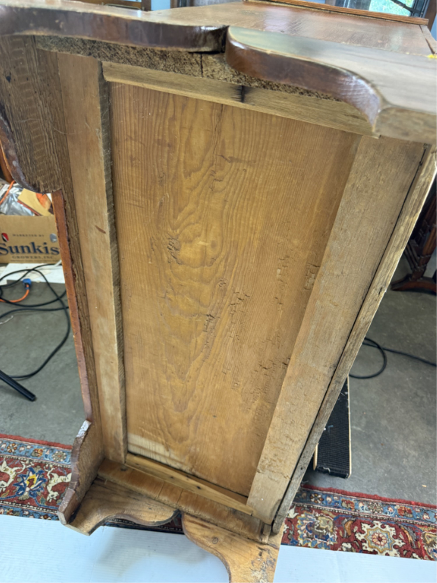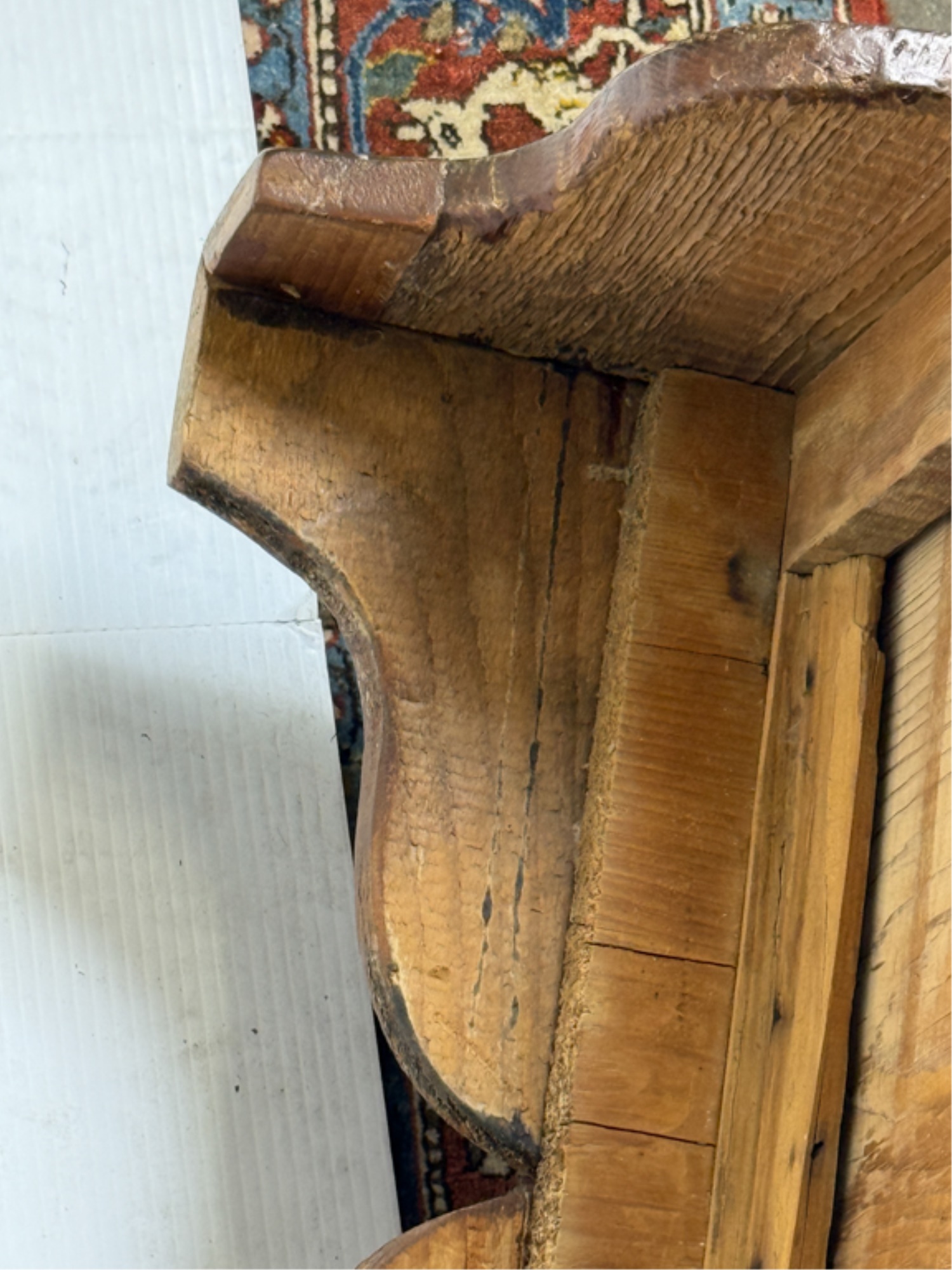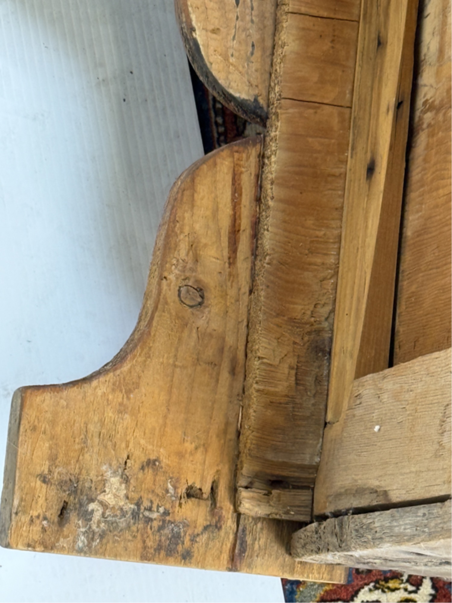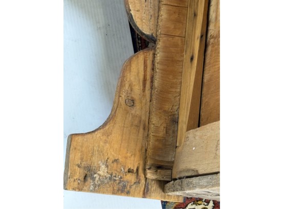 With boot jack ends and snipe hinges. 39 x 40 x 20 inches. Condition: Repairs. See photos.