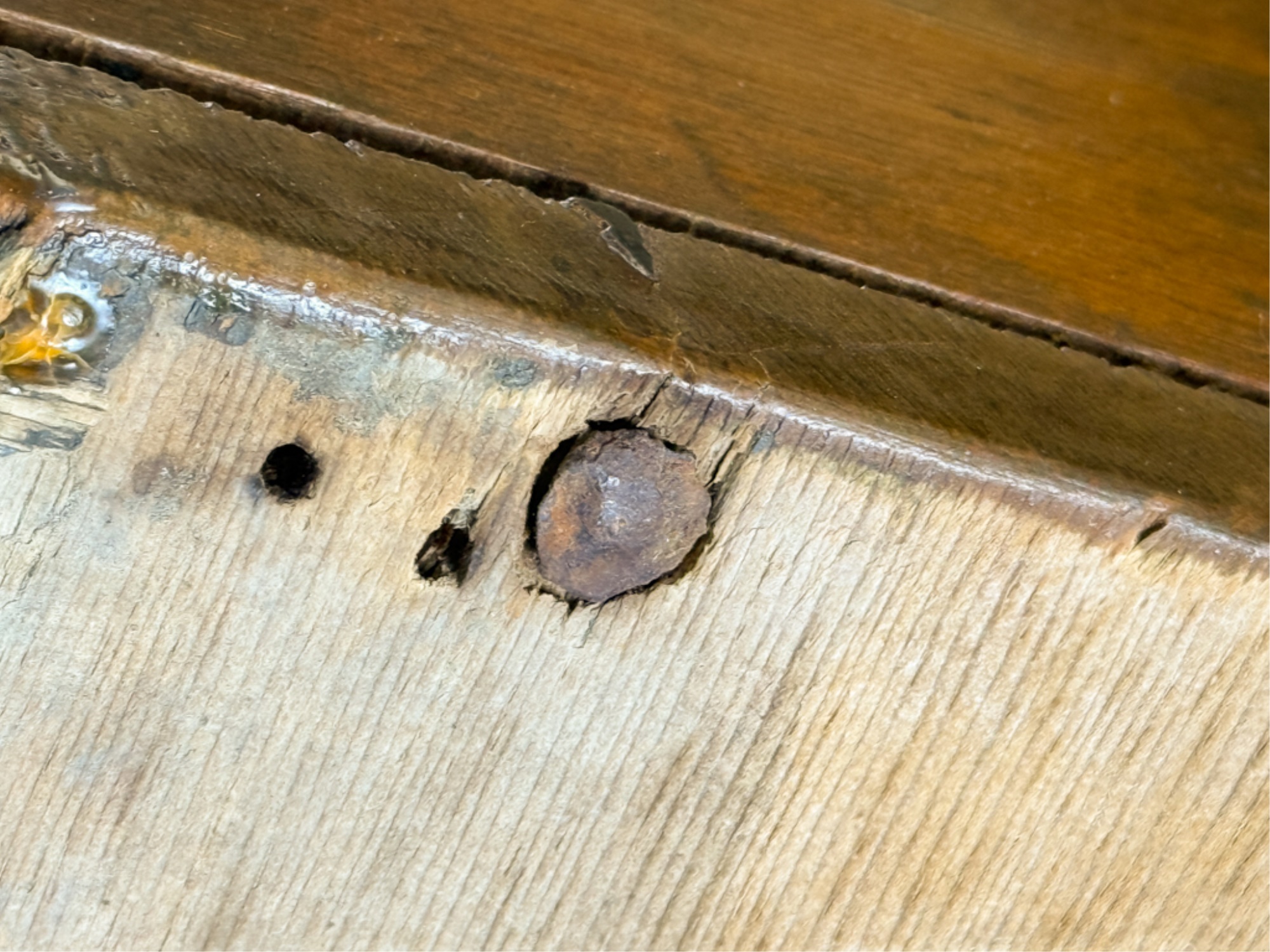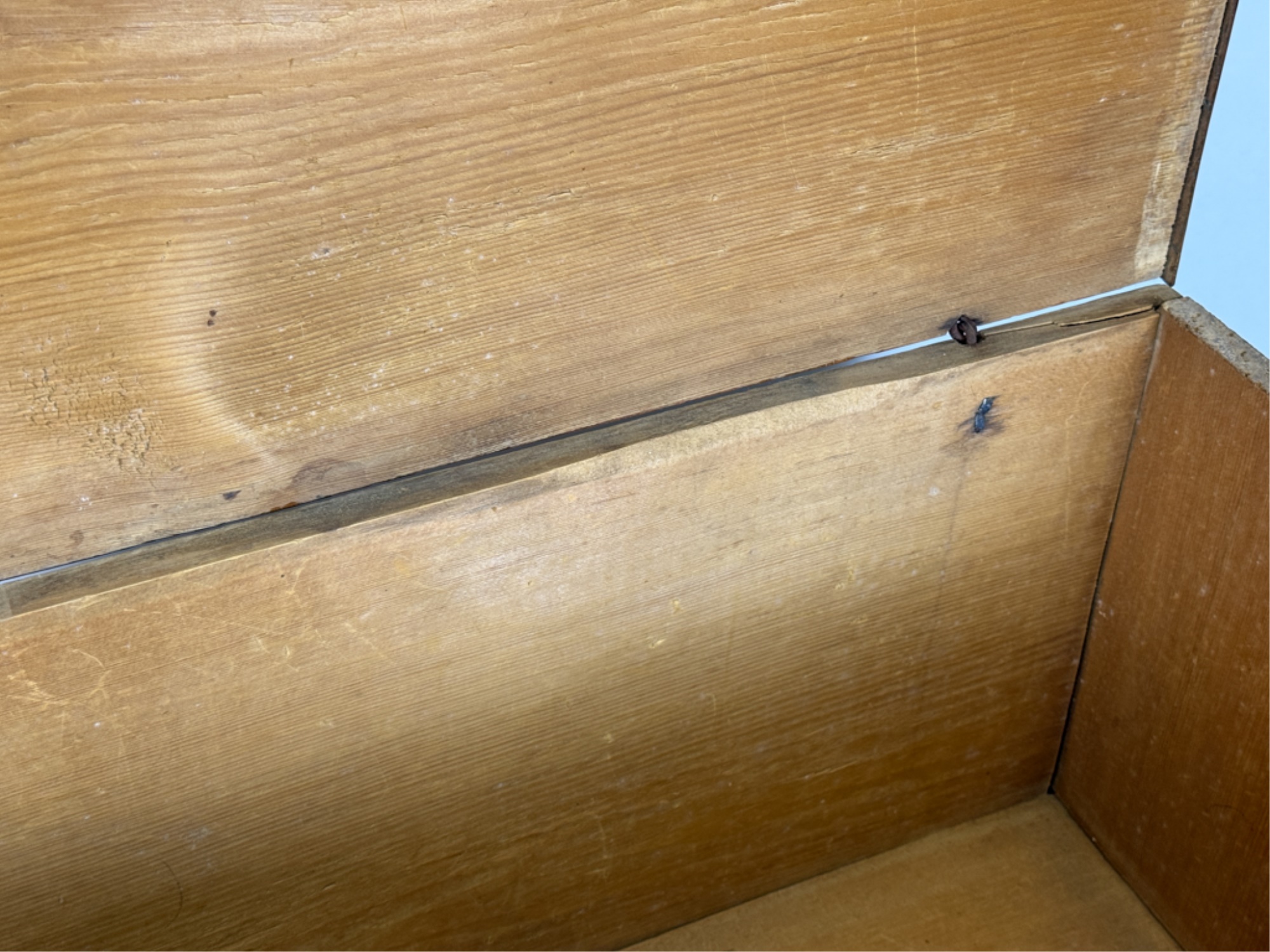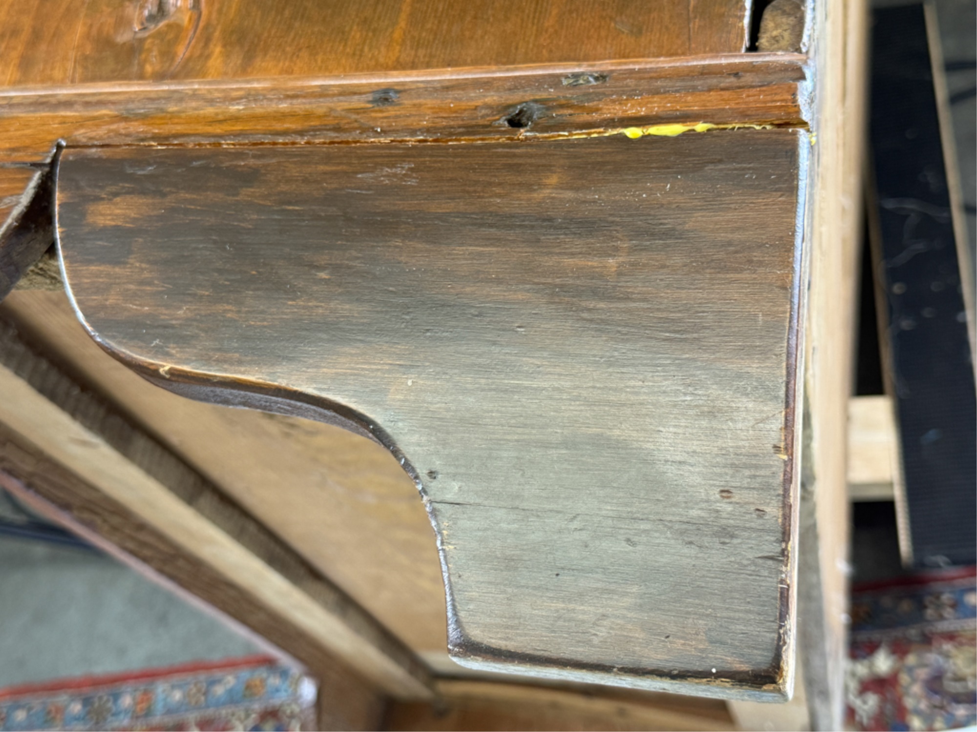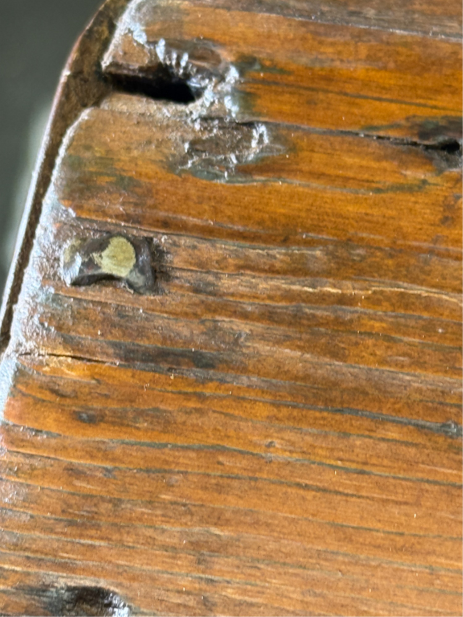 With boot jack ends and snipe hinges. 39 x 40 x 20 inches. Condition: Repairs. See photos.