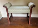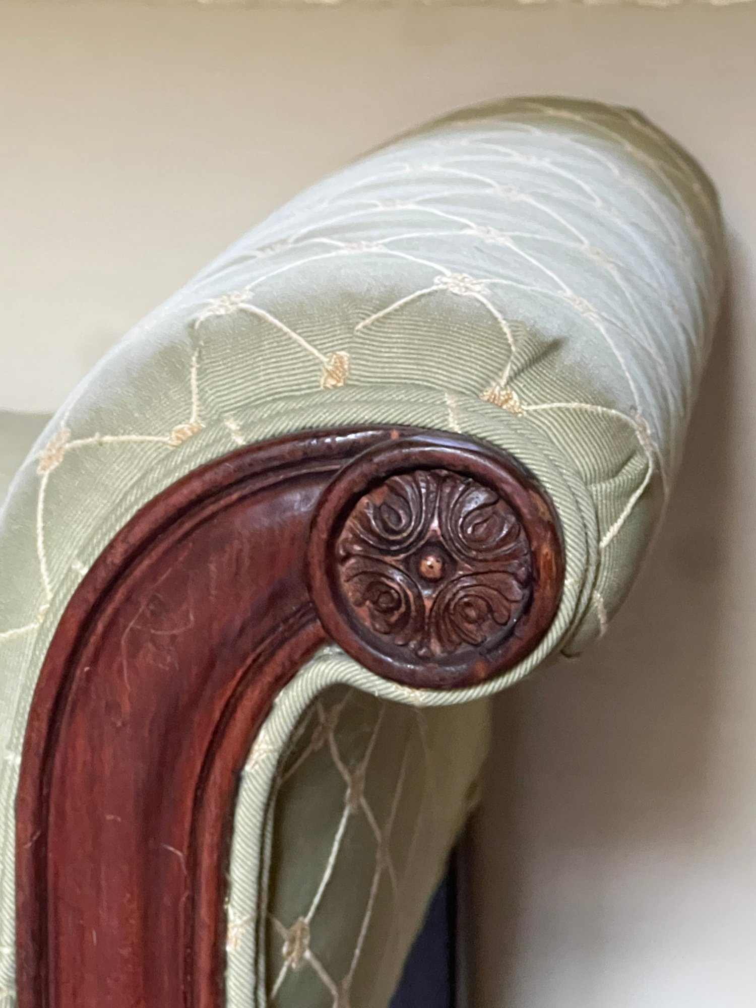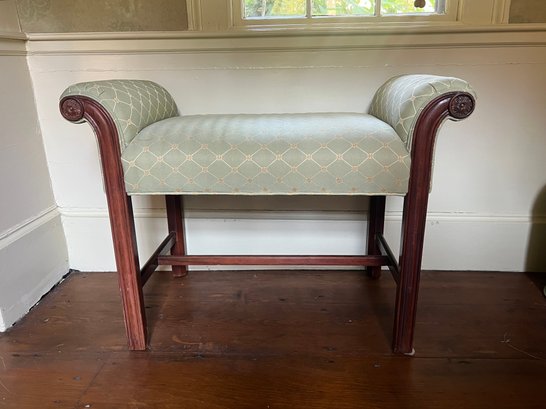 Molded legs with scrolled arms are supported with an H-form stretcher. 24 x 31 x 16.5 inches