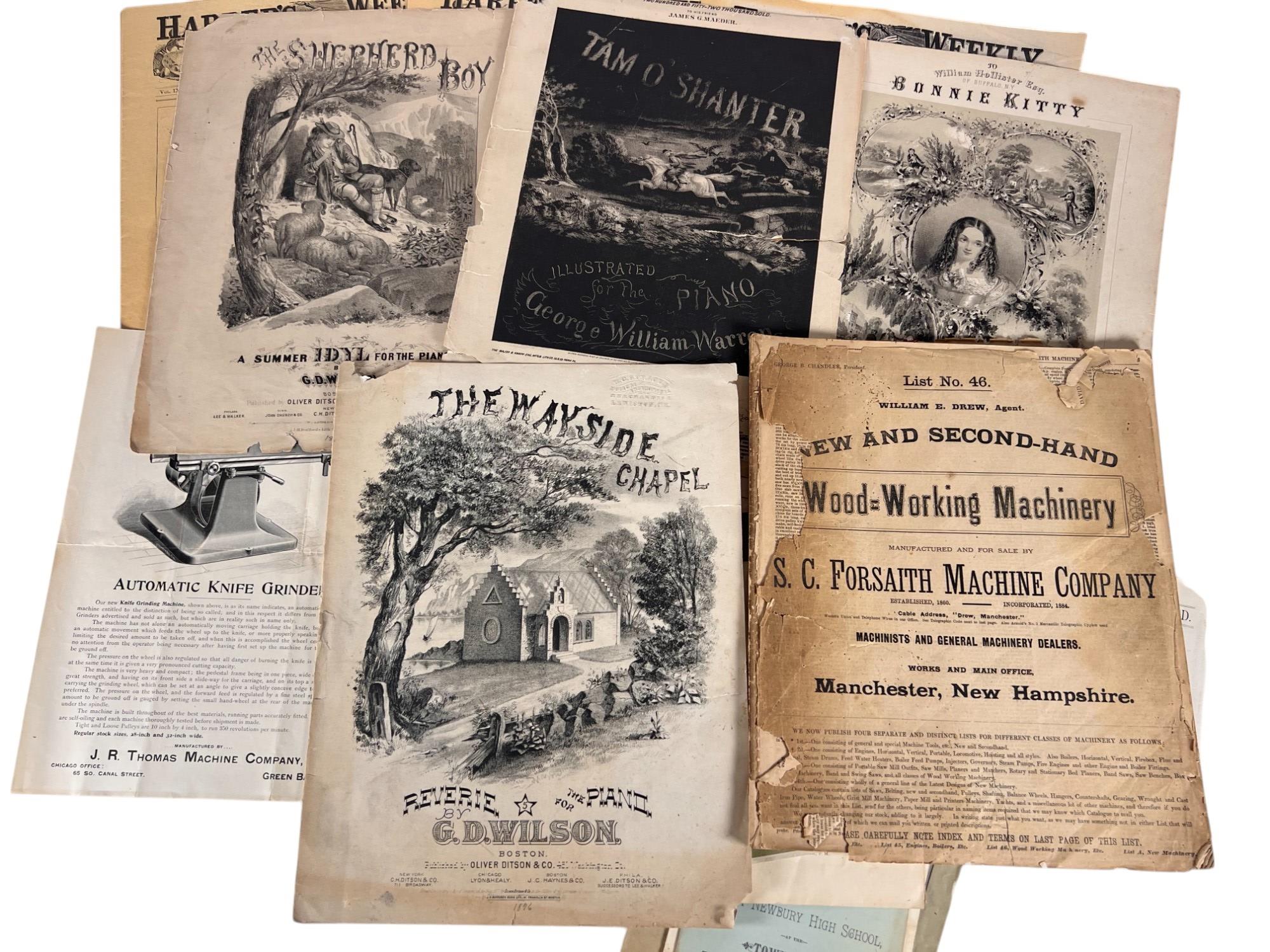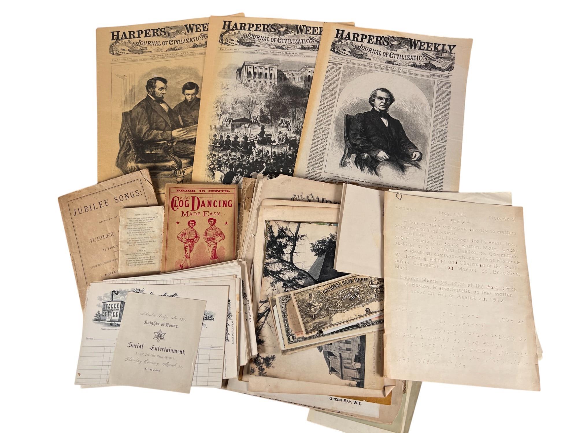 Including Harper's Weekly, song books, pamphlets, etc. See photos Condition: Wear consistent with age Temp No 6728