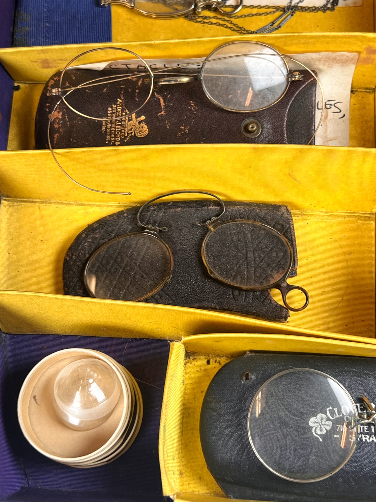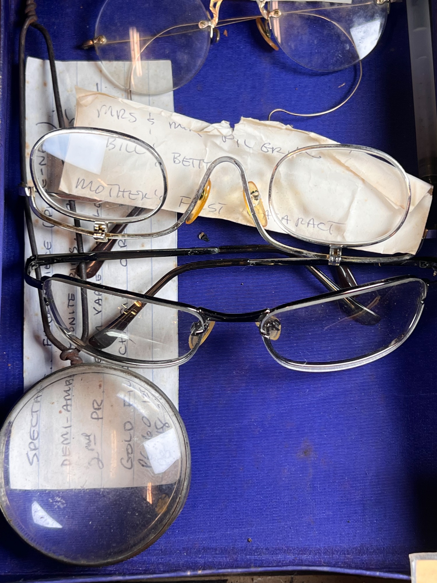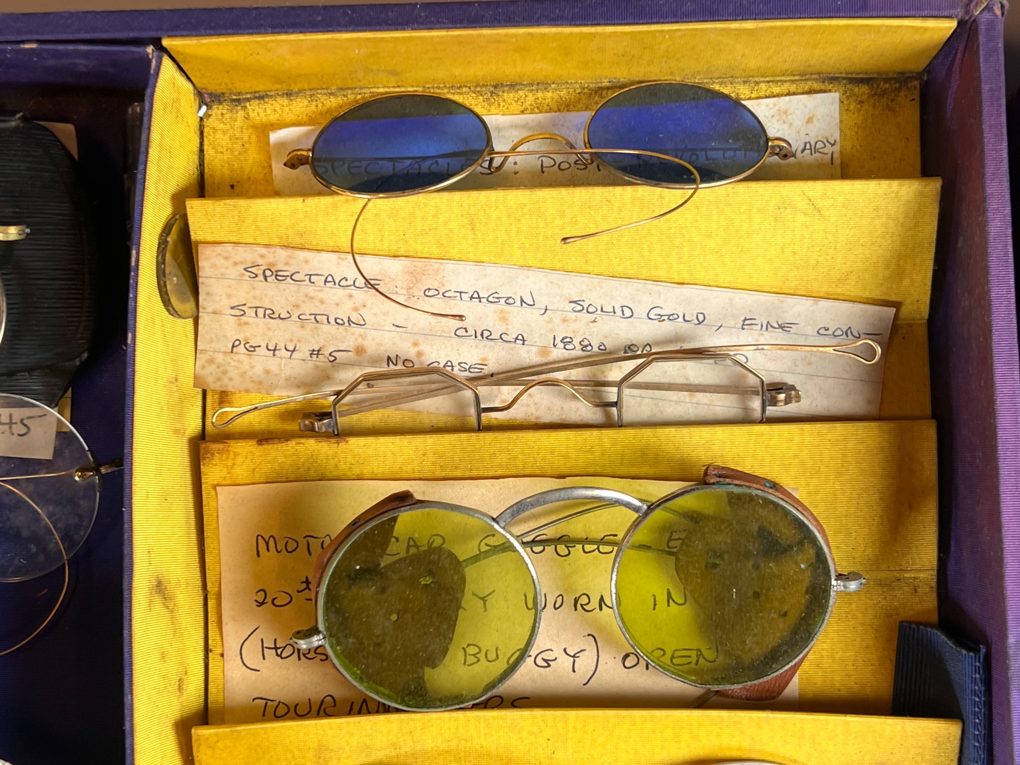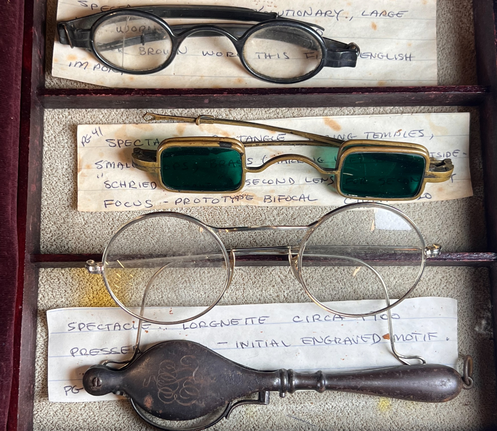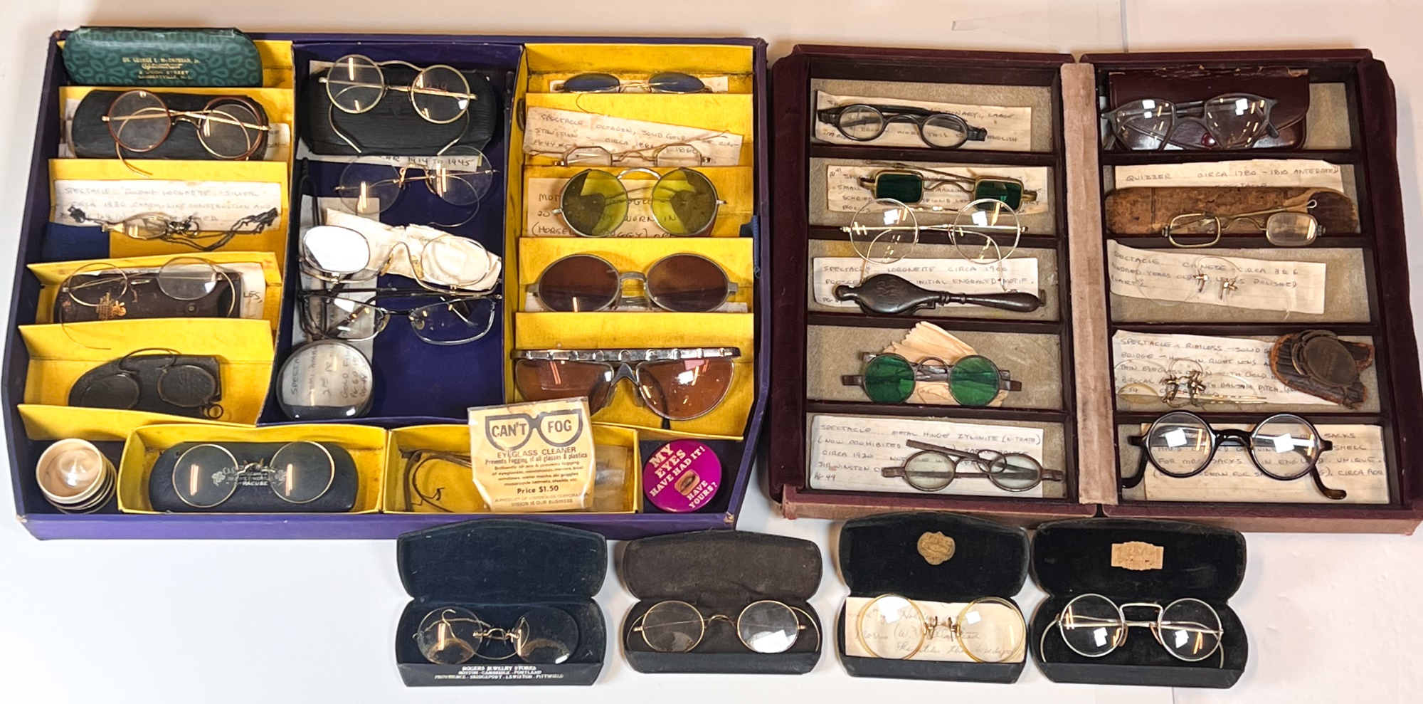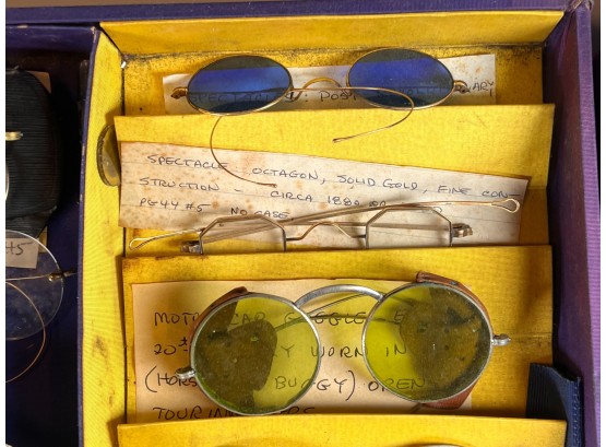 Carefully curated collection of antique and vintage spectacles, eyeglasses and lorgnettes. Some with gold filled frames and parts. See photos Condition: Varying degrees of condition. Conditions consistent with age and use. As is