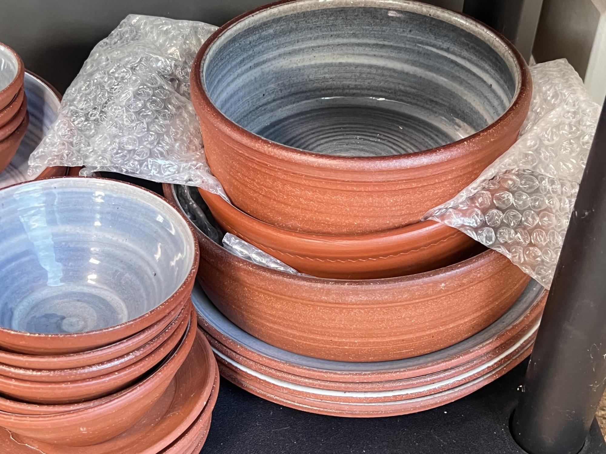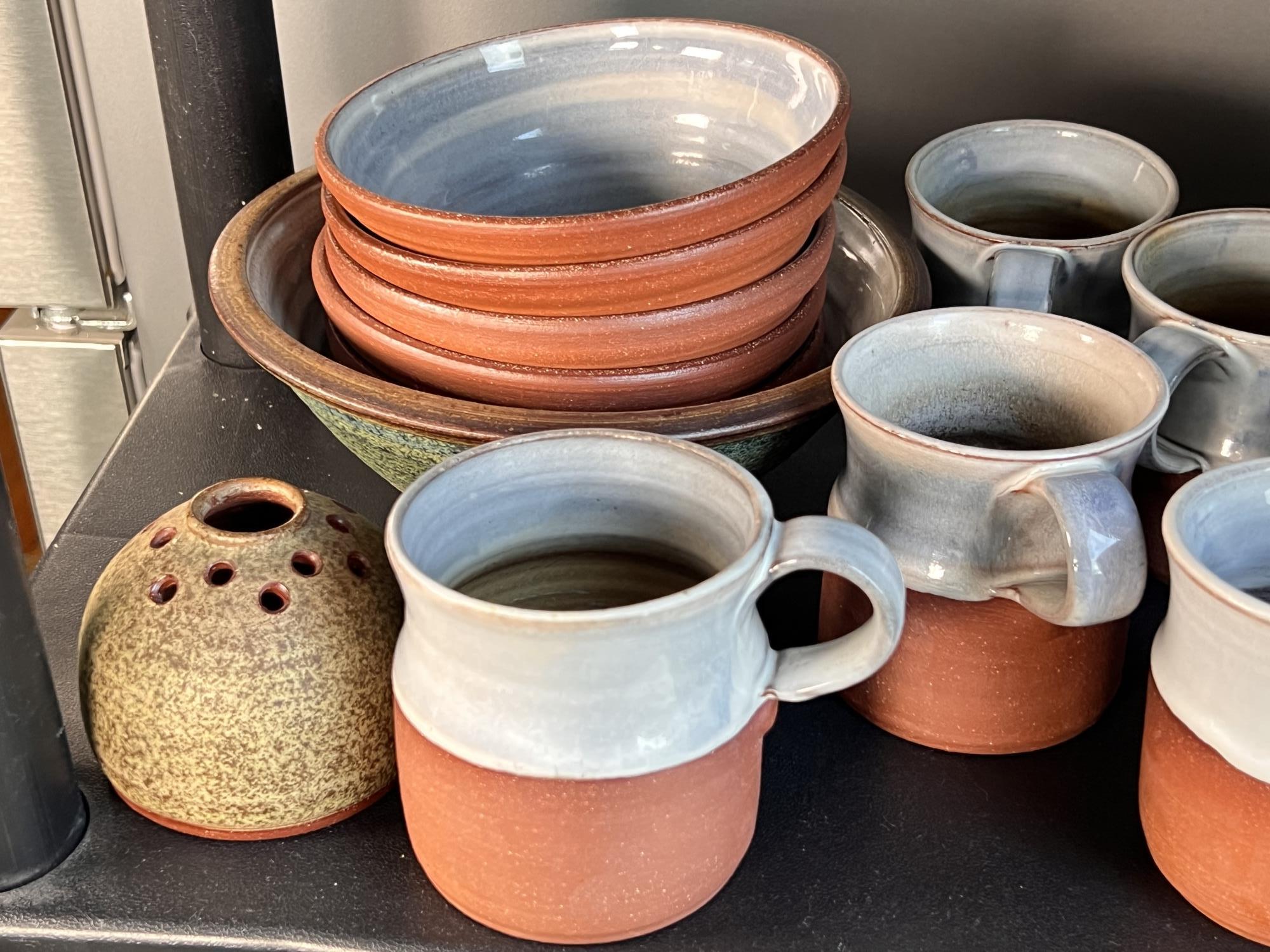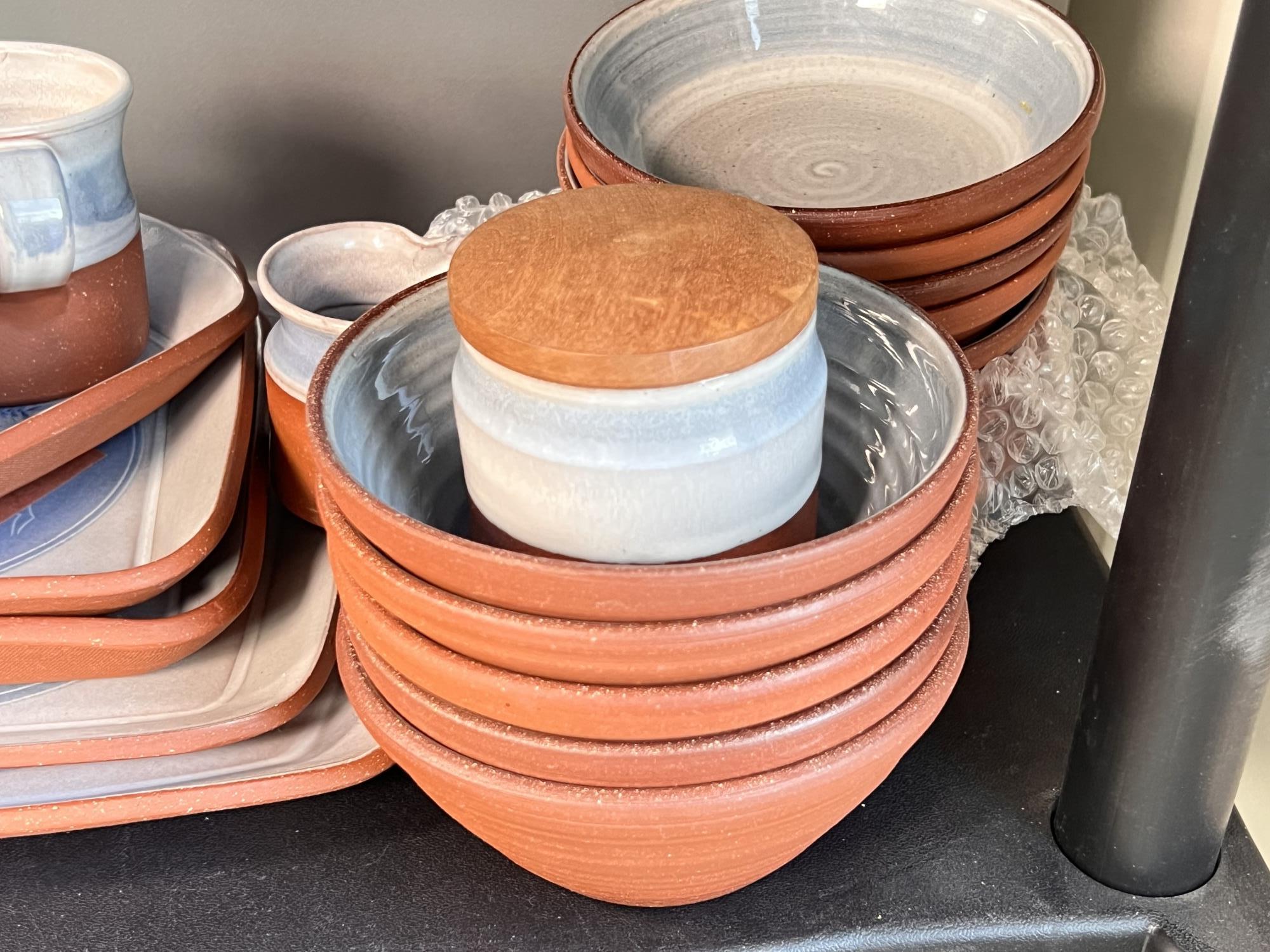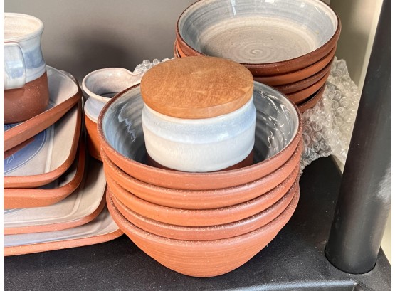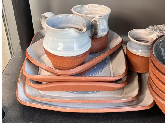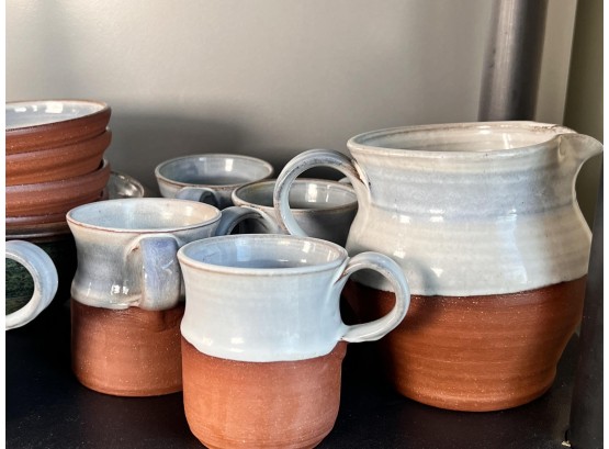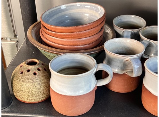 Vibert Pottery is a Maine Artisan pottery studio. Including cups, bowls, plates, serving dishes etc, all signed. Tallest 5 1/2 inches