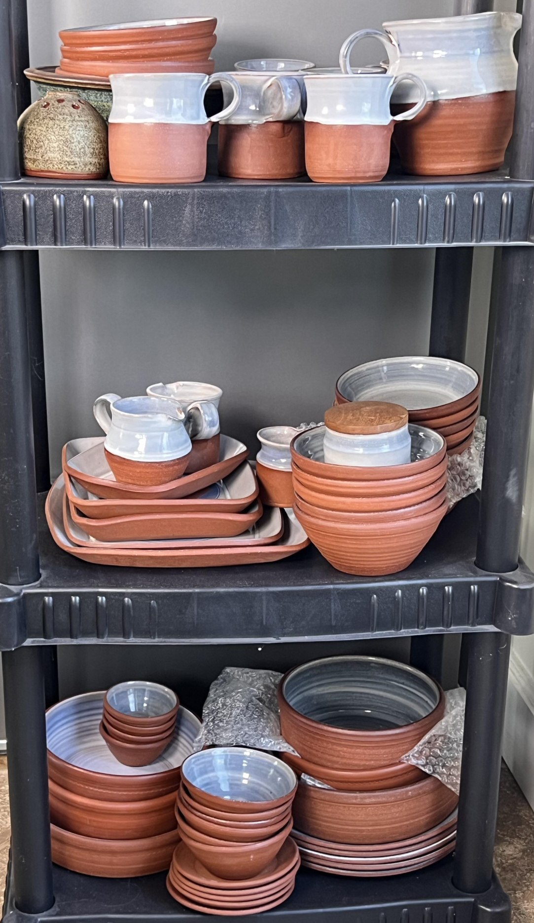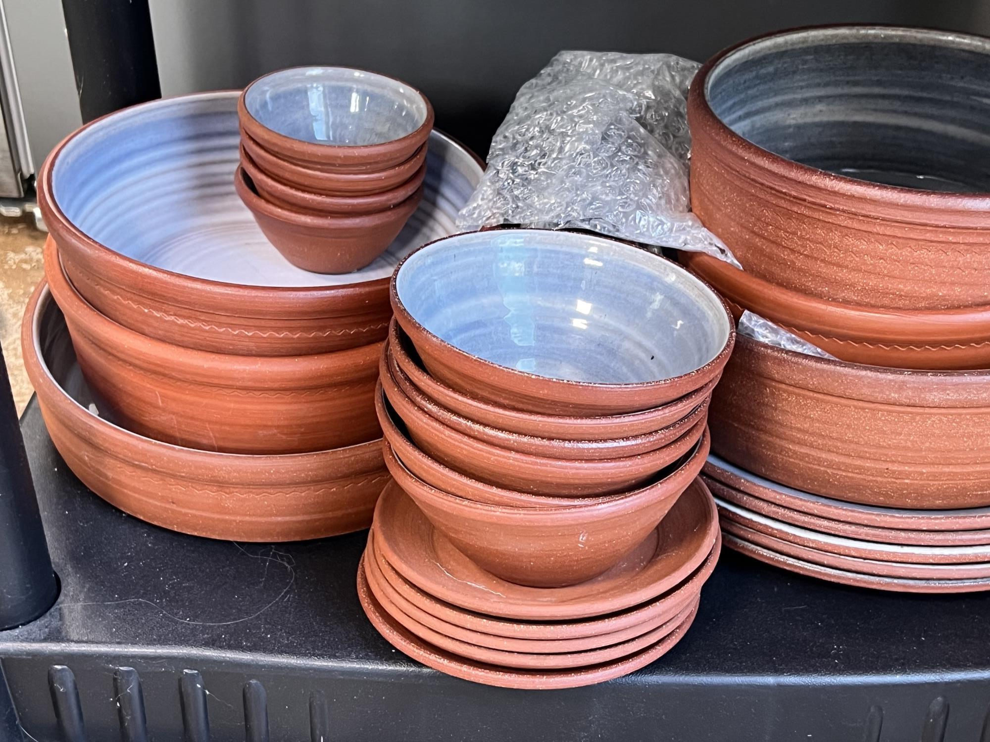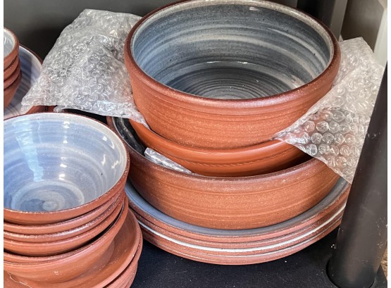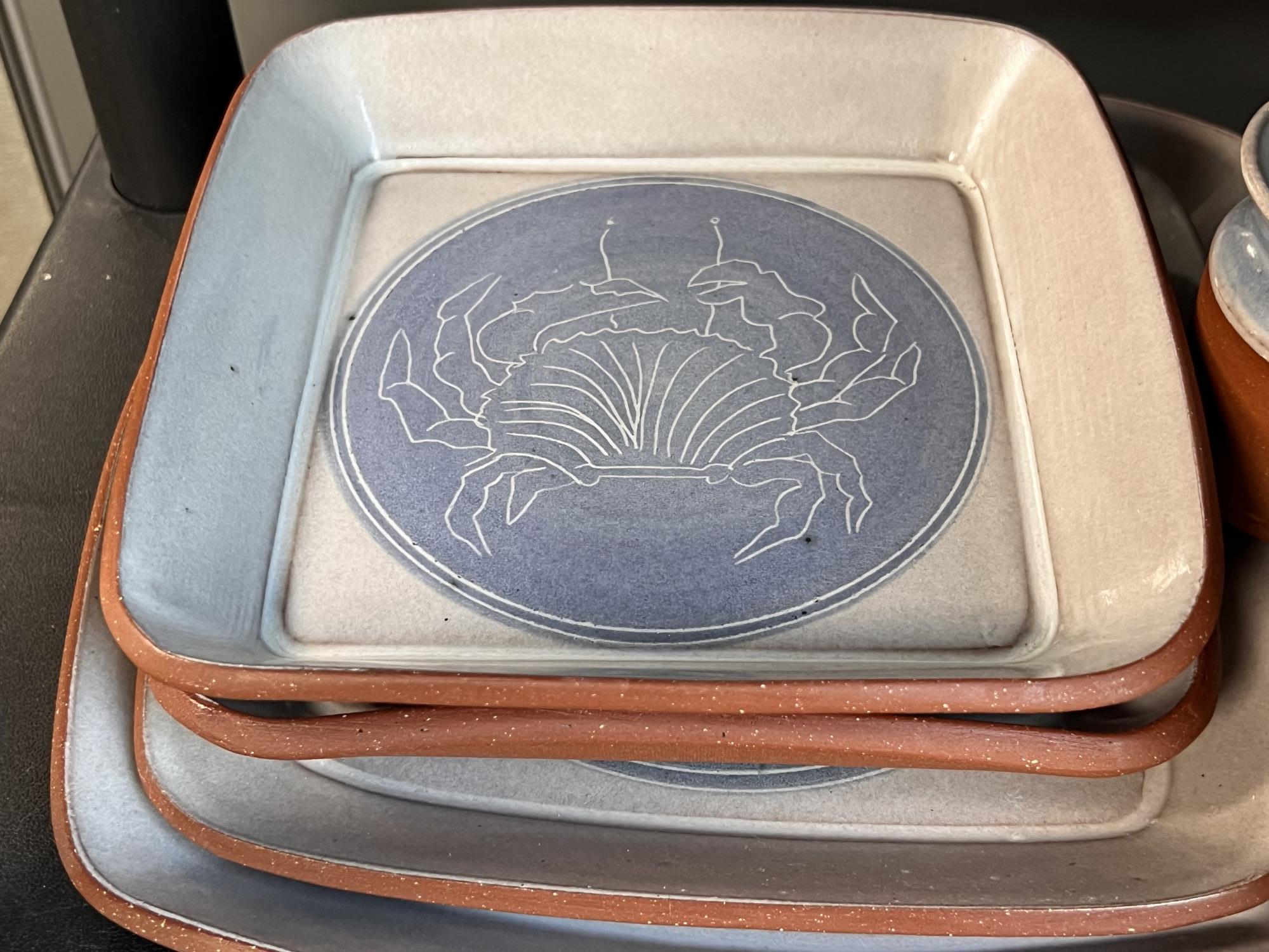 Vibert Pottery is a Maine Artisan pottery studio. Including cups, bowls, plates, serving dishes etc, all signed. Tallest 5 1/2 inches