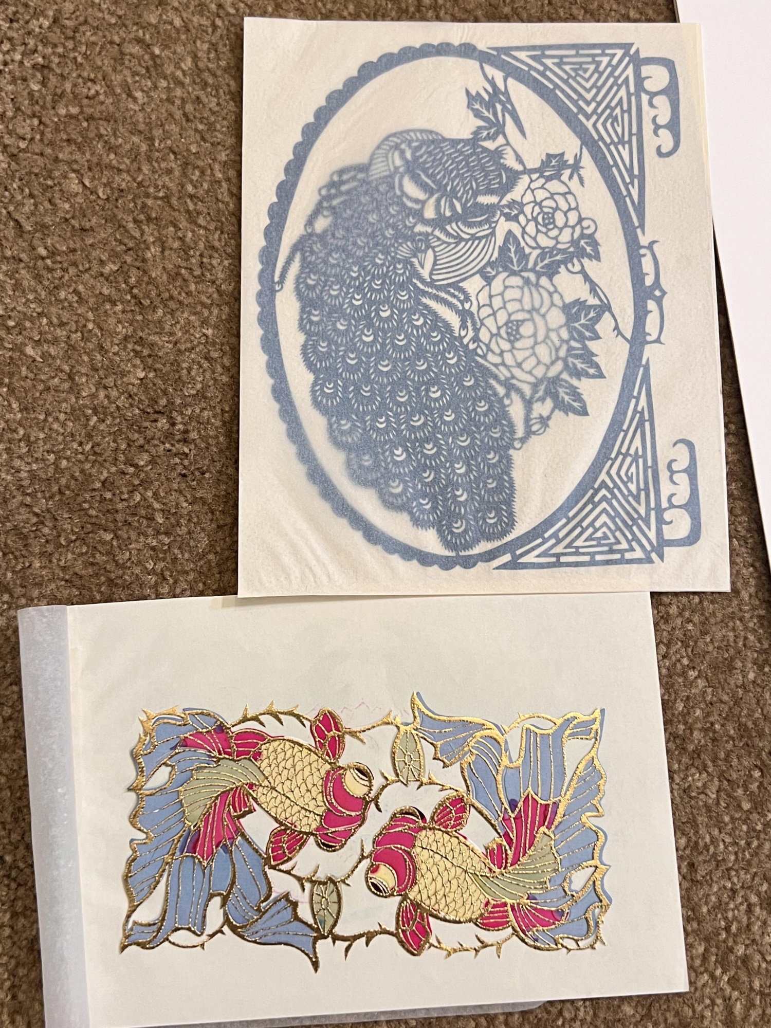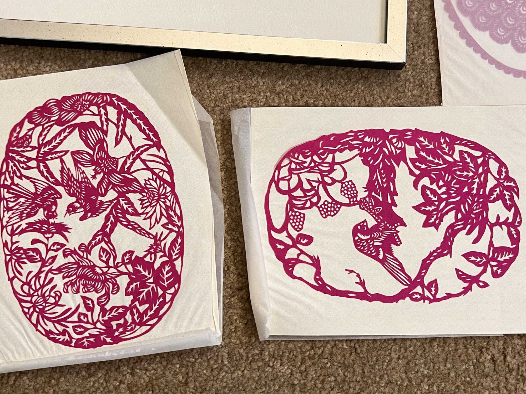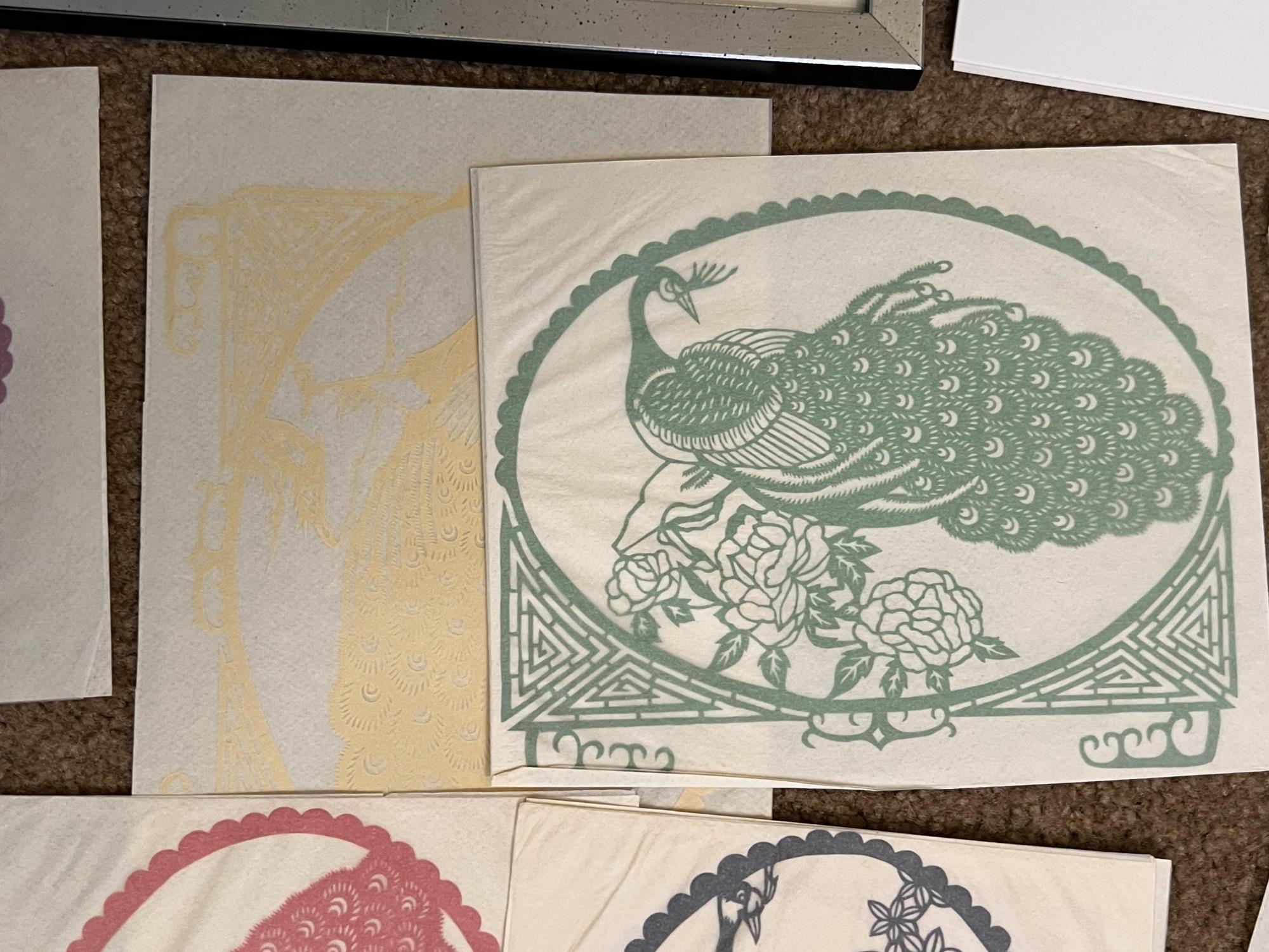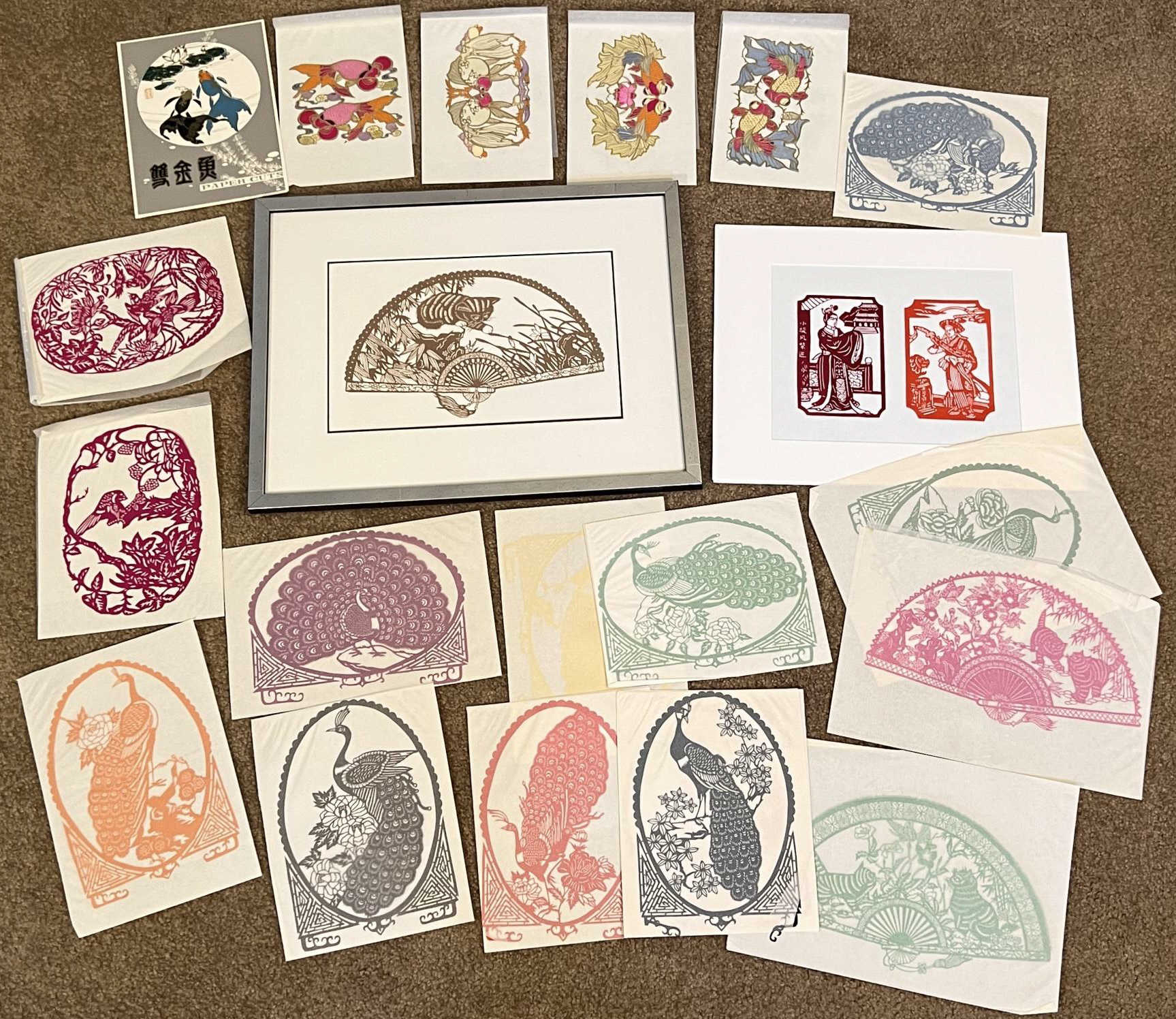 Delicate, finely done pieces collected mostly in the 1940's and 1950's. Largest framed piece 13" x 17"