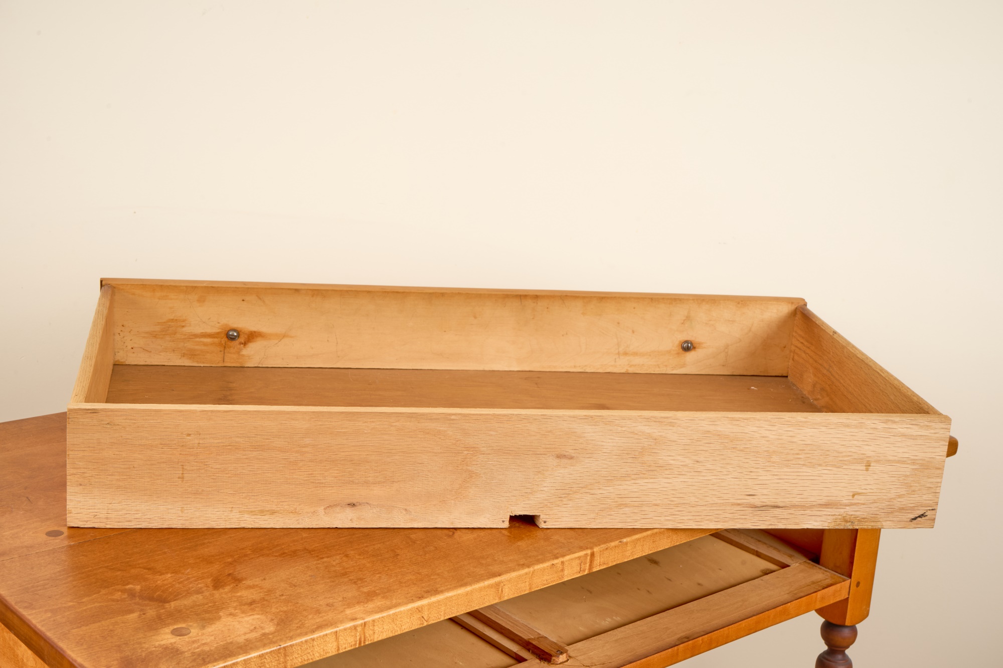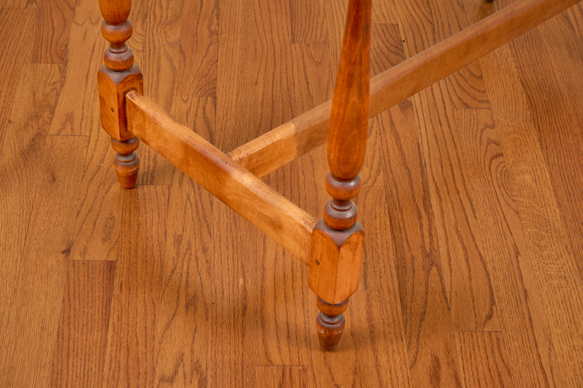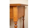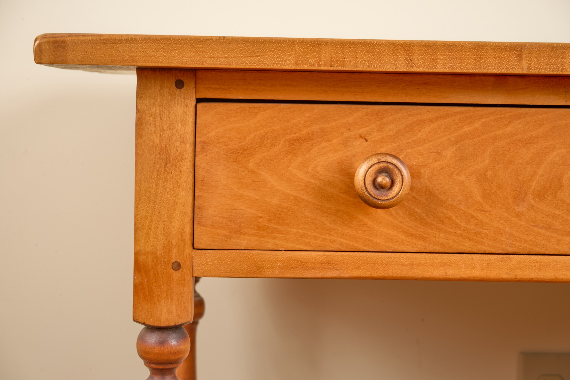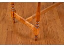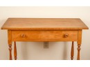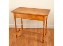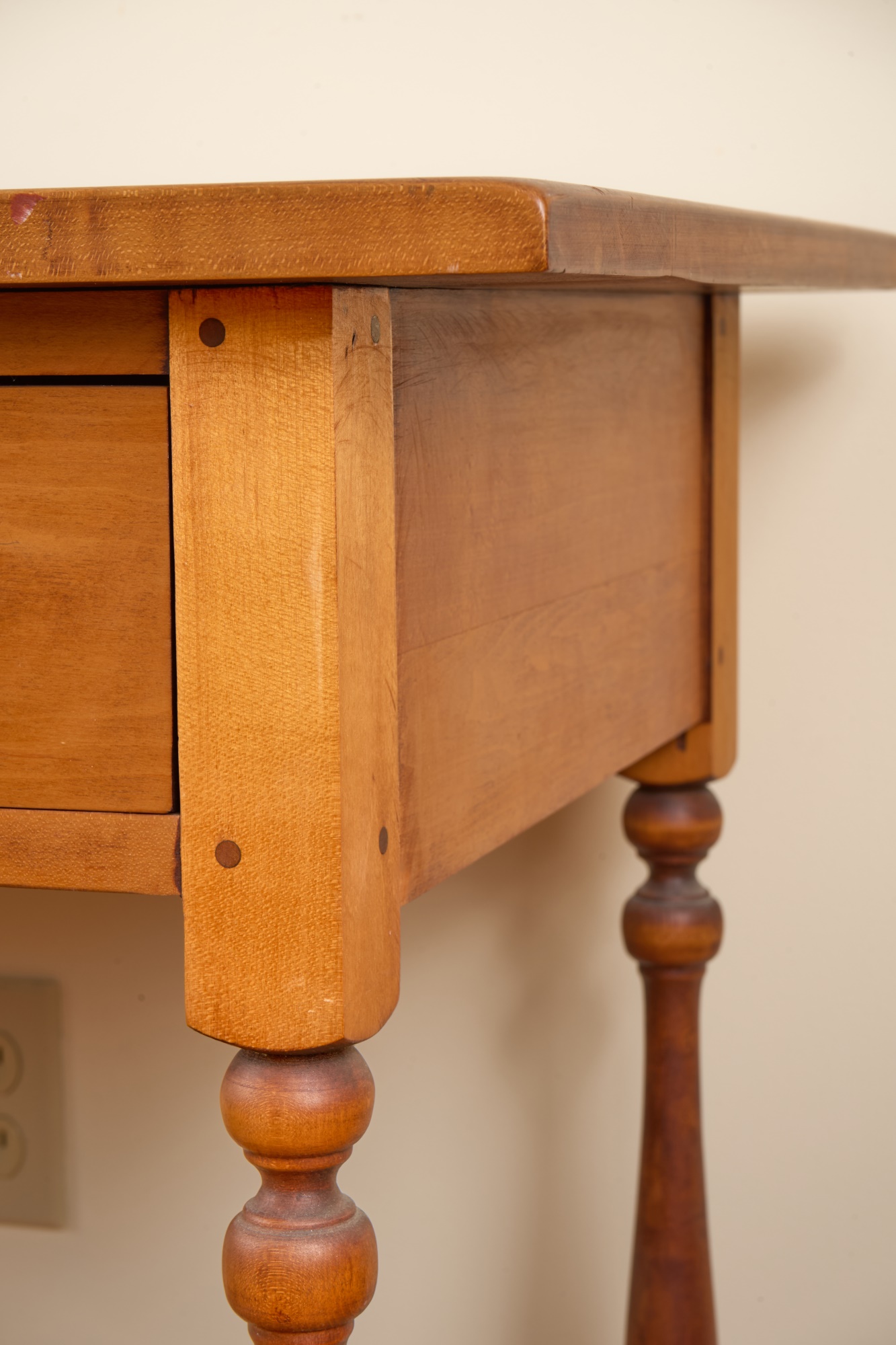 Single drawer raised on turned legs which are supported by an H stretcher. 30 x 36 x 19 inches Condition: Finish inconsistencies