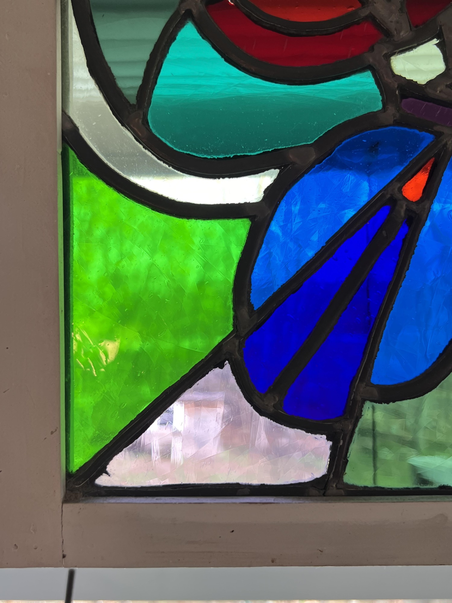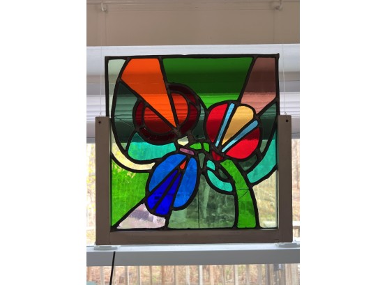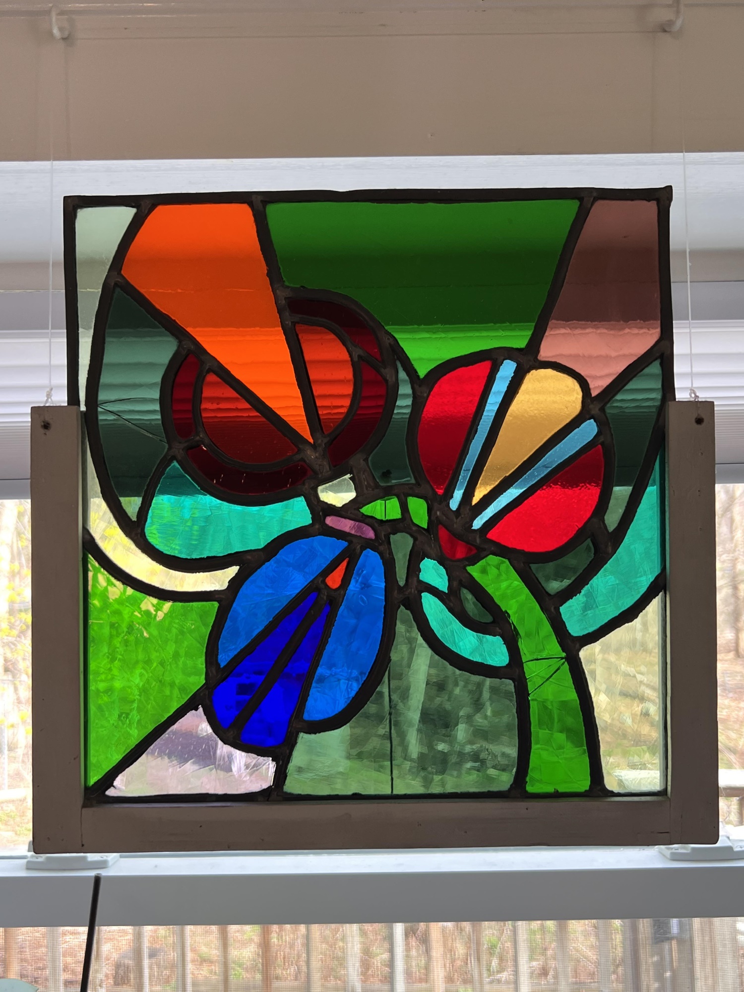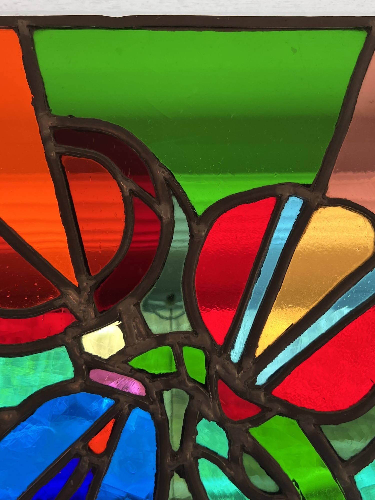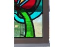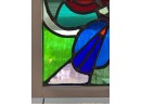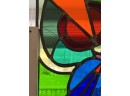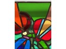 with colorful abstract design. 13 x 13 3/8 inches.
