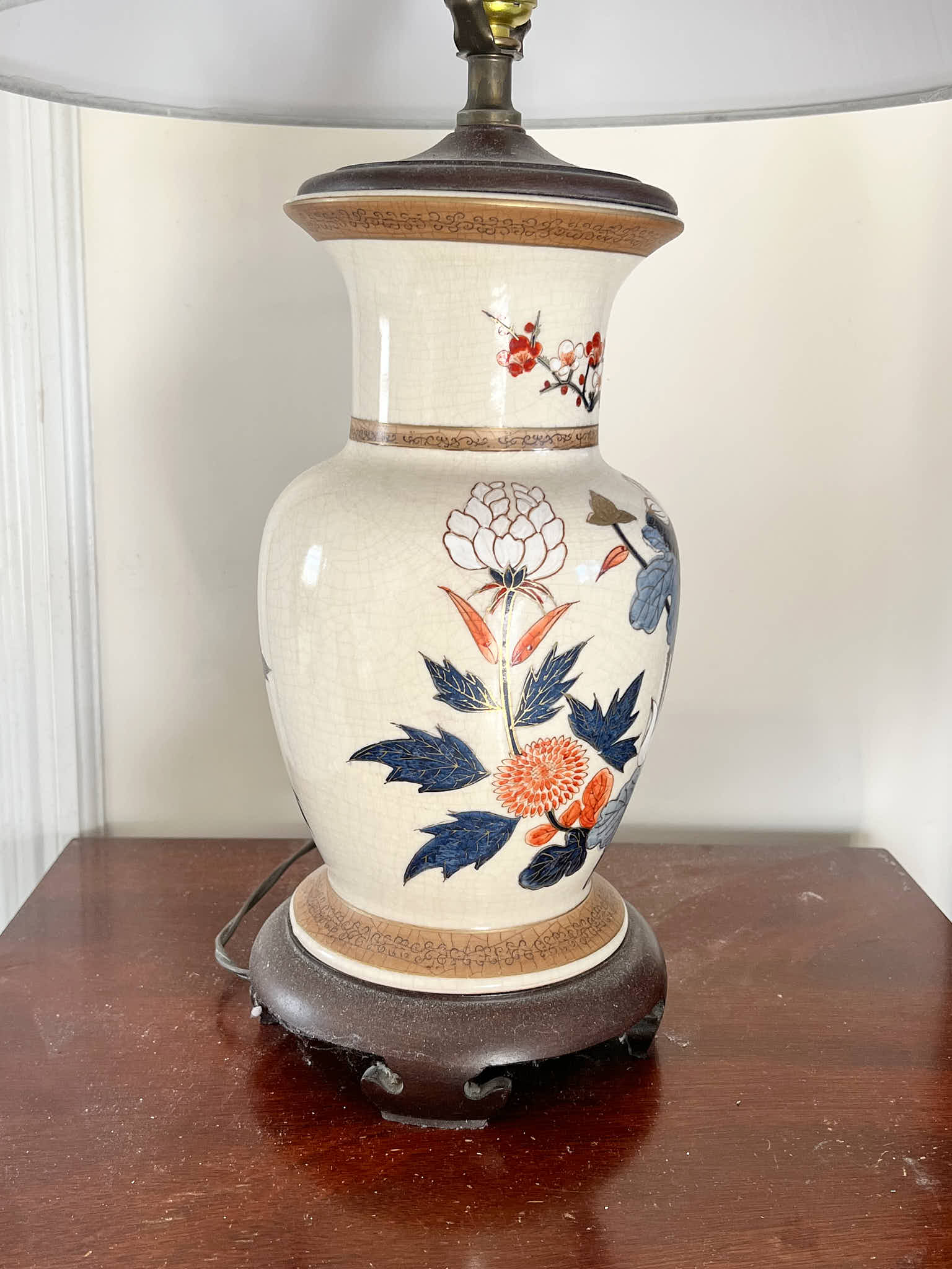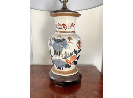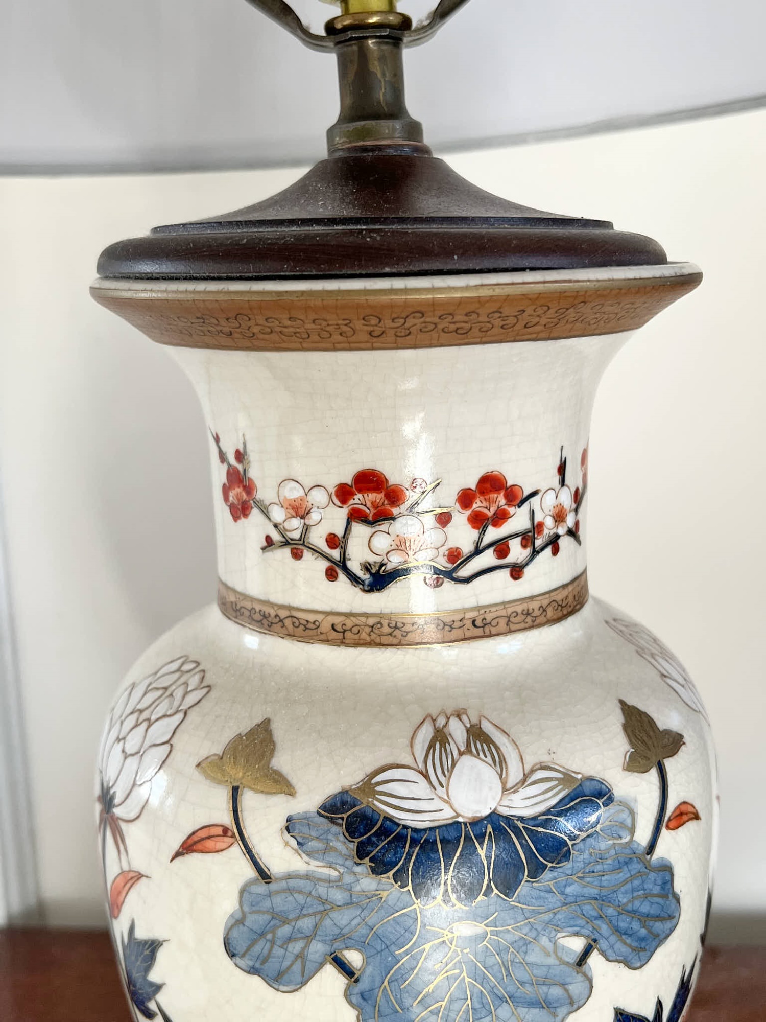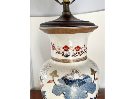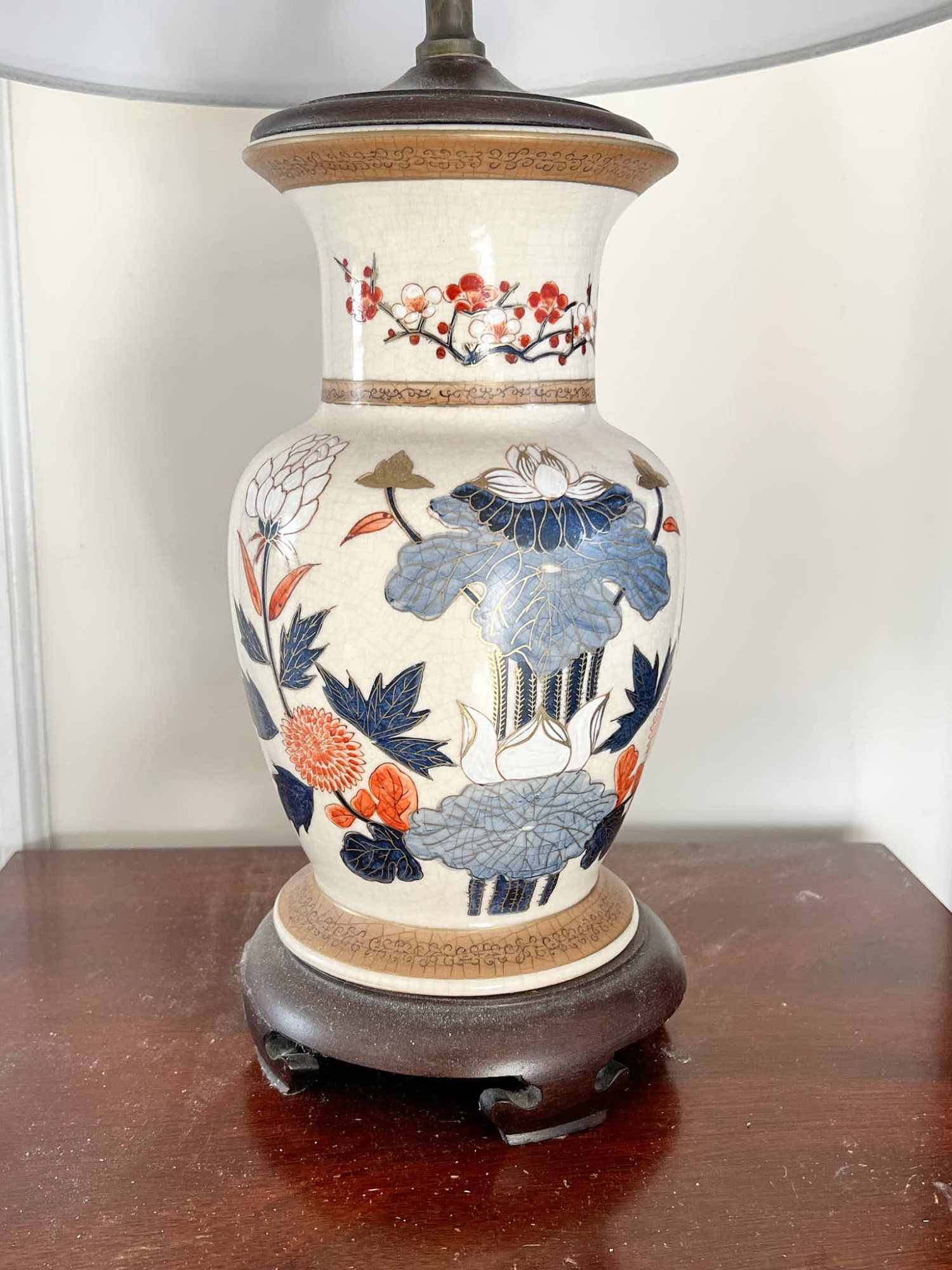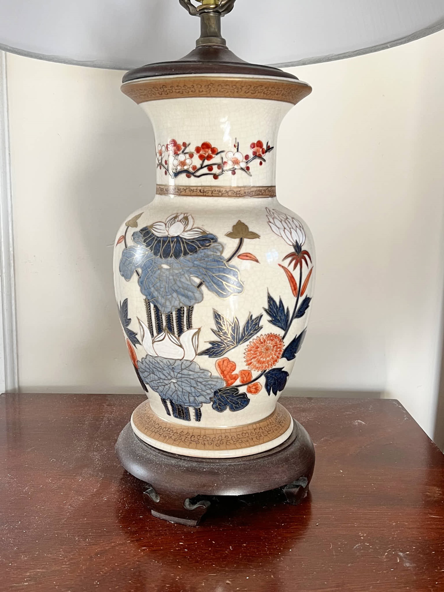 Pleasing lotus and prunus motif. 30 inches to top of finial Condition: Good