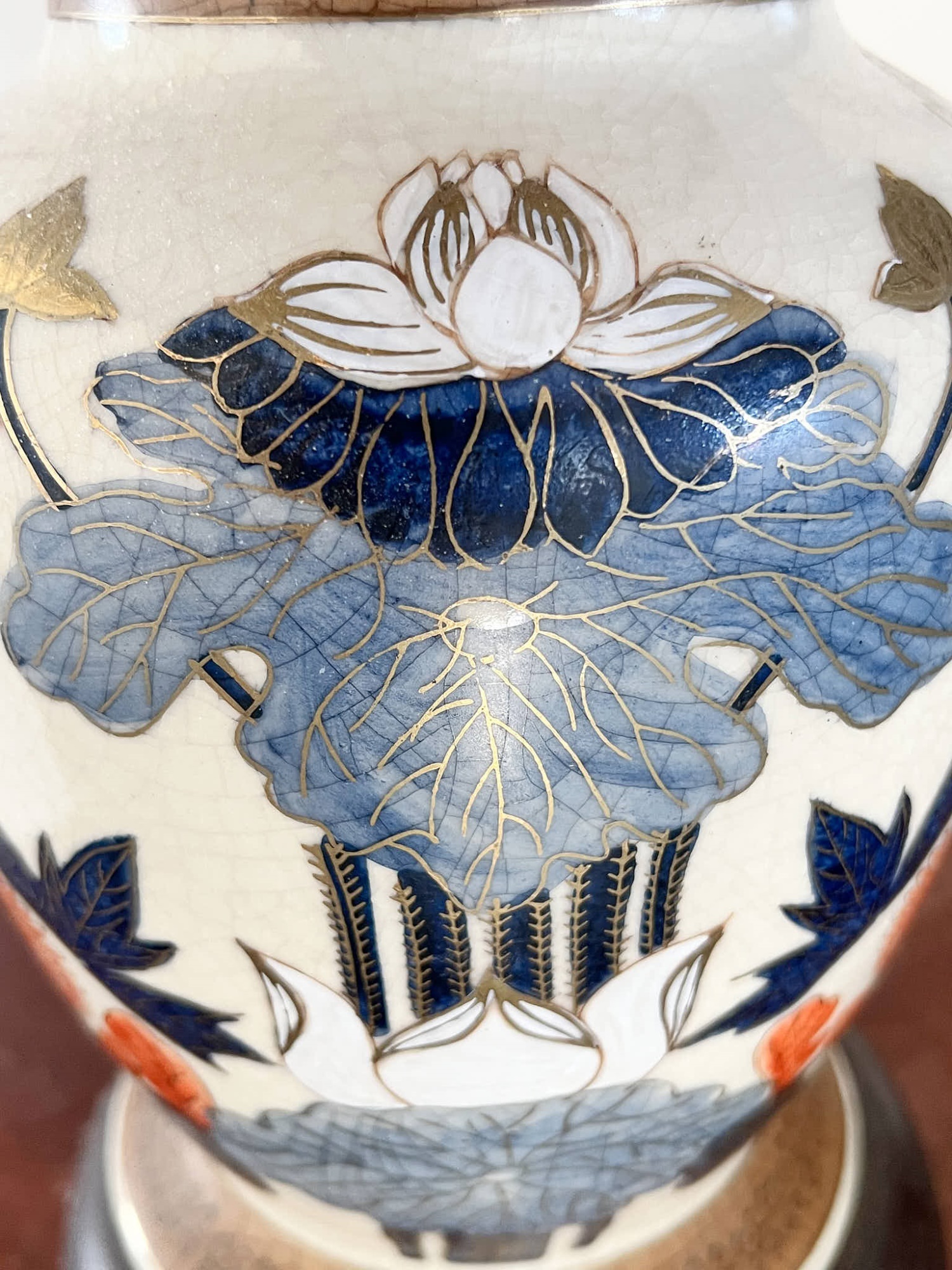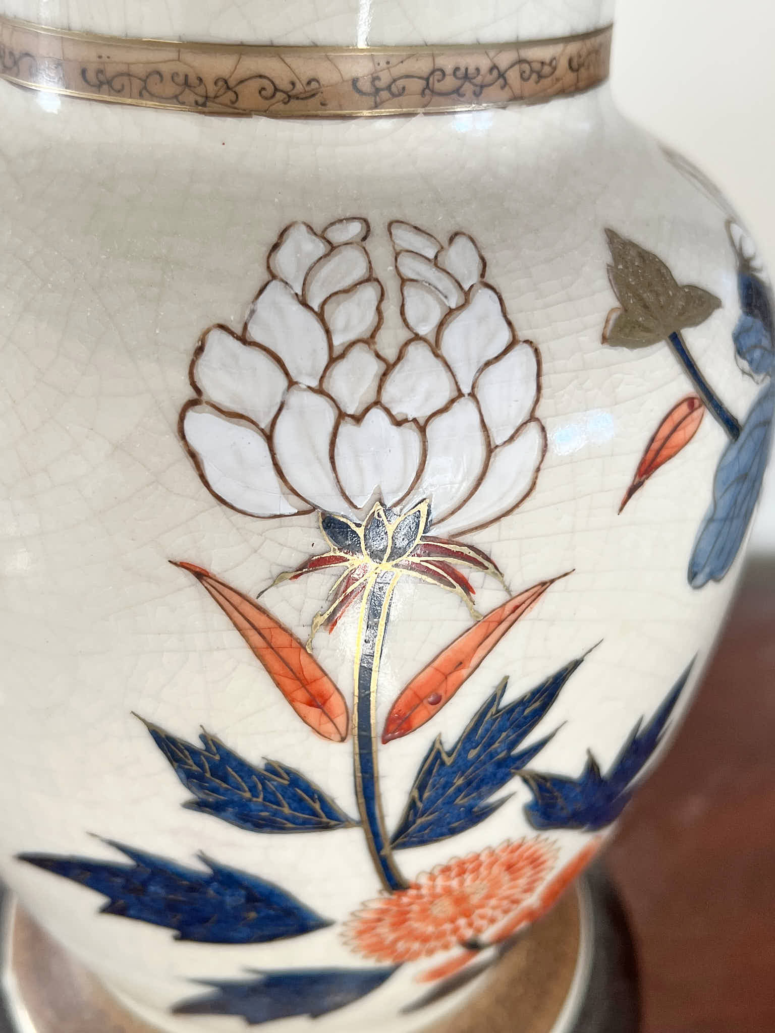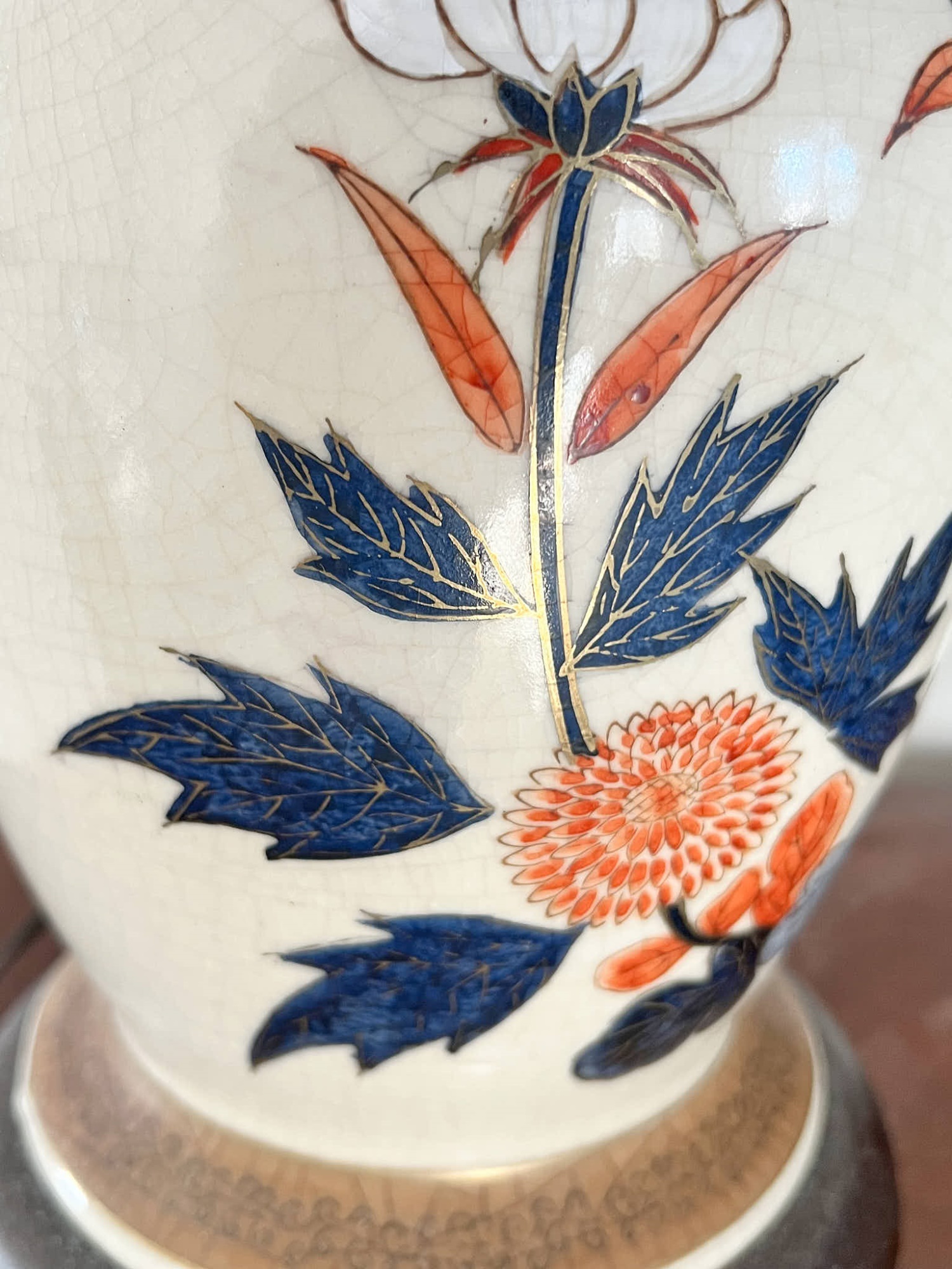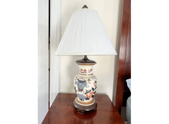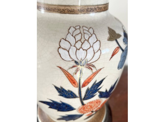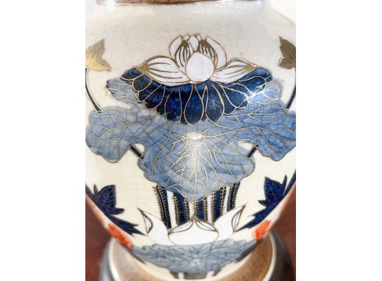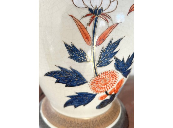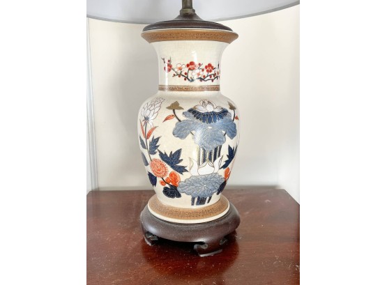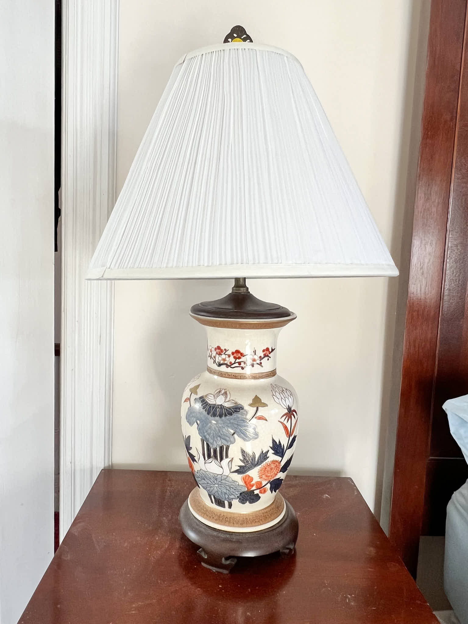 Pleasing lotus and prunus motif. 30 inches to top of finial Condition: Good