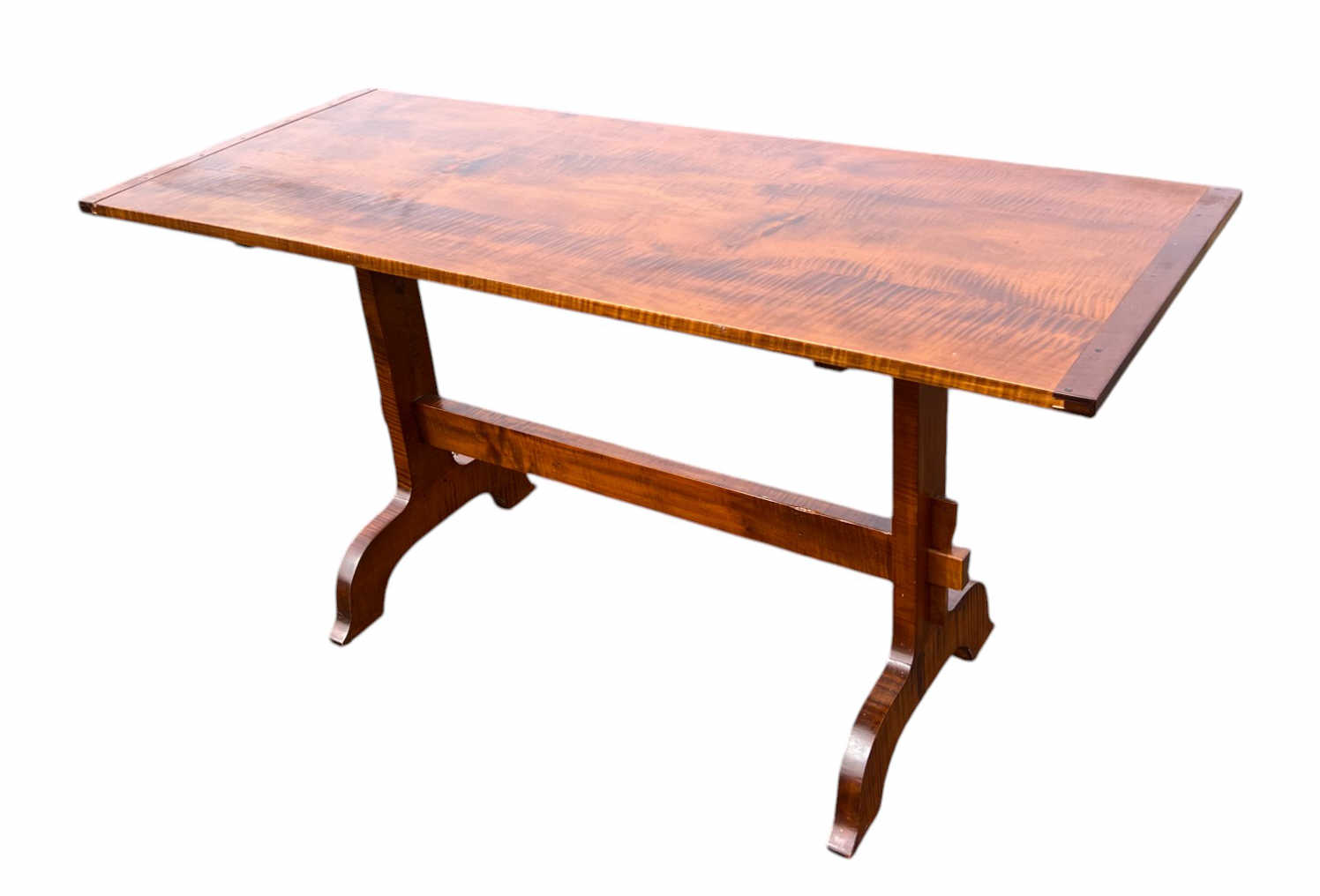 Nicely constructed table with breadboard ends. 30 1/2" x 60" x 23 3/4" Condition: Scratches to surface of top Temp No 6520