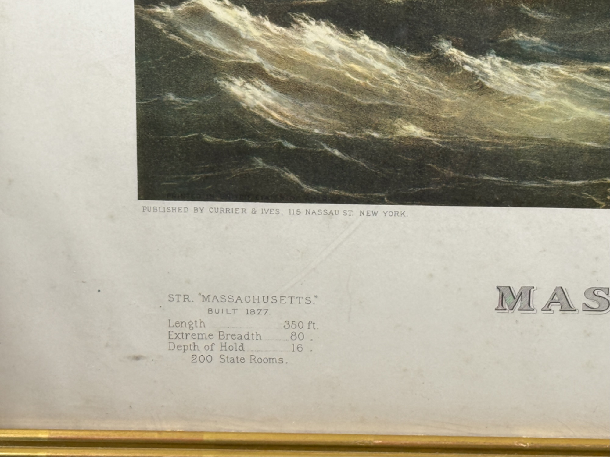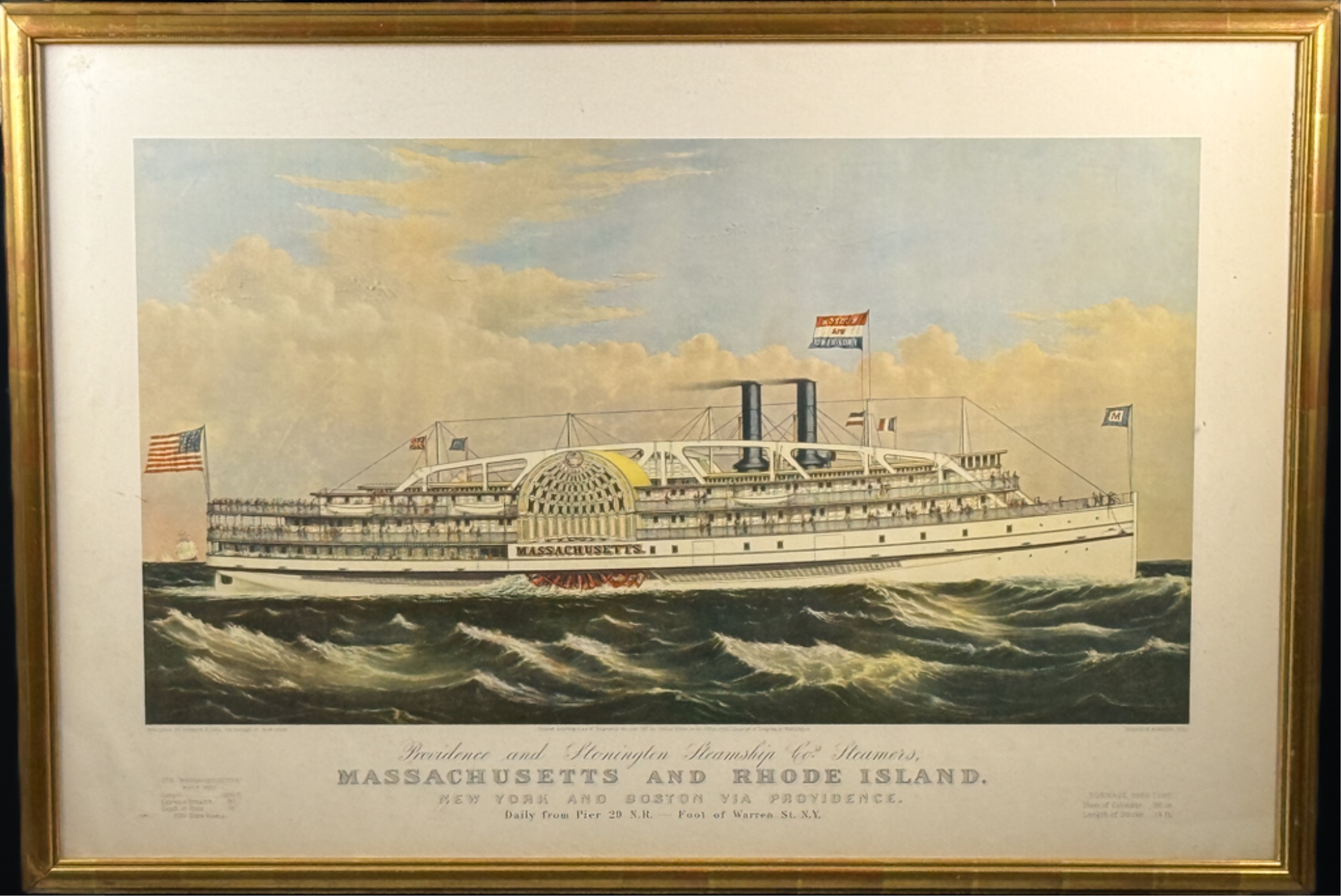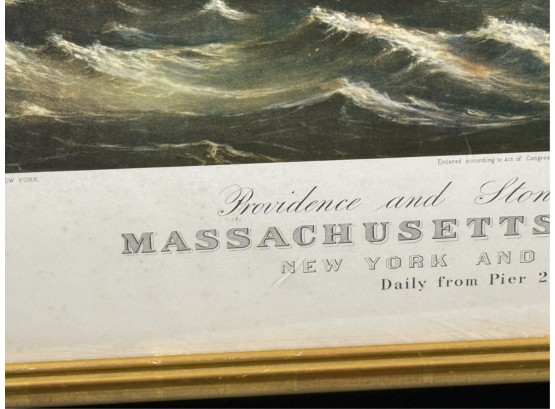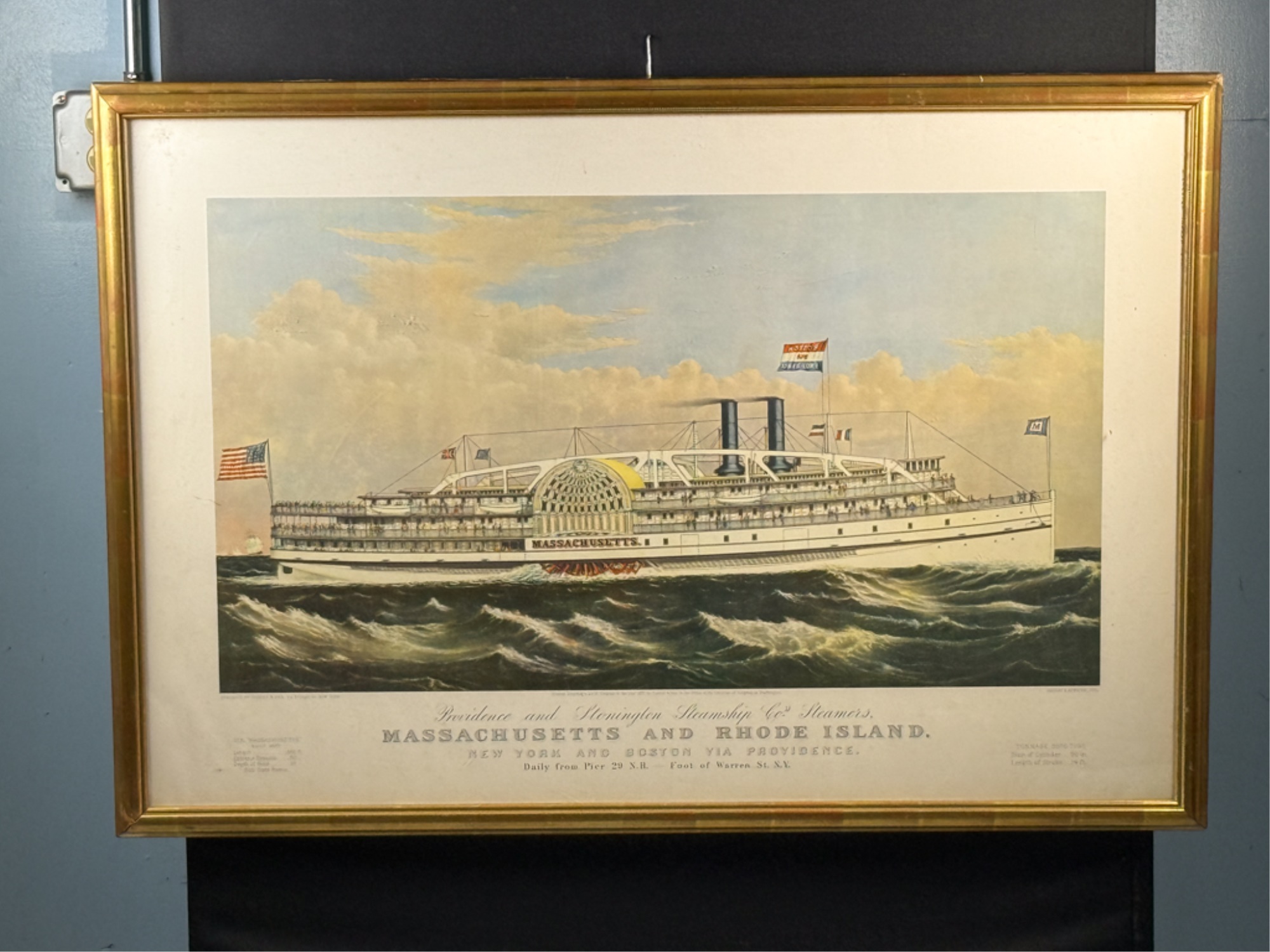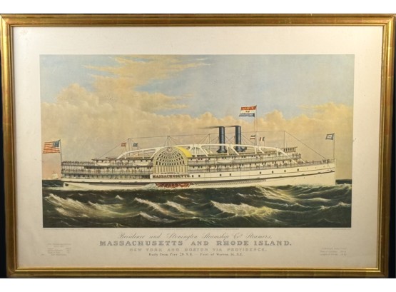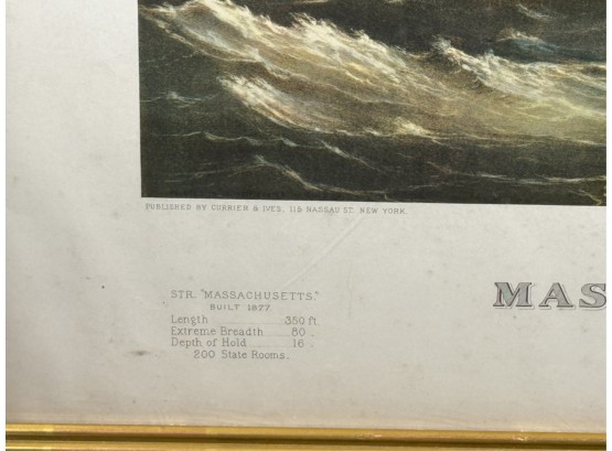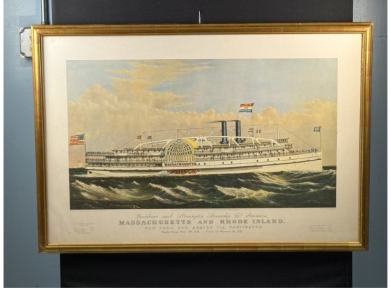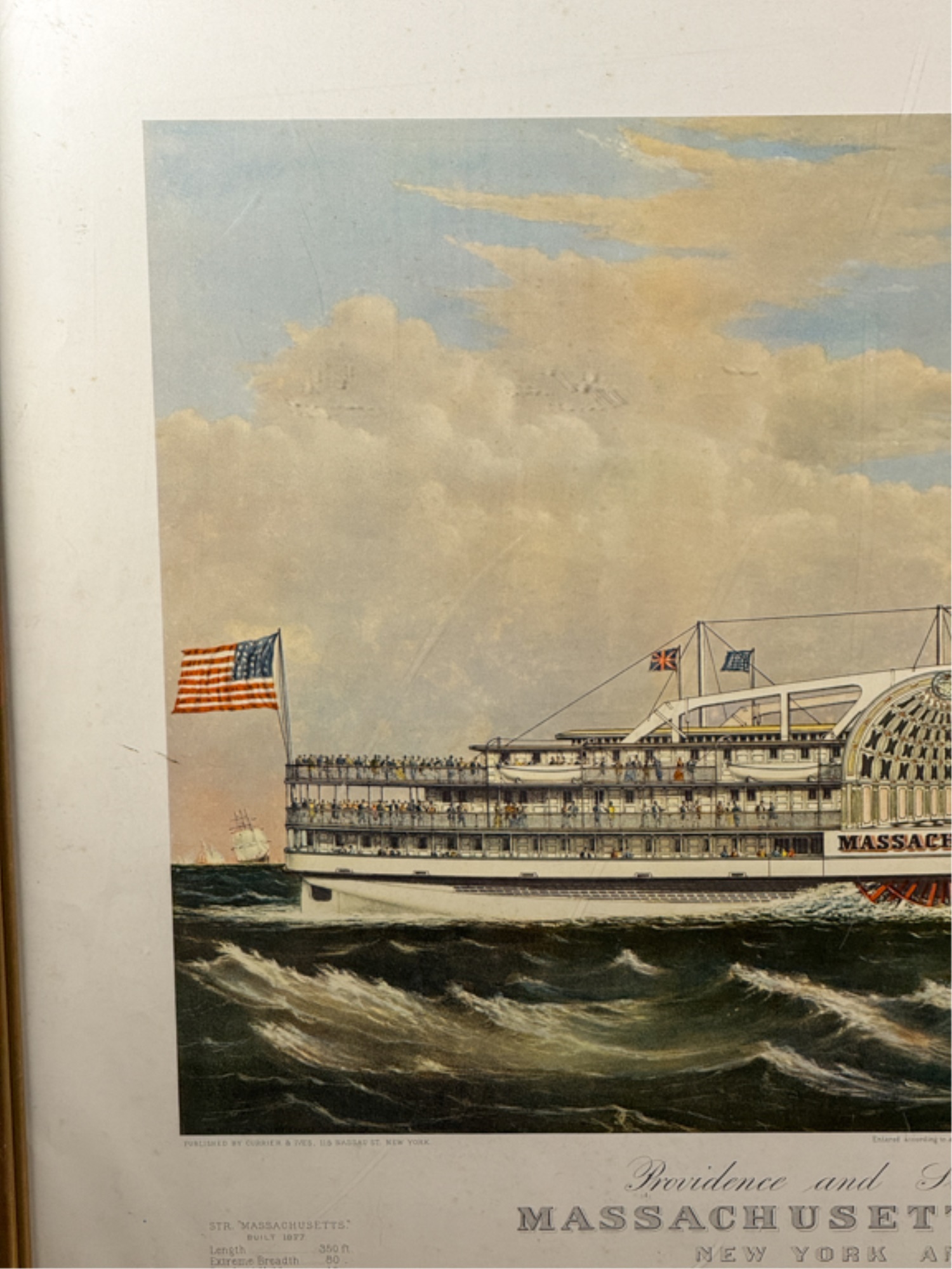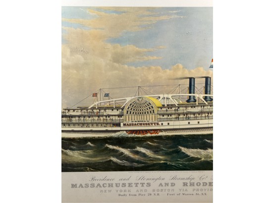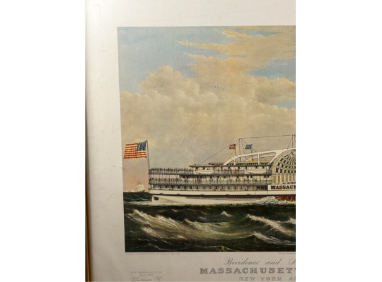 Large, later restrike Depicting the steamer "Massachusetts". Framed. 29 x 42 inches. Condition: Restrike.