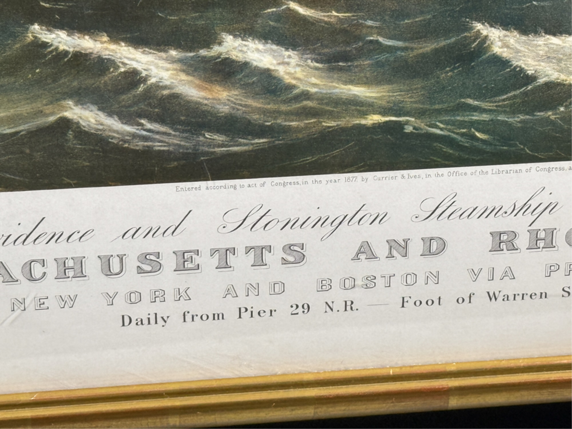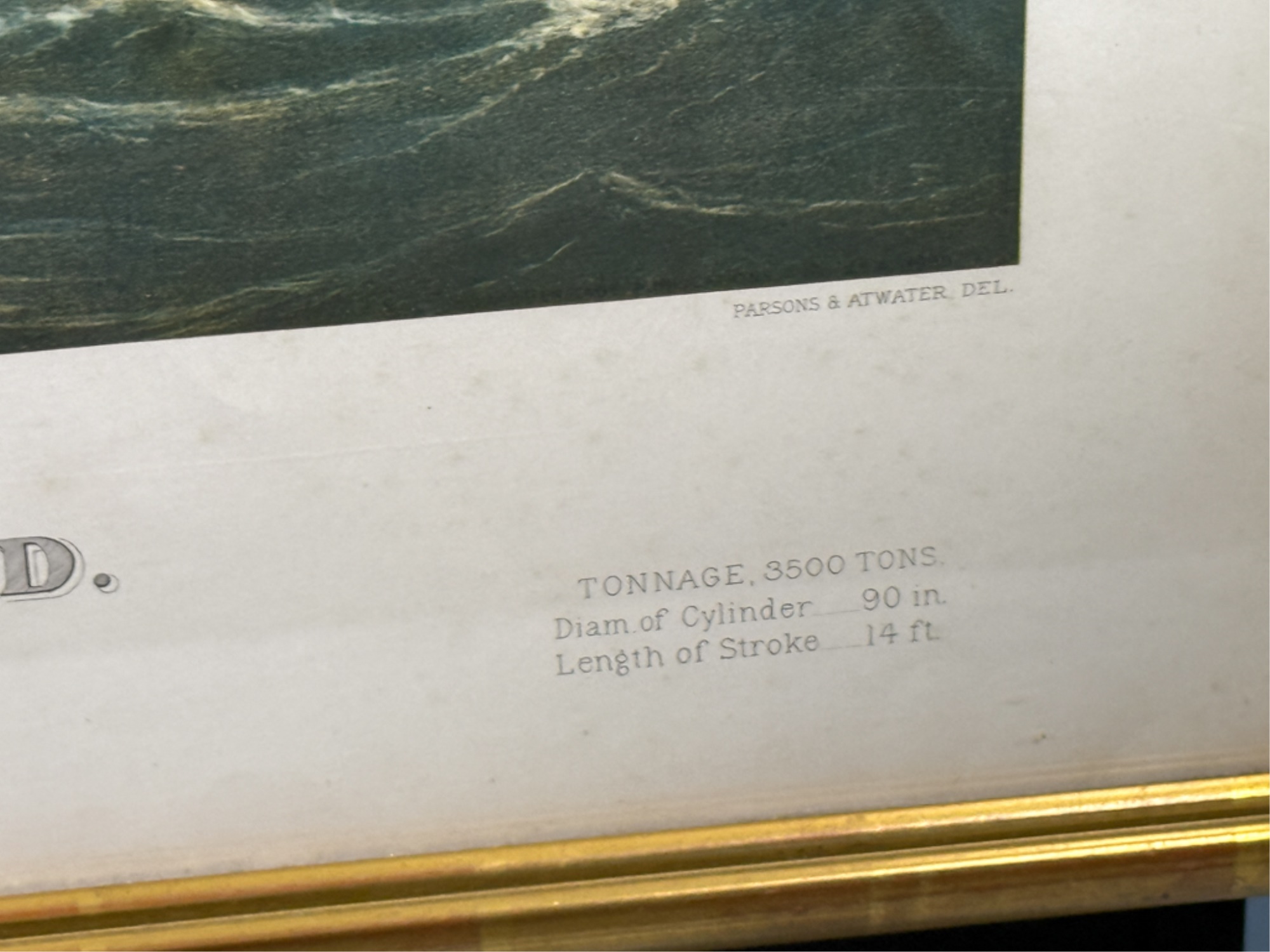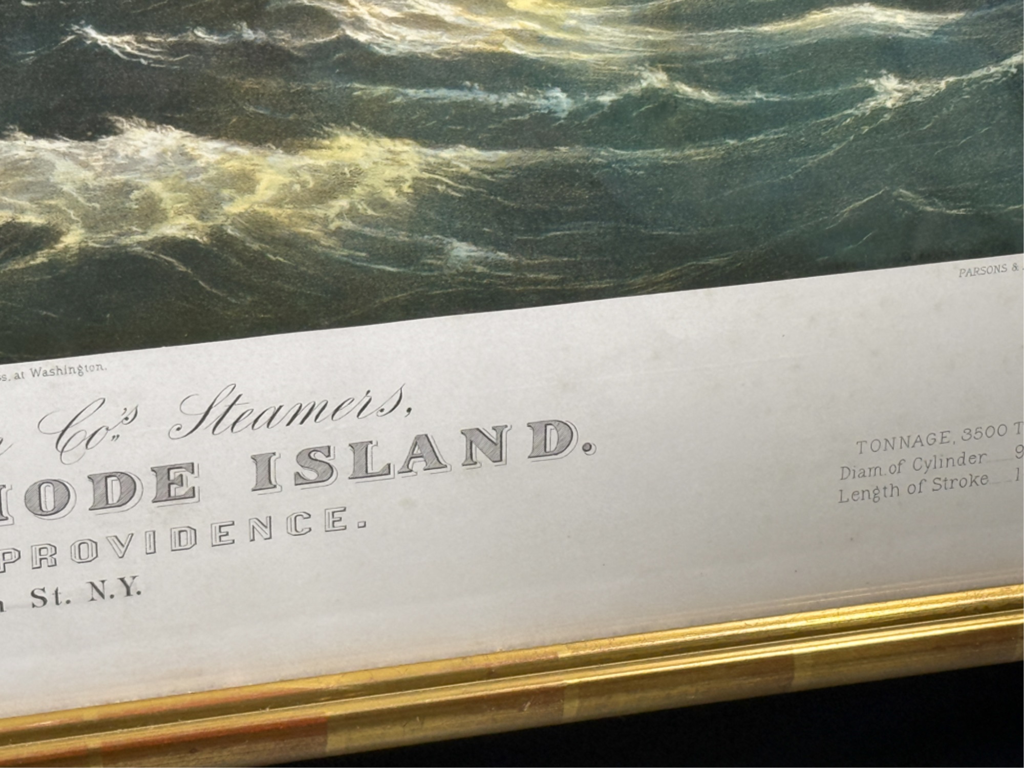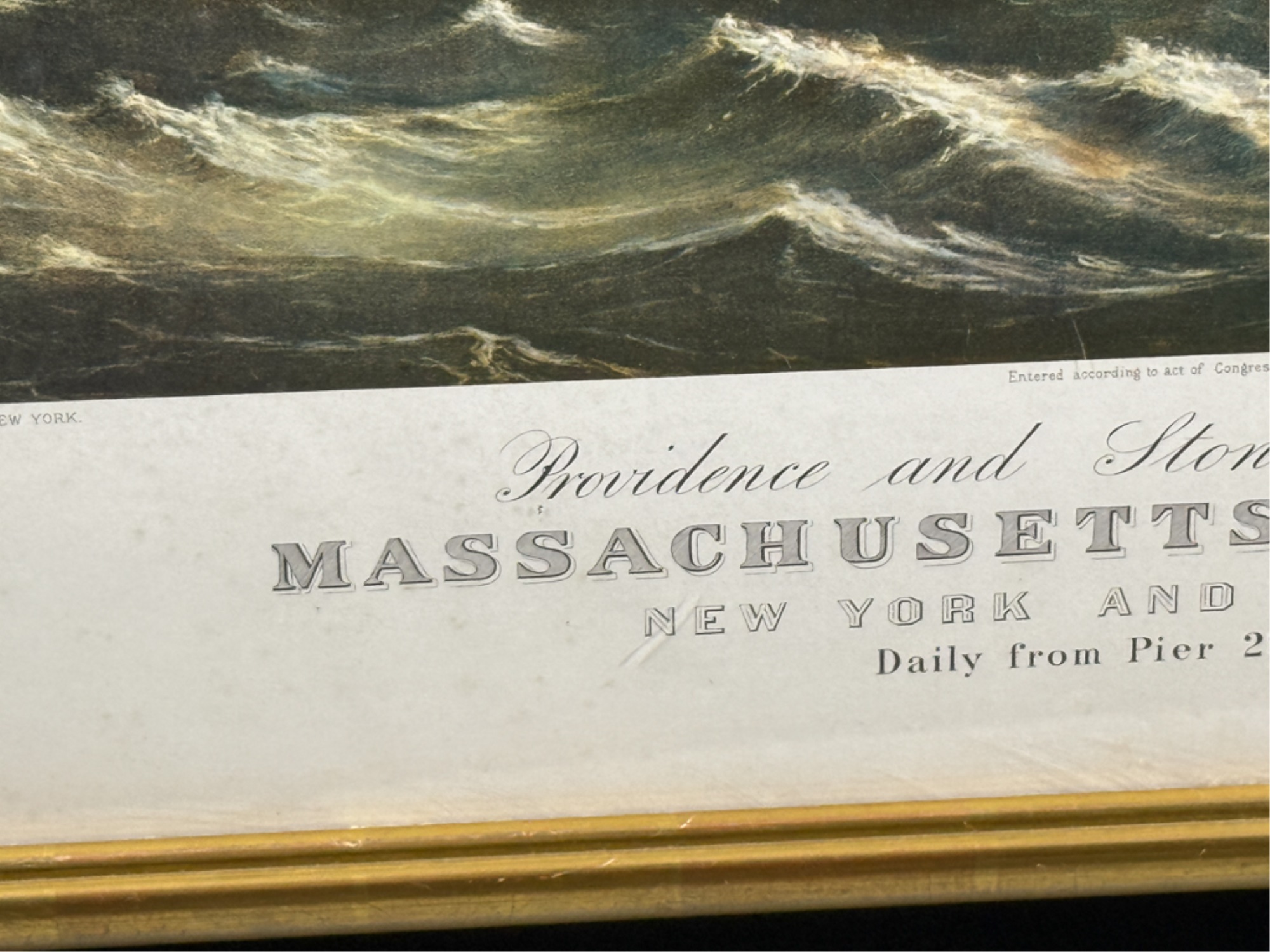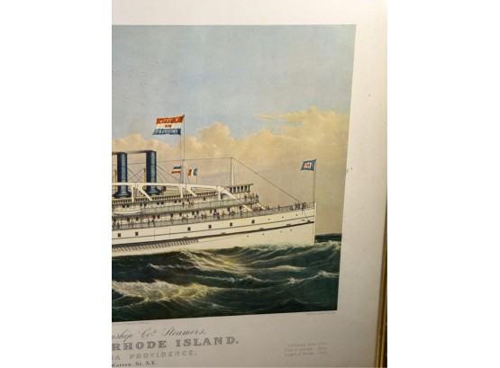 Large, later restrike Depicting the steamer "Massachusetts". Framed. 29 x 42 inches. Condition: Restrike.