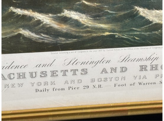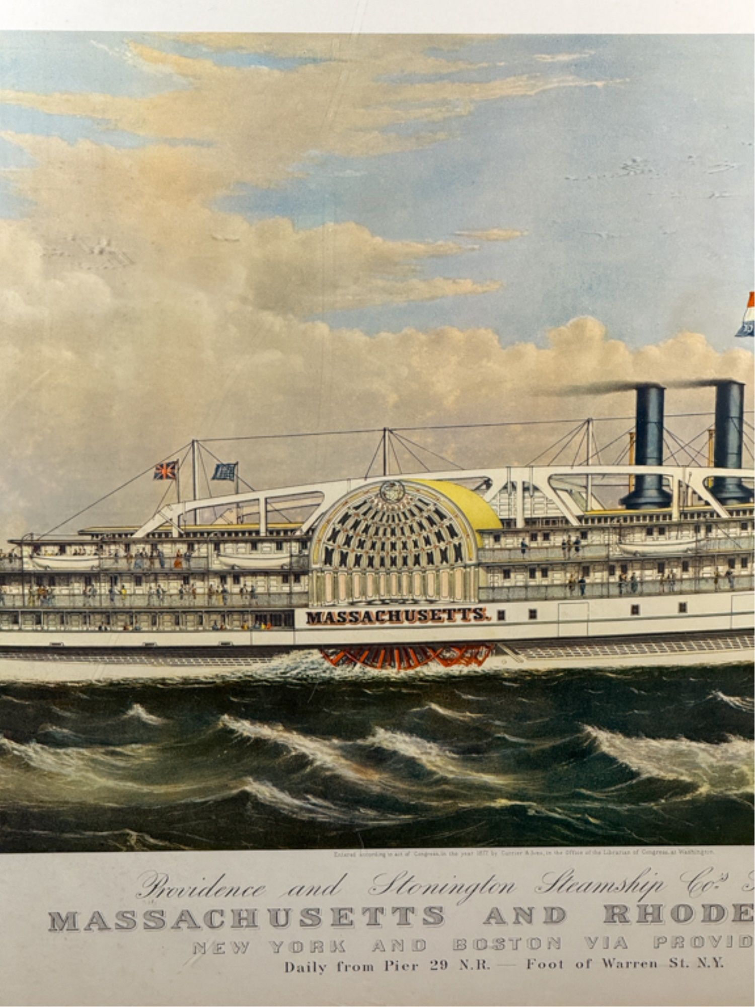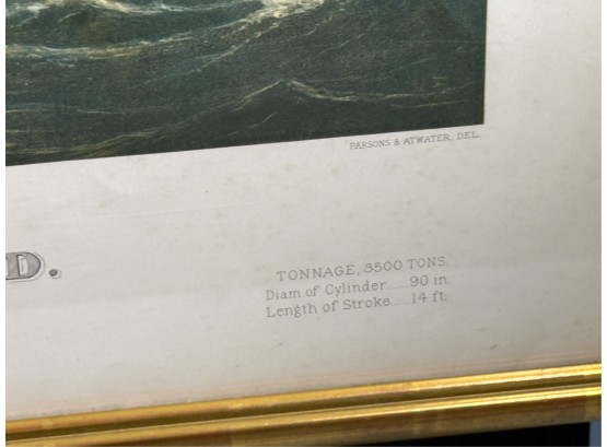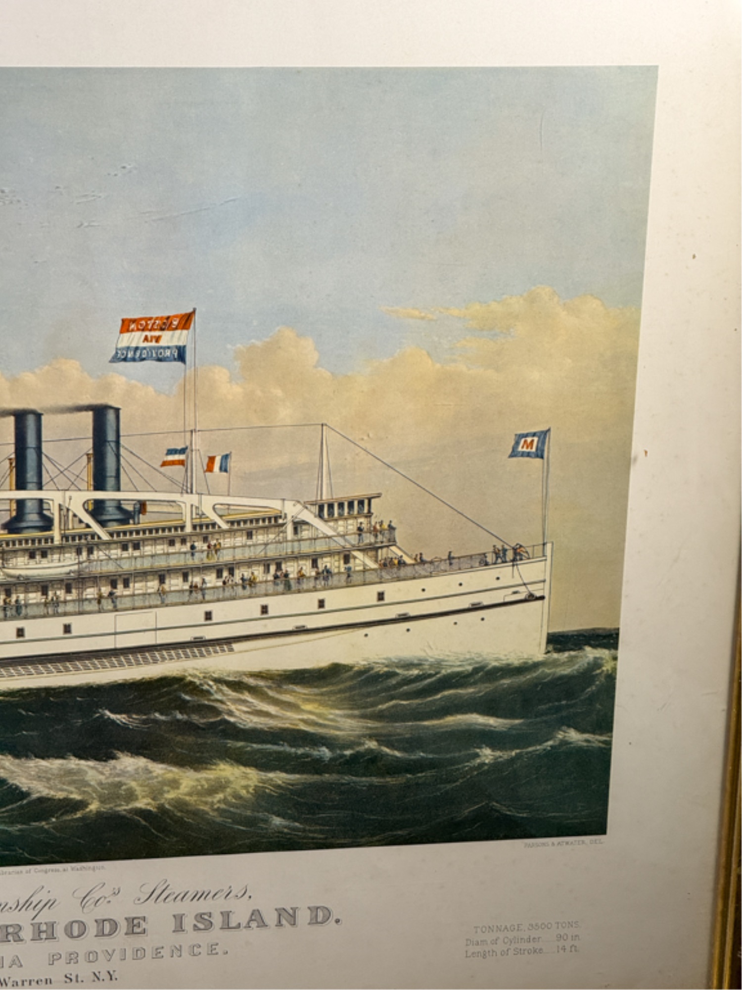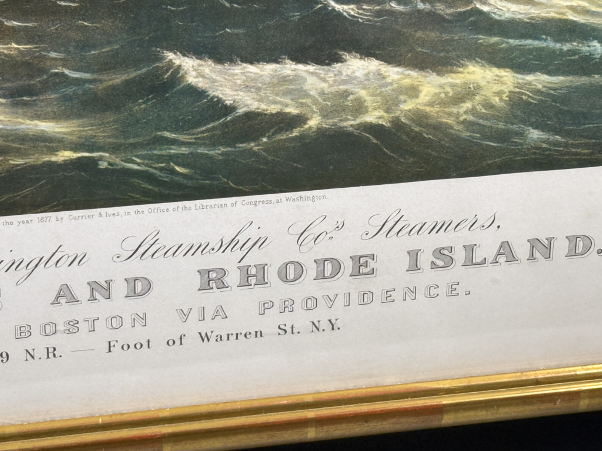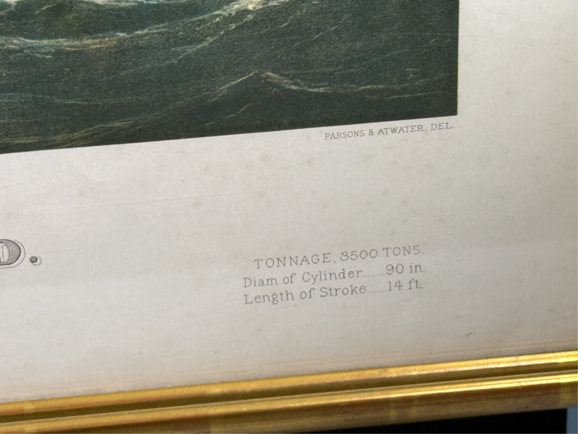 Large, later restrike Depicting the steamer "Massachusetts". Framed. 29 x 42 inches. Condition: Restrike.