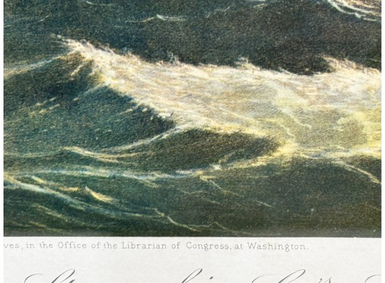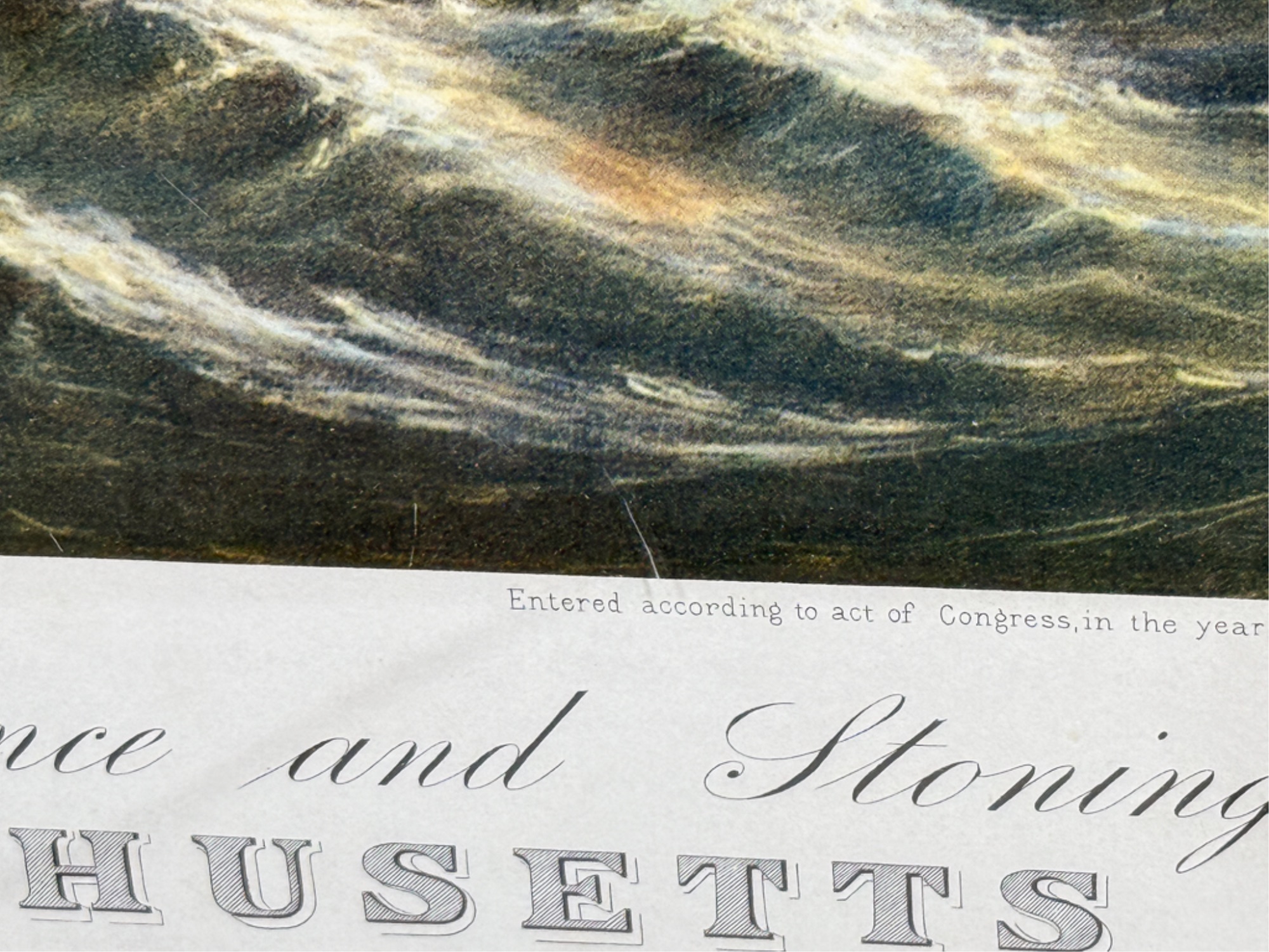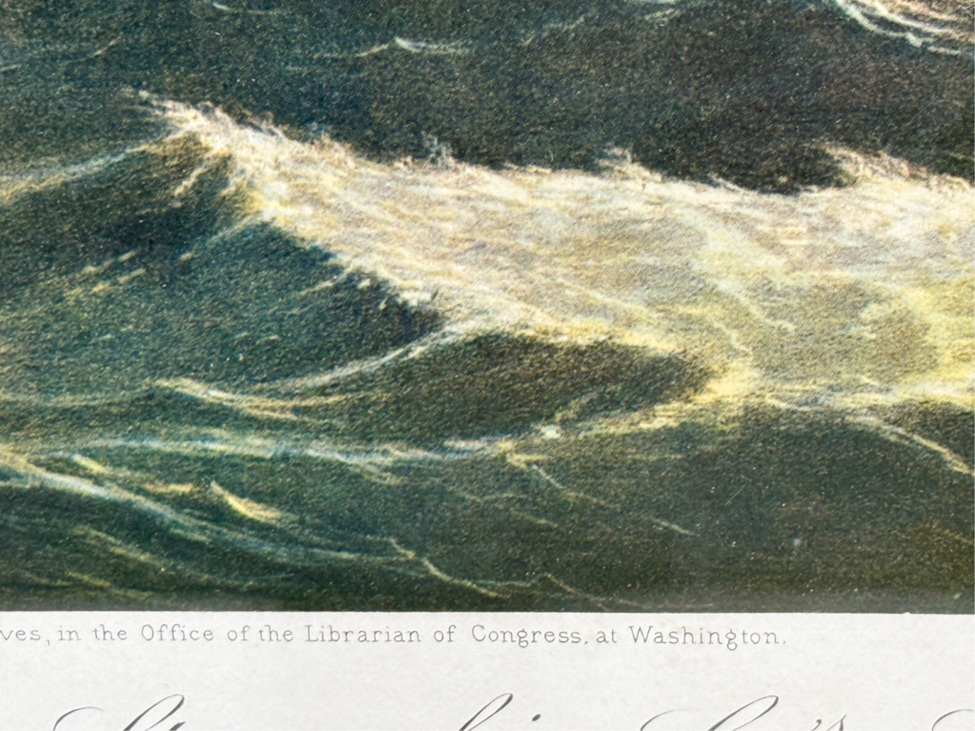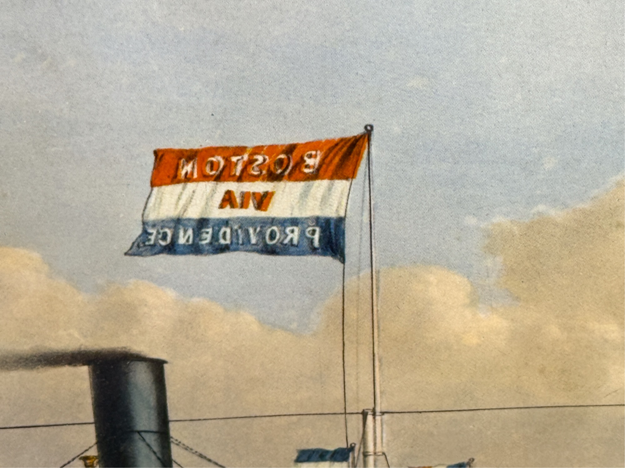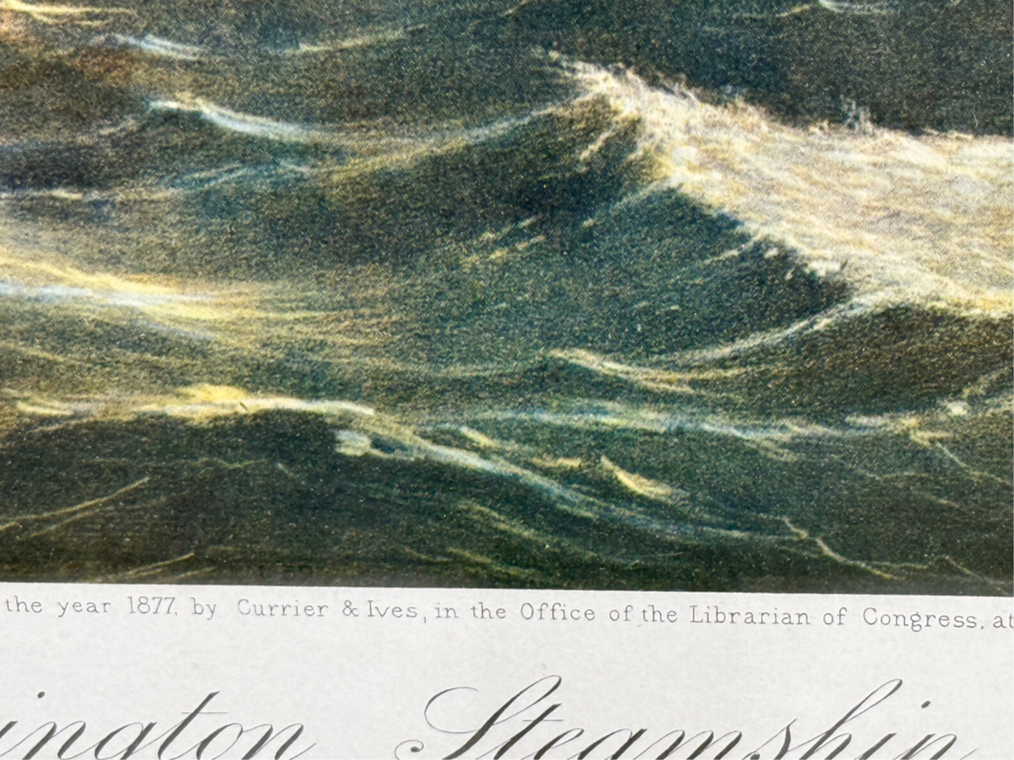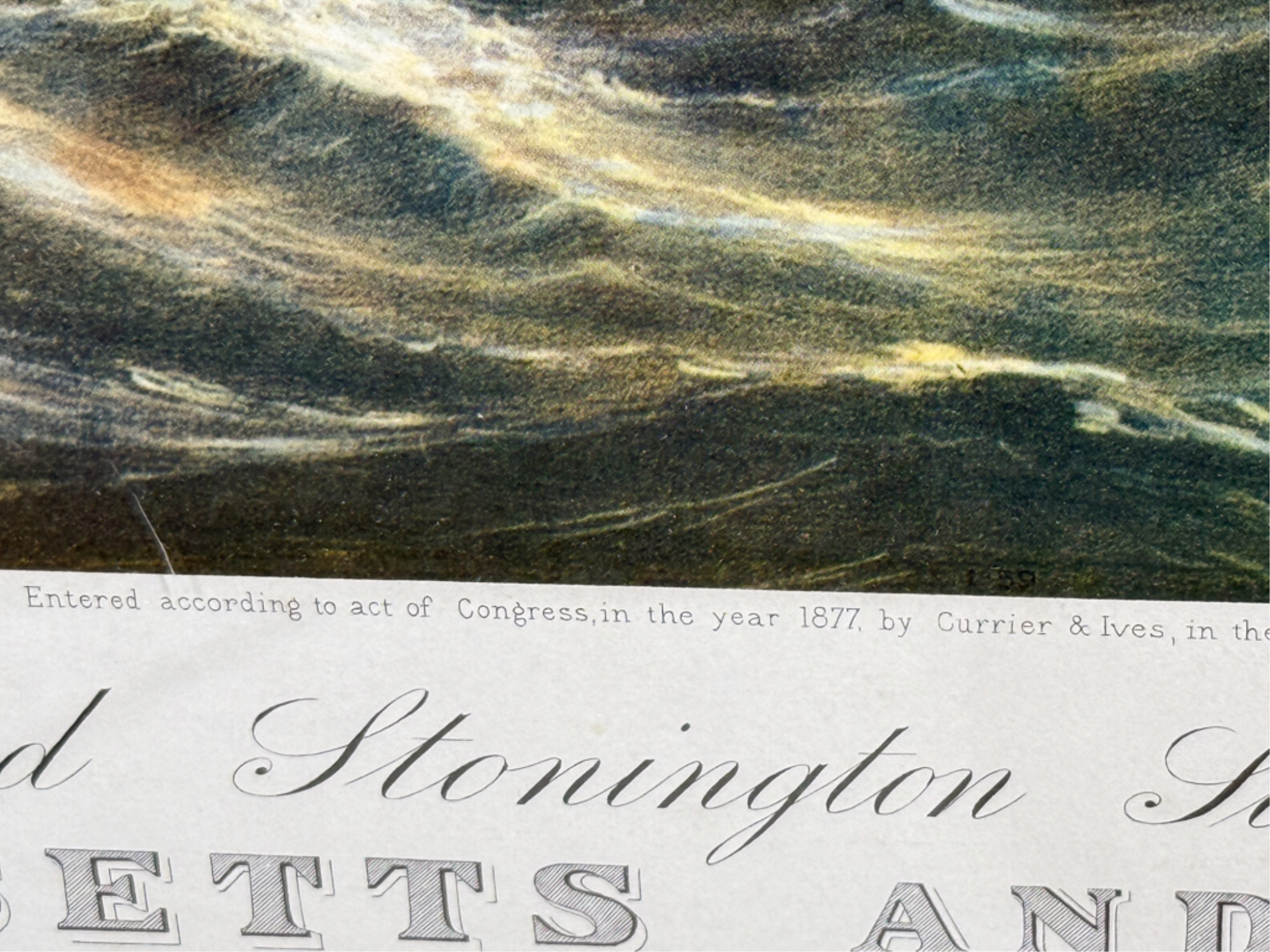 Large, later restrike Depicting the steamer "Massachusetts". Framed. 29 x 42 inches. Condition: Restrike.